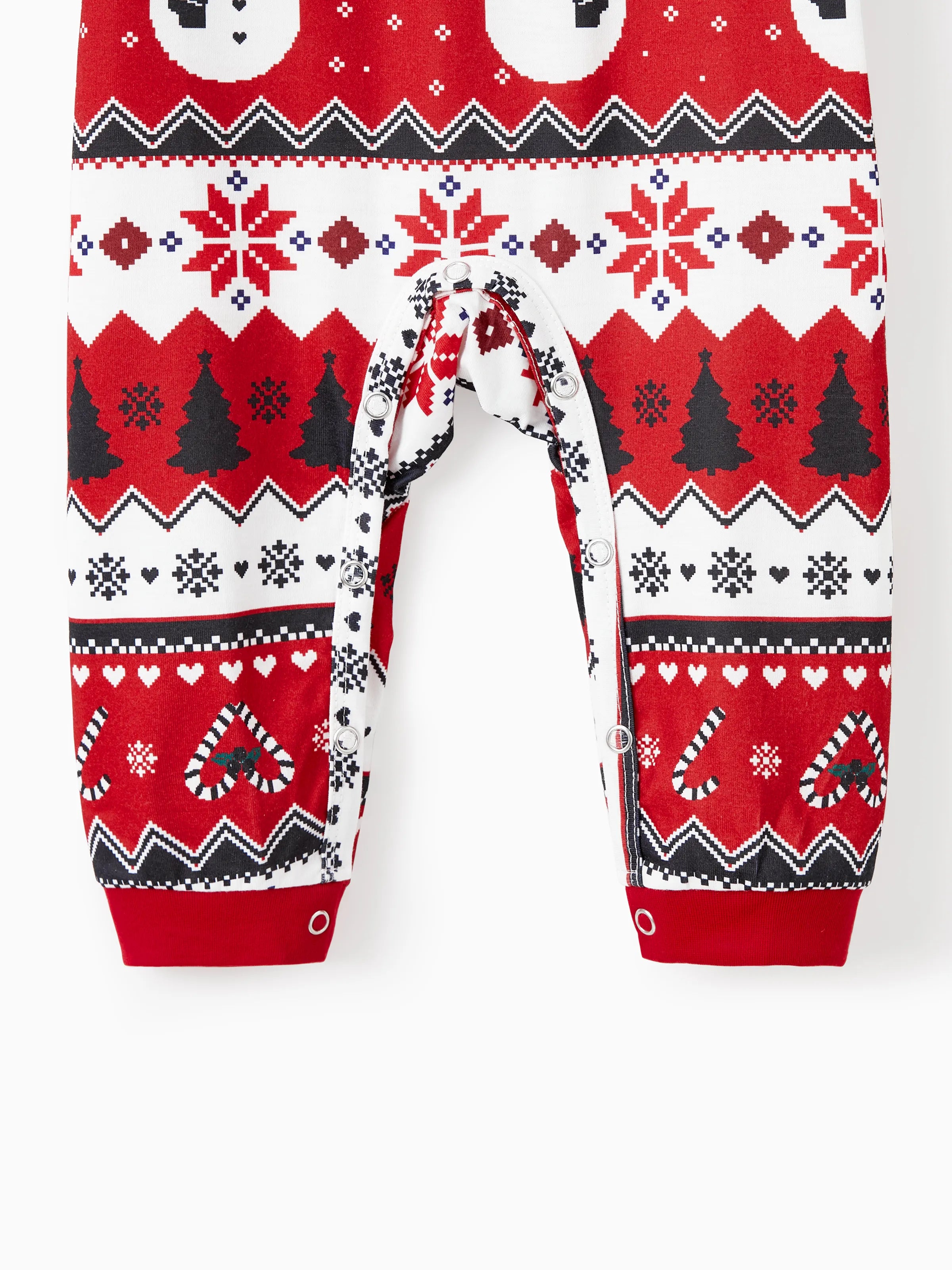 Ensemble pyjama de Noël pour toute la famille, imprimé bonhomme de neige, manches longues et chaussettes de Noël noires