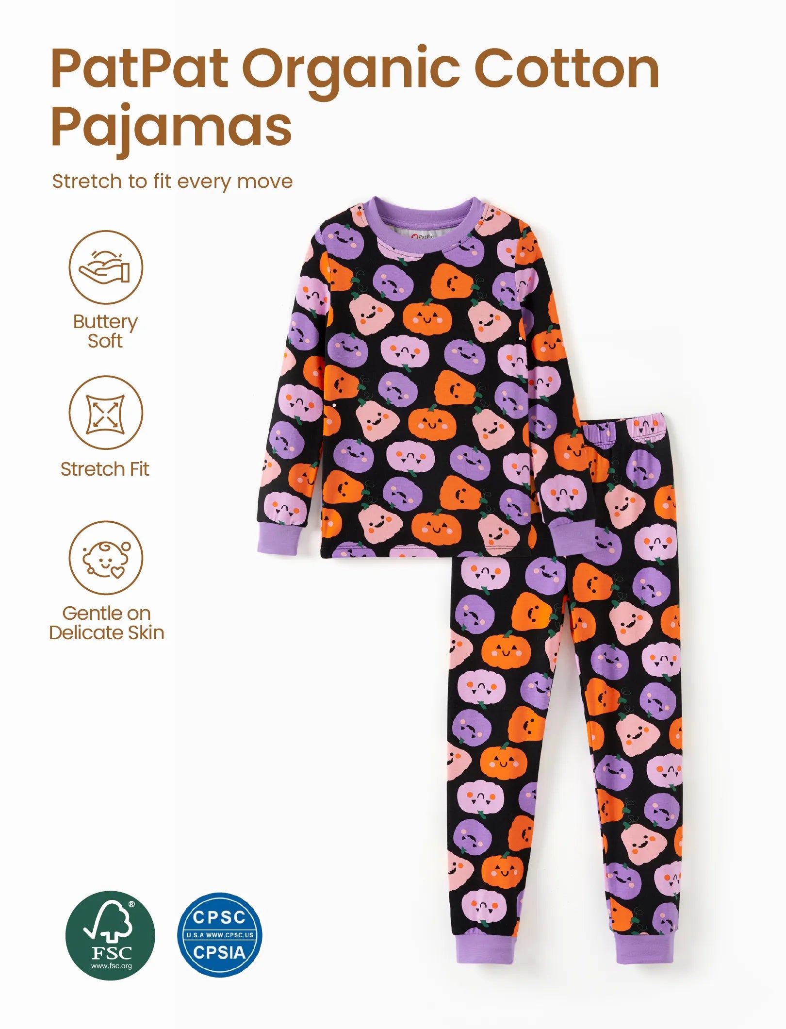 Pyjama de Noël/Halloween 2 pièces en bambou avec imprimé enfantin pour petite fille (ajusté) Rose violet