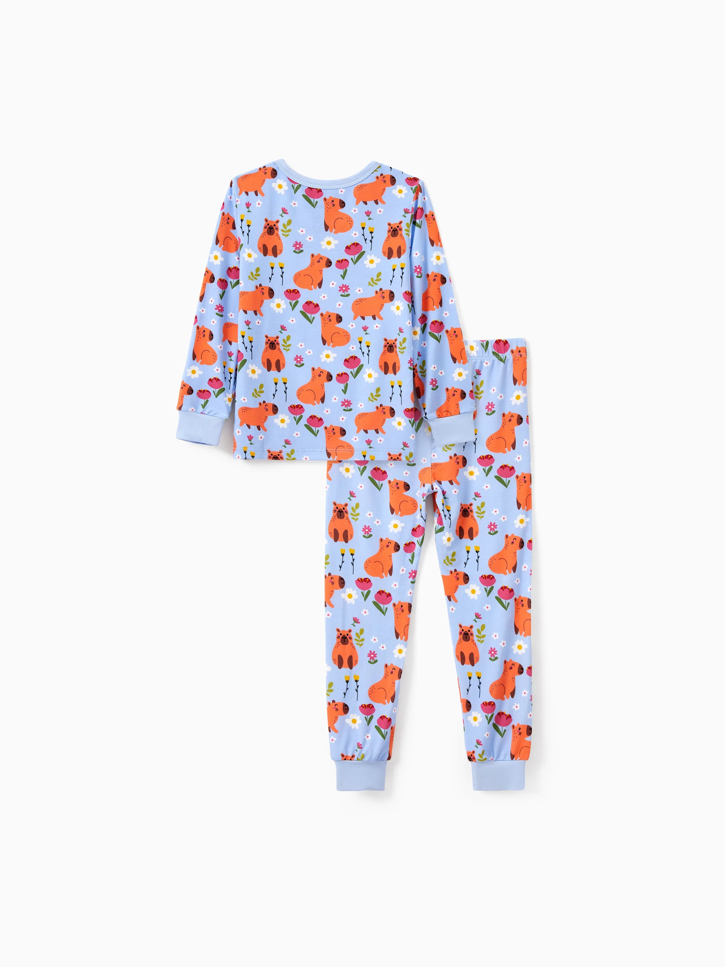Pyjama de Noël/Halloween 2 pièces en bambou avec imprimé enfantin pour bébé/enfant (coupe ajustée) bleu