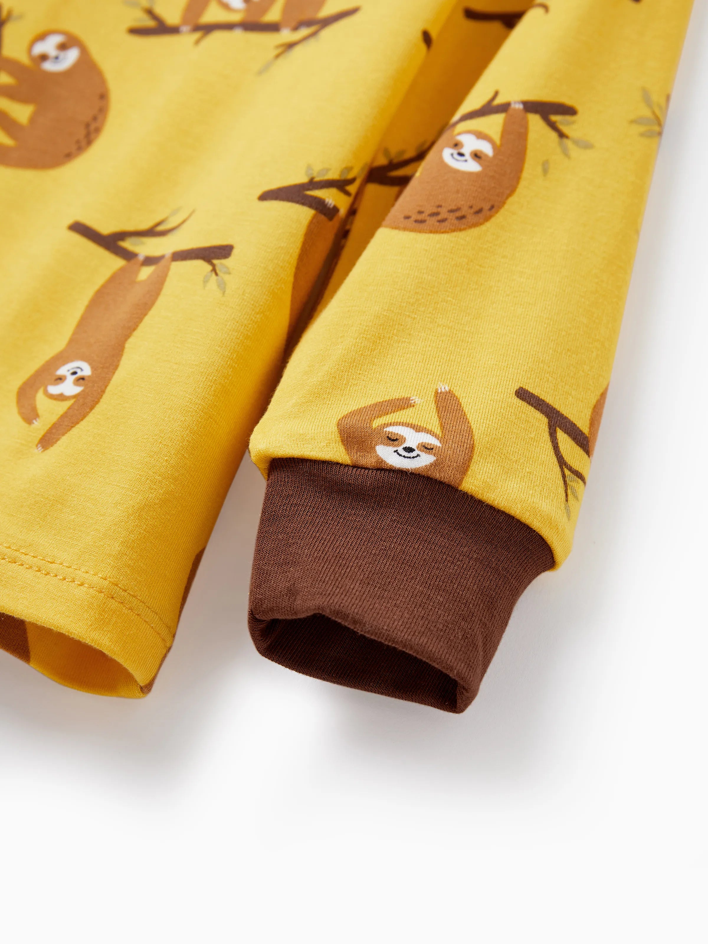 Pyjama de Noël/Halloween 2 pièces en bambou avec imprimé enfantin pour bébé/enfant (coupe ajustée) jaune