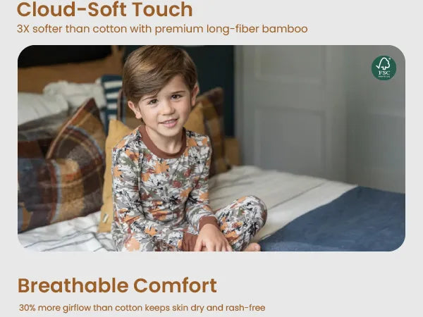 Ces pyjamas sont fabriqués en tissu de bambou naturel, reconnu pour sa douceur semblable à un nuage et sa douceur sur les peaux délicates.