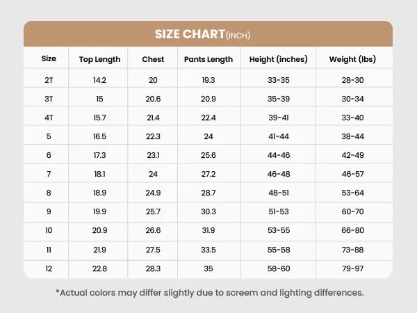 Tailles de 2T à 12, adaptées aux tout-petits et enfants plus grands, avec une coupe ajustée pour la sécurité et le confort.