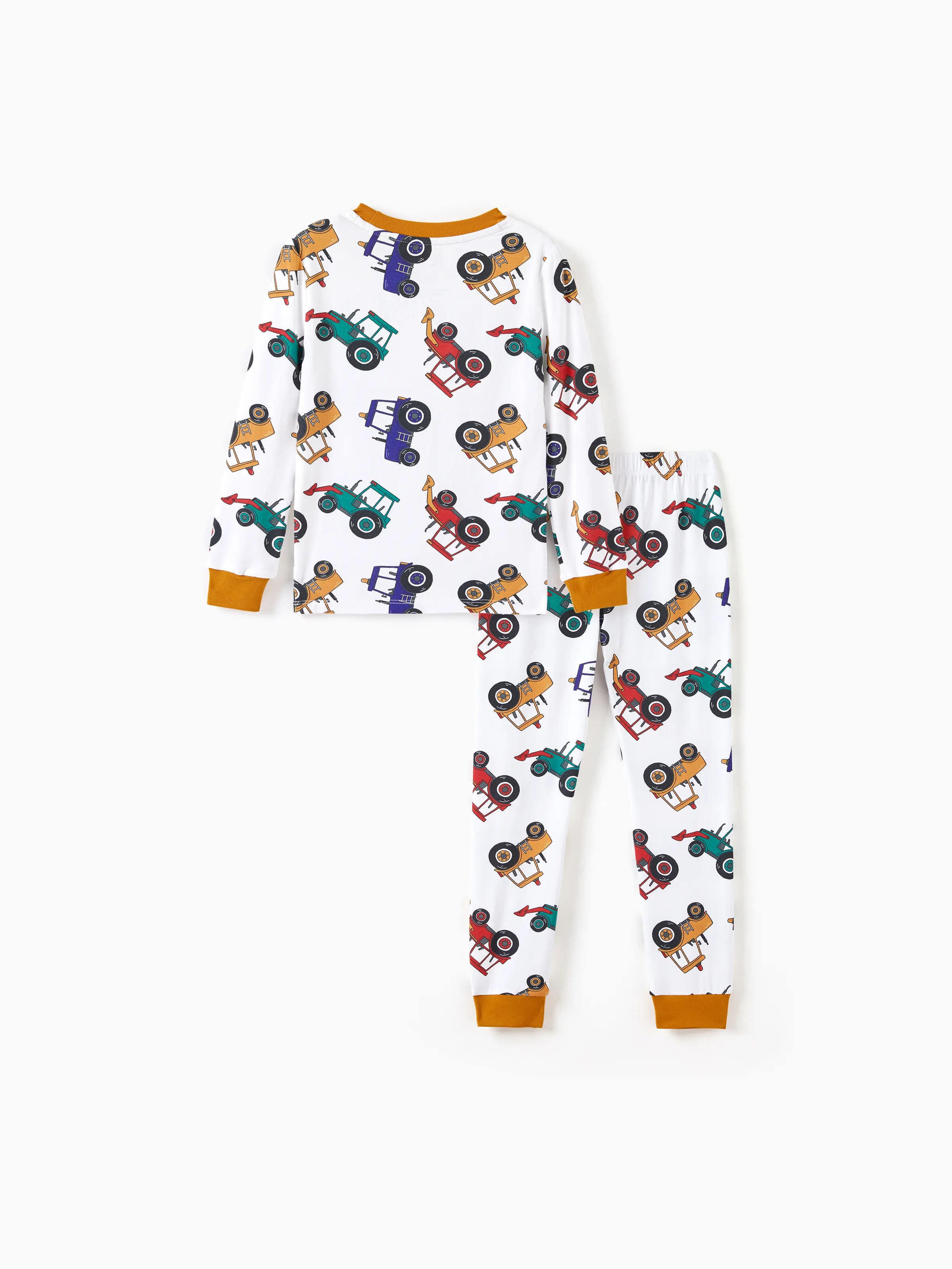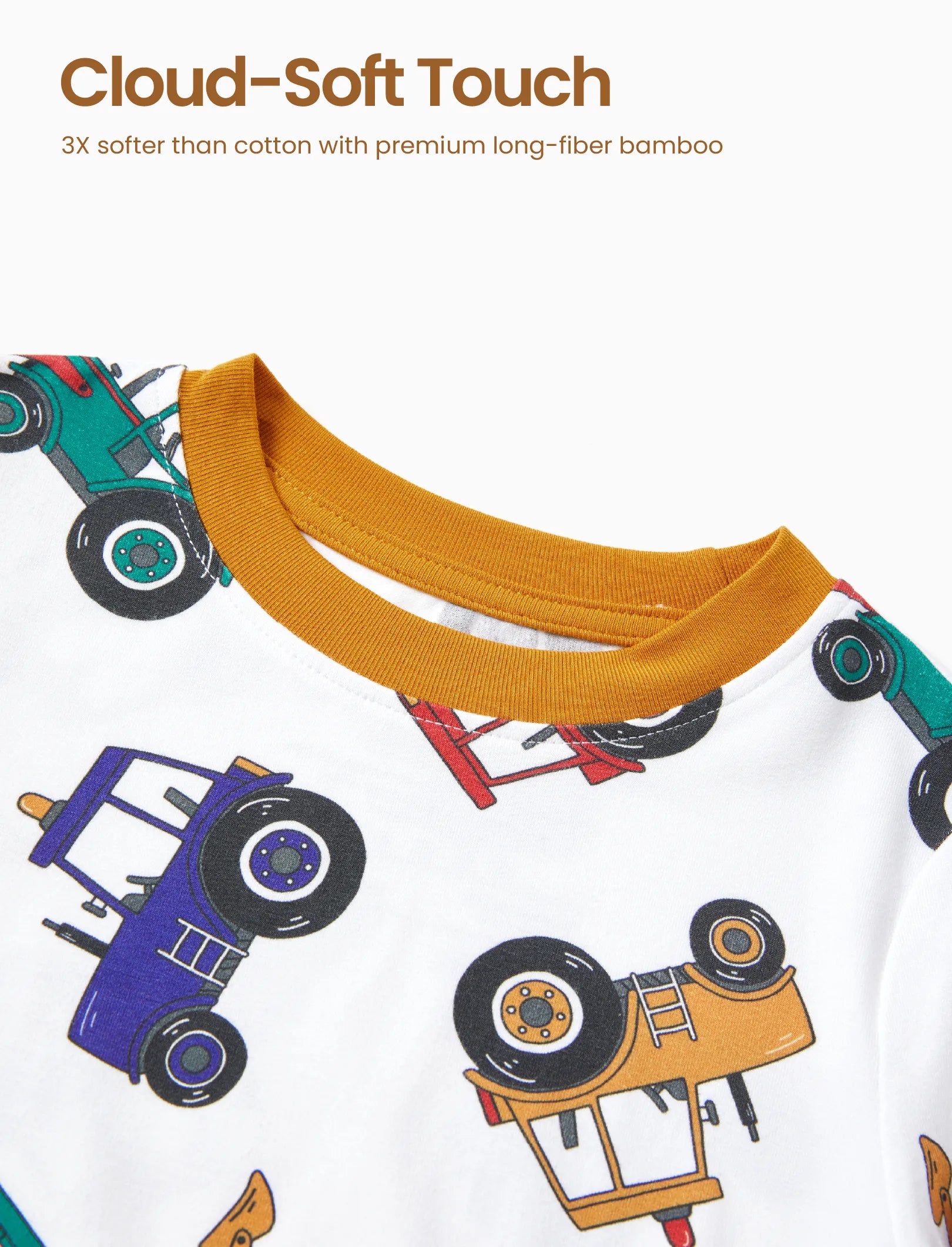 Pyjama de Noël/Halloween 2 pièces en bambou avec imprimé ludique pour tout-petits/enfants (coupe ajustée) jaune