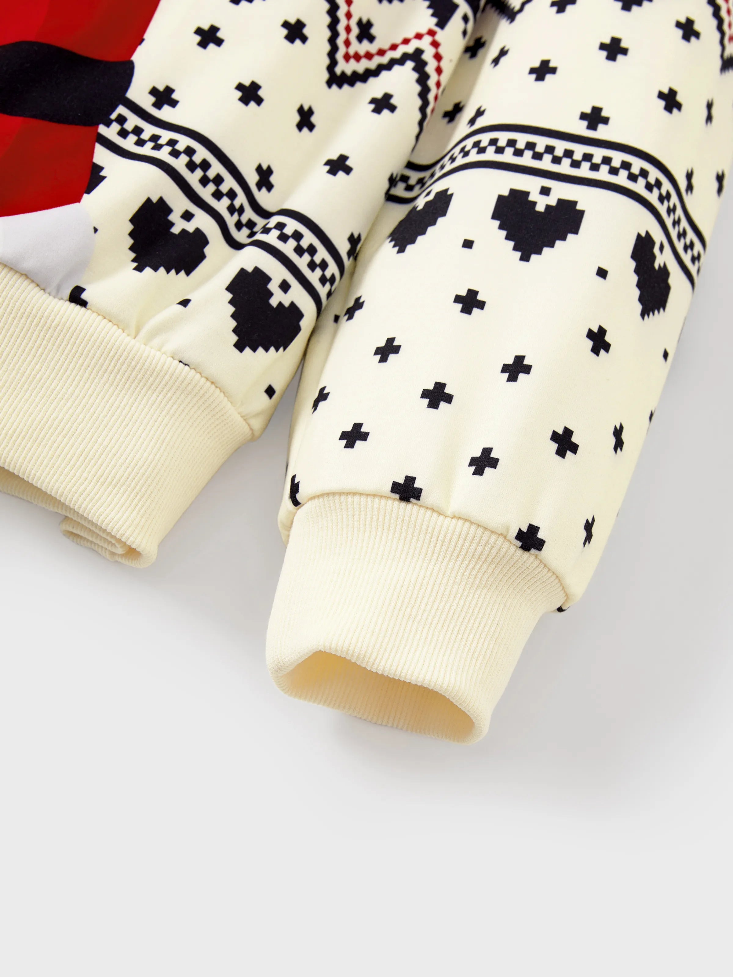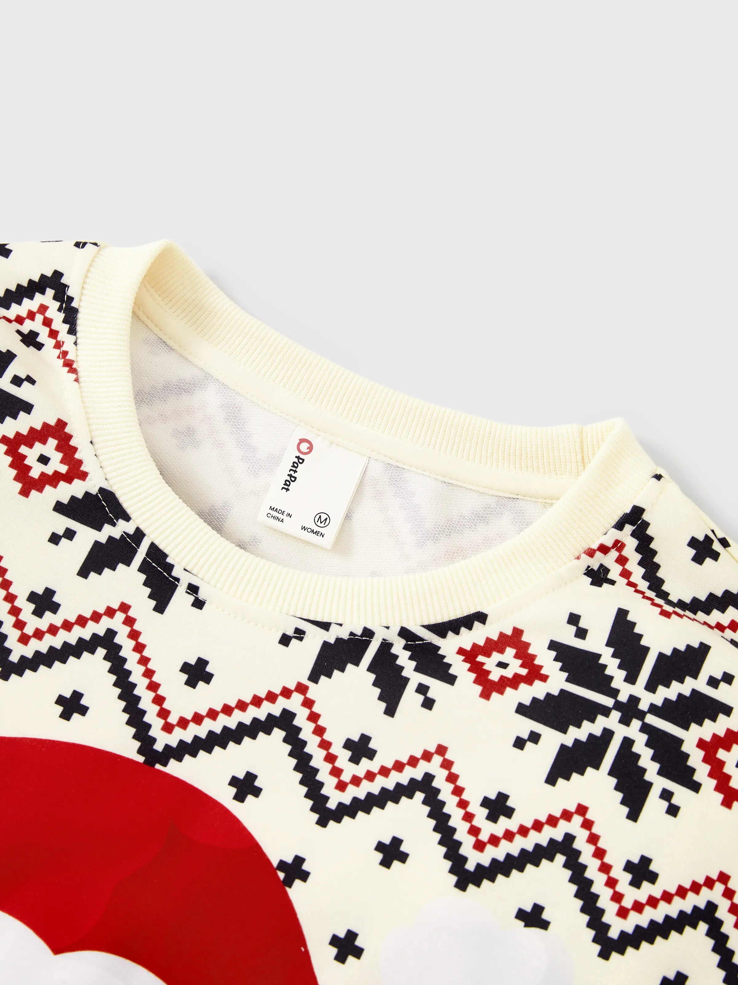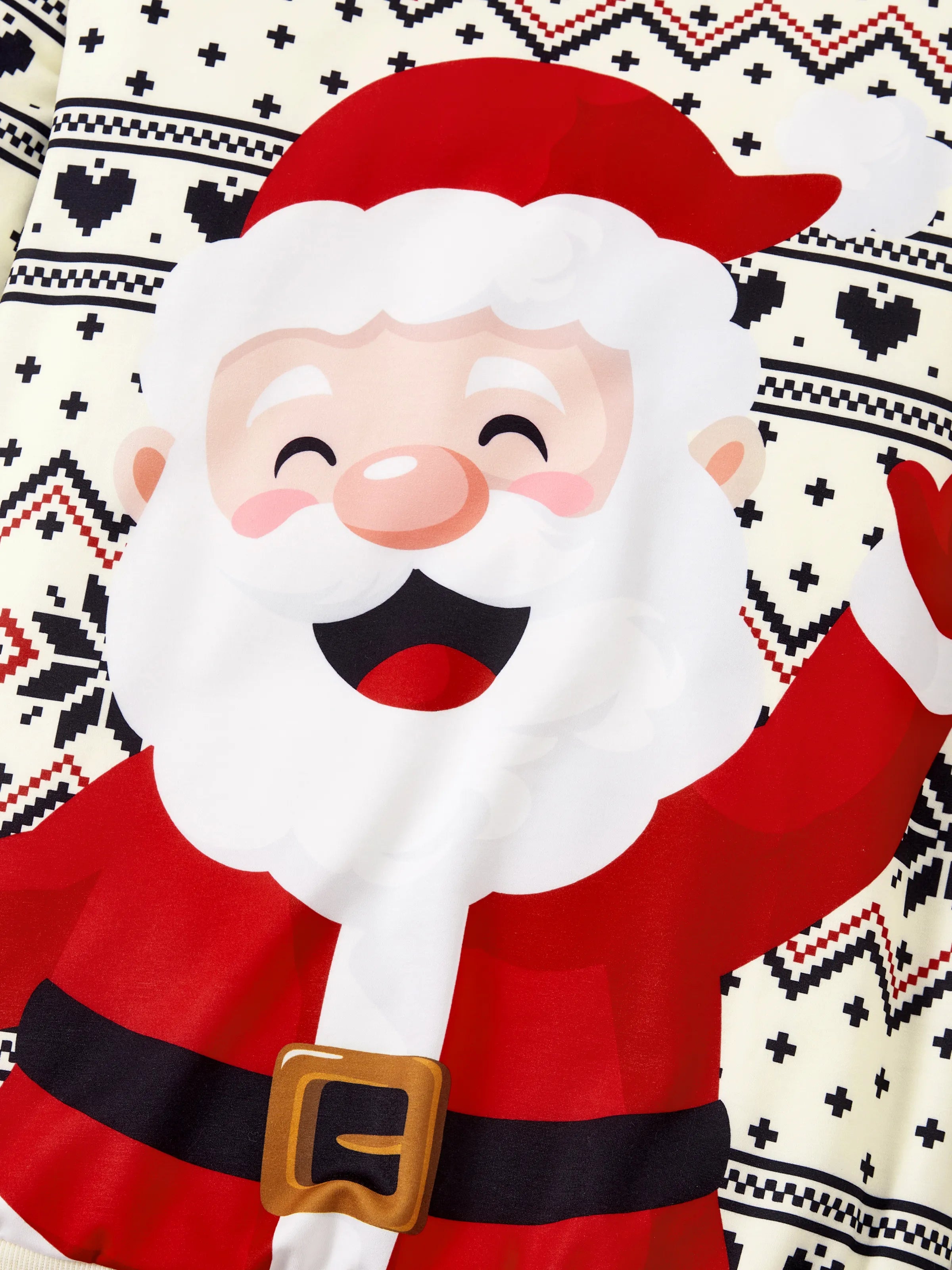 Sweat-shirt à manches longues imprimé Père Noël pour toute la famille, style décontracté, abricot