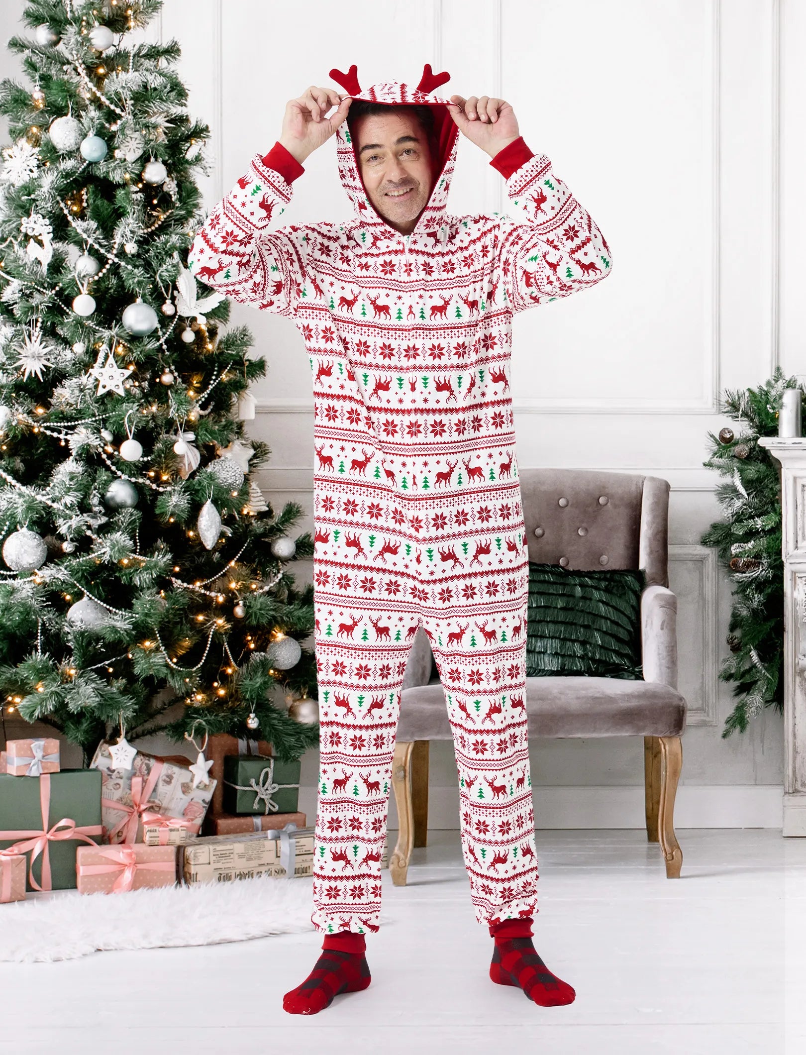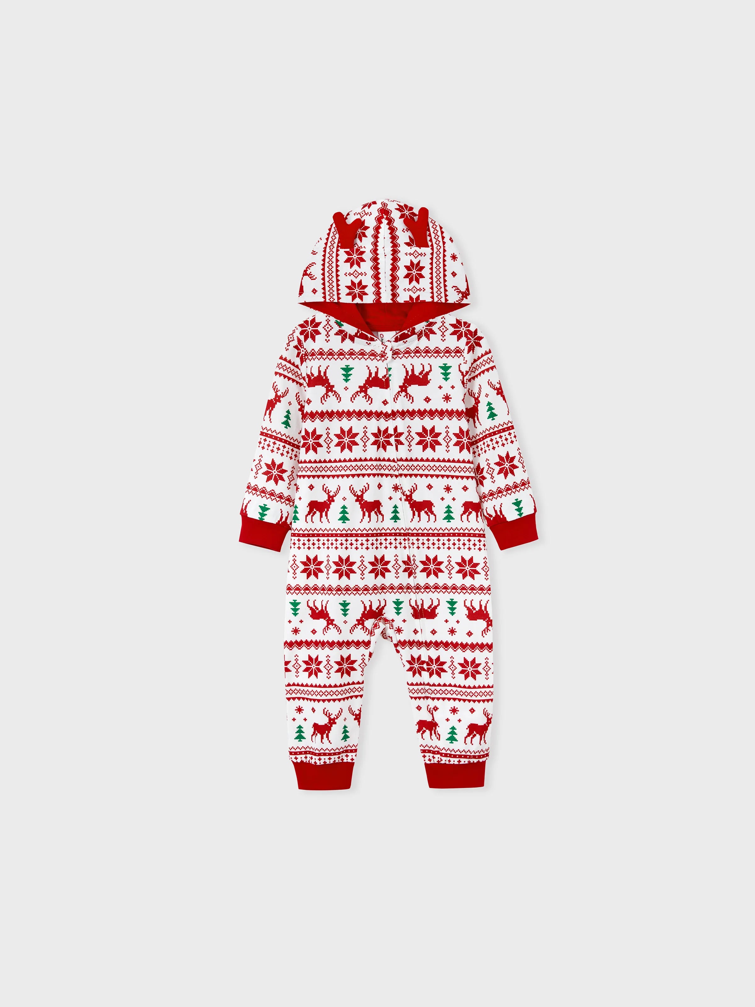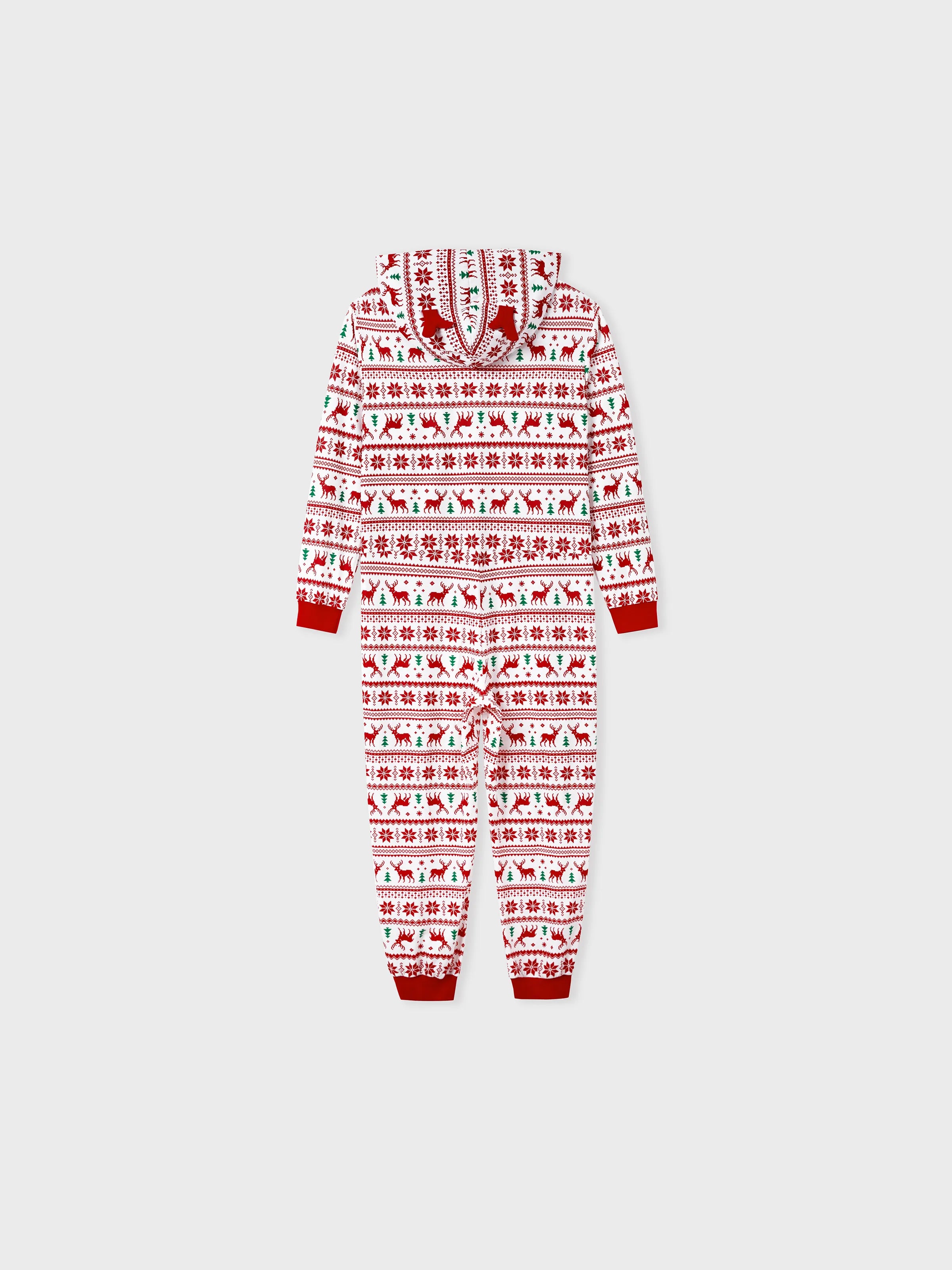 Cozy flame-resistant kids' pajamas with festive hooded reindeer design.