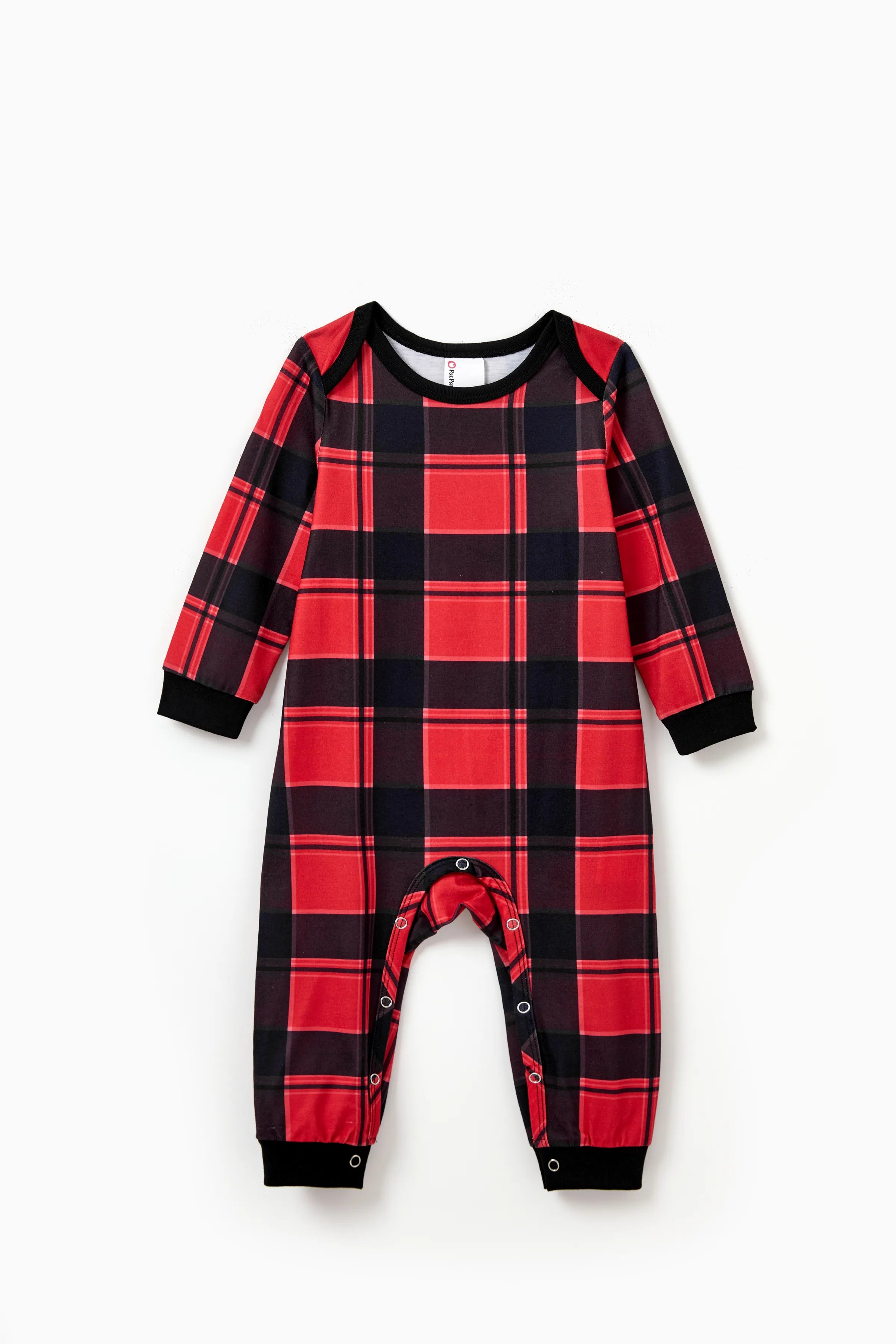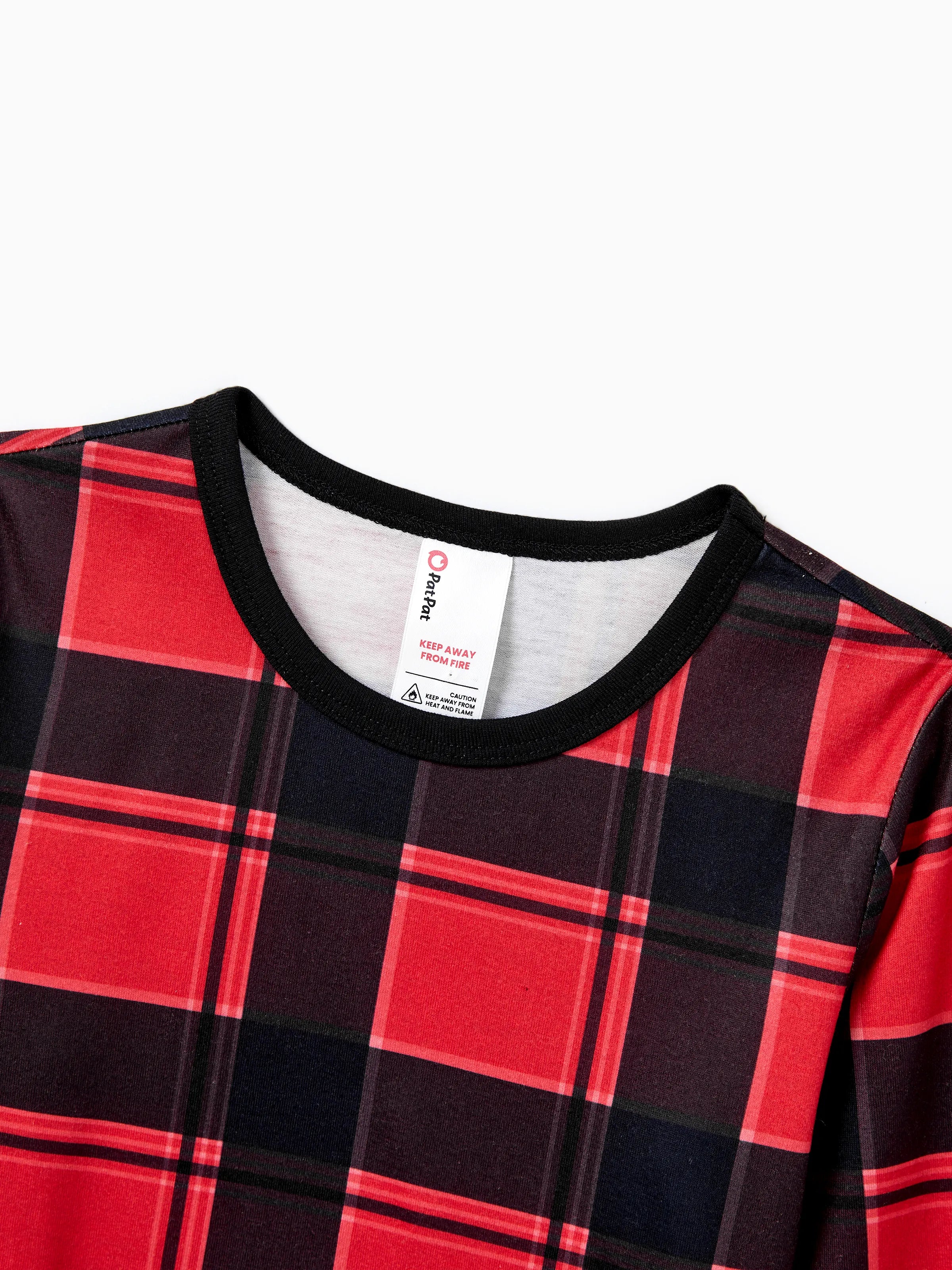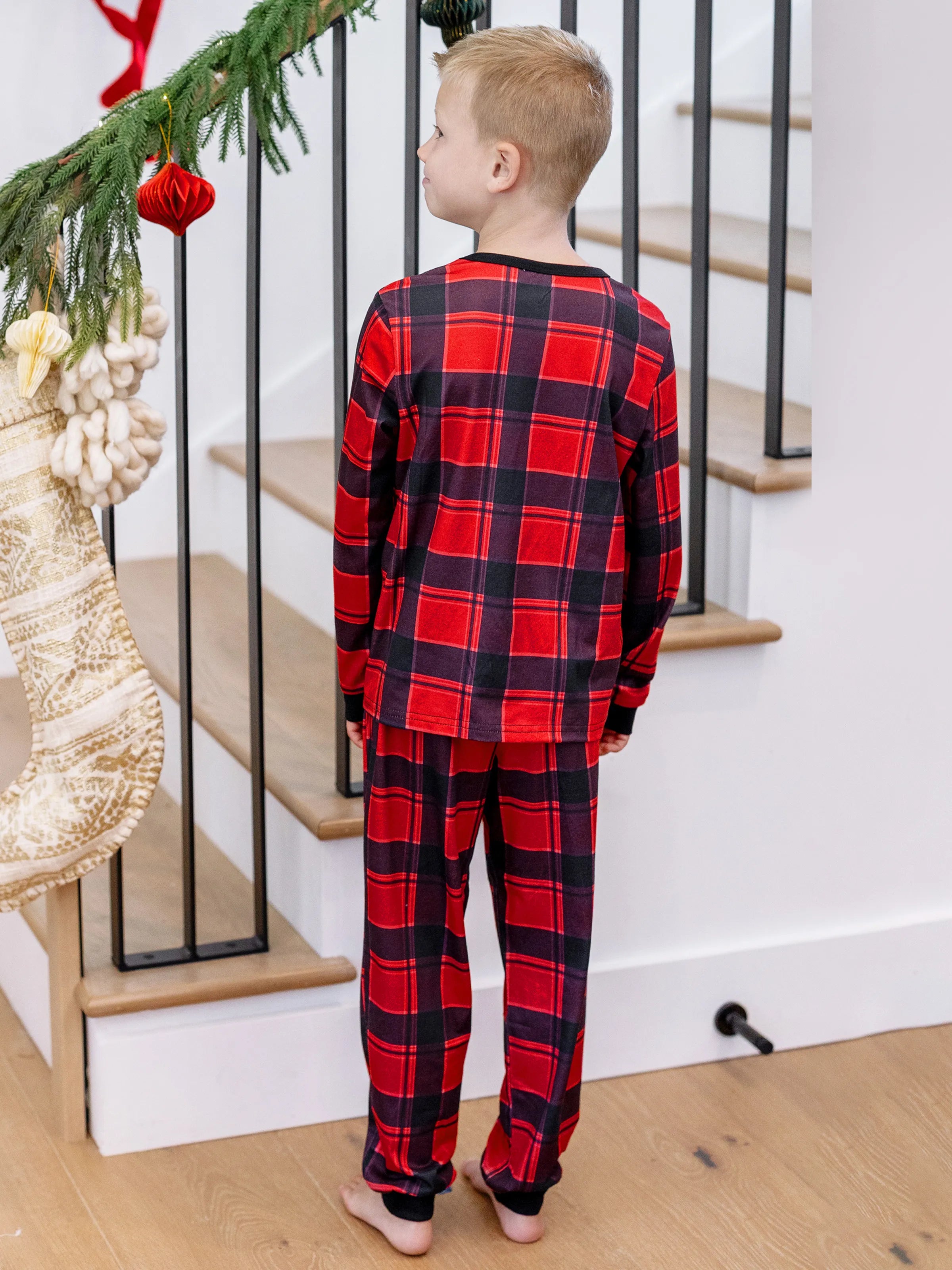 Christmas Matching Family Pajamas Set Allover Red and Black Grid Print Long-sleeve PJS with Christmas Socks Red