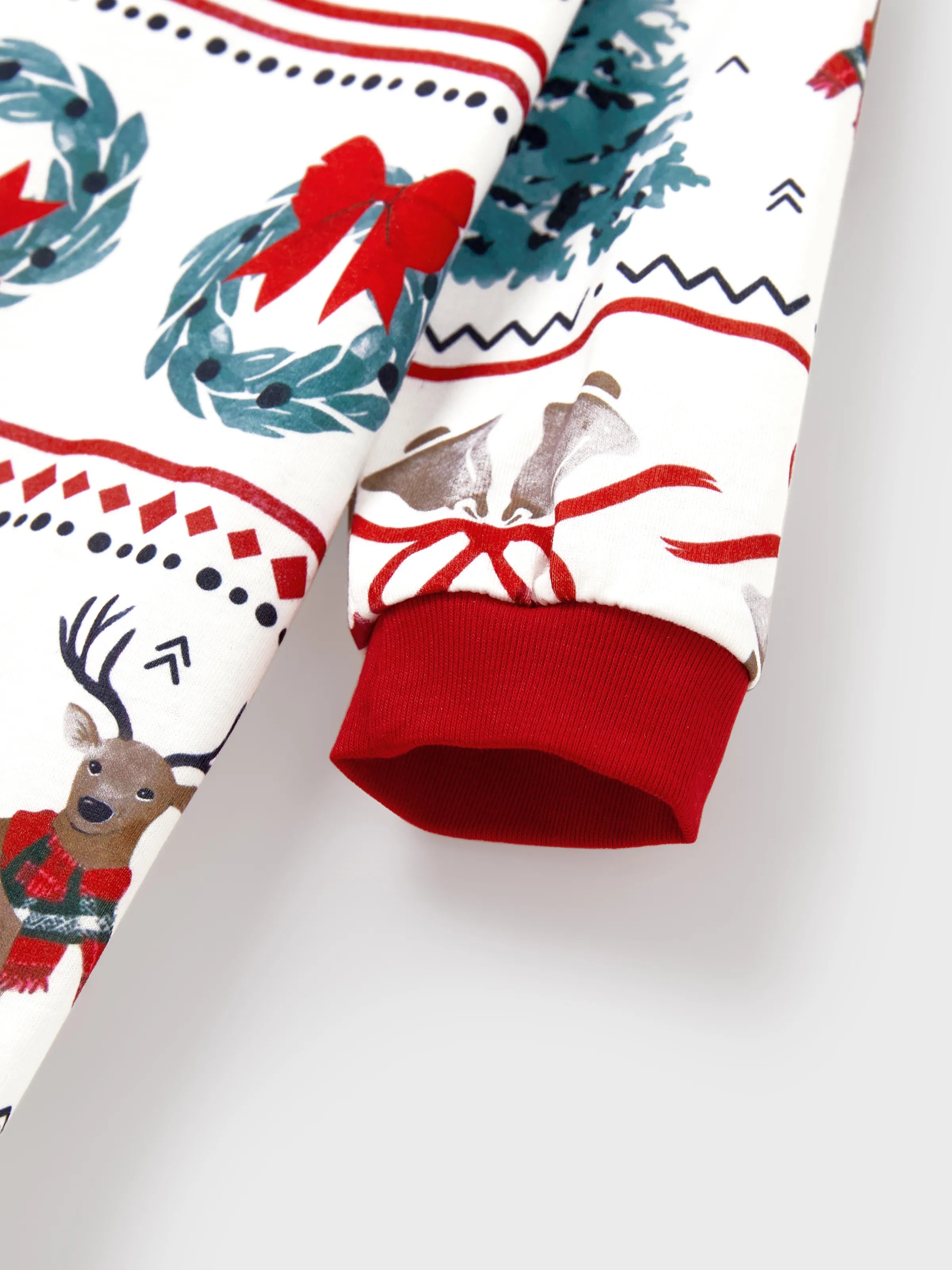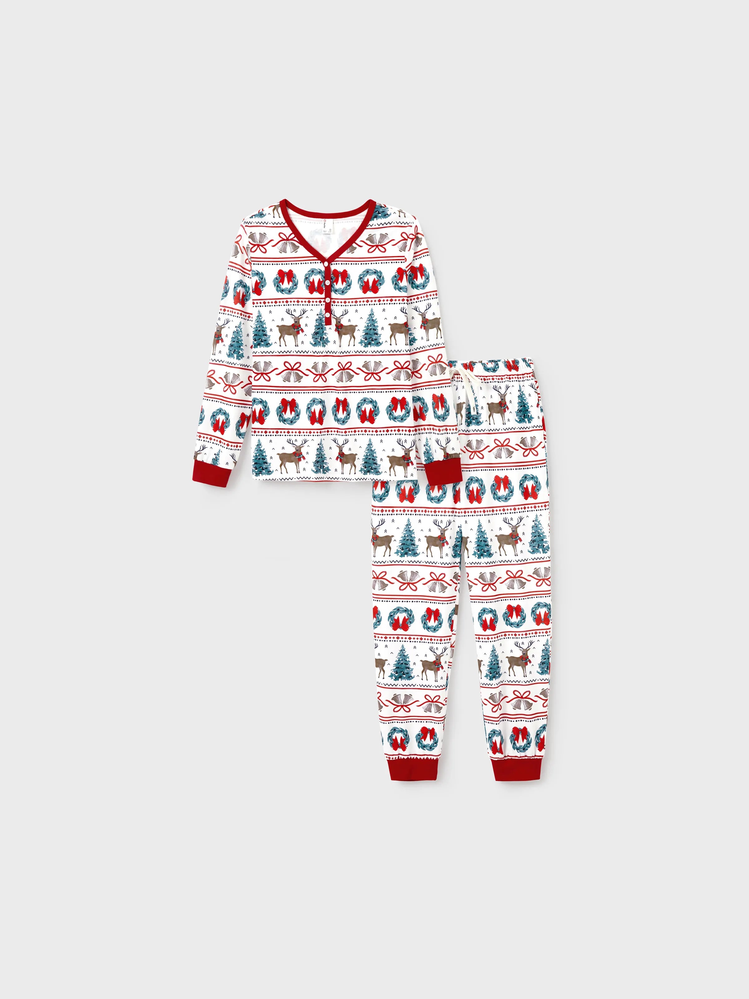 Ensemble pyjama de Noël assorti pour toute la famille, imprimé élan et clochette, rayé, avec chaussettes de Noël blanches