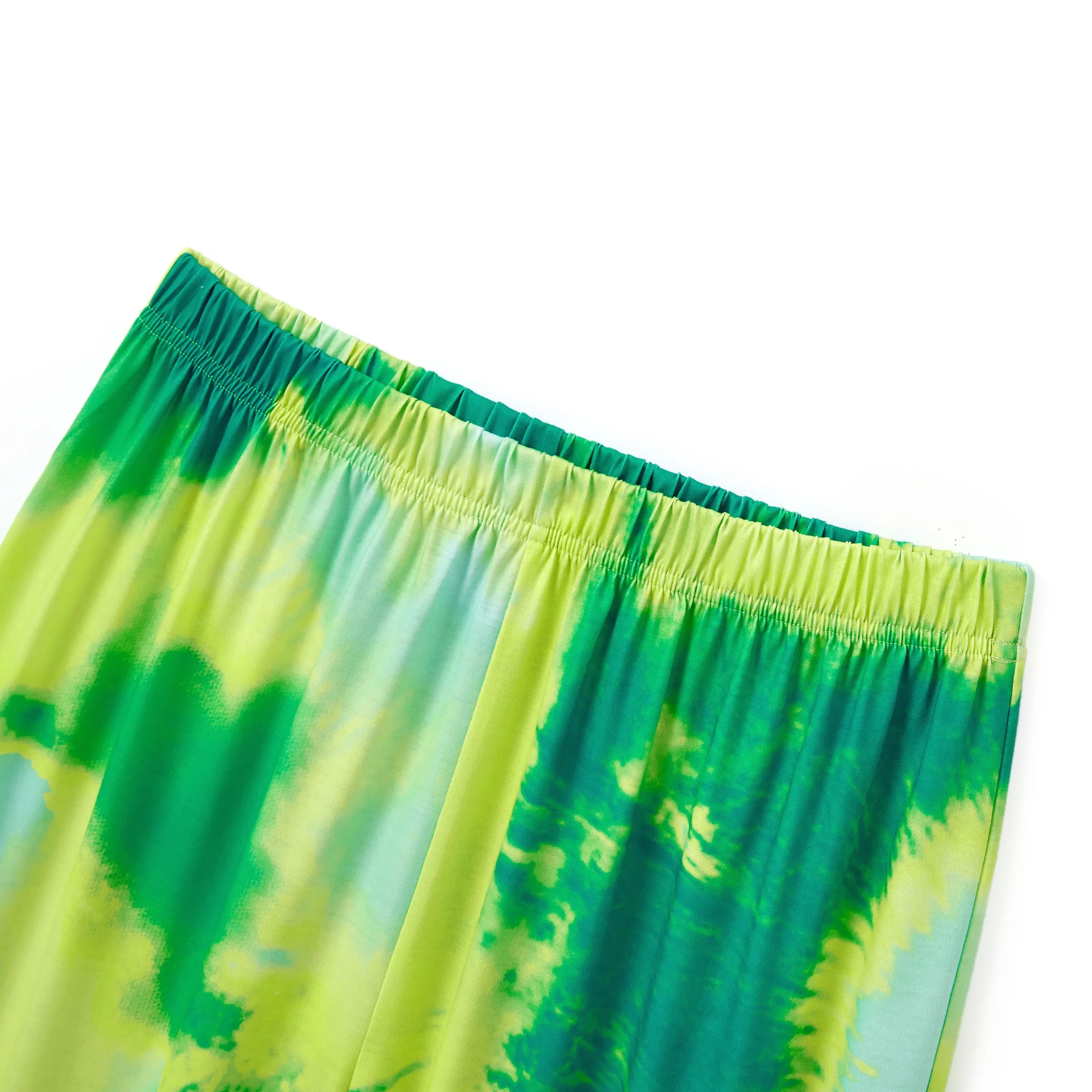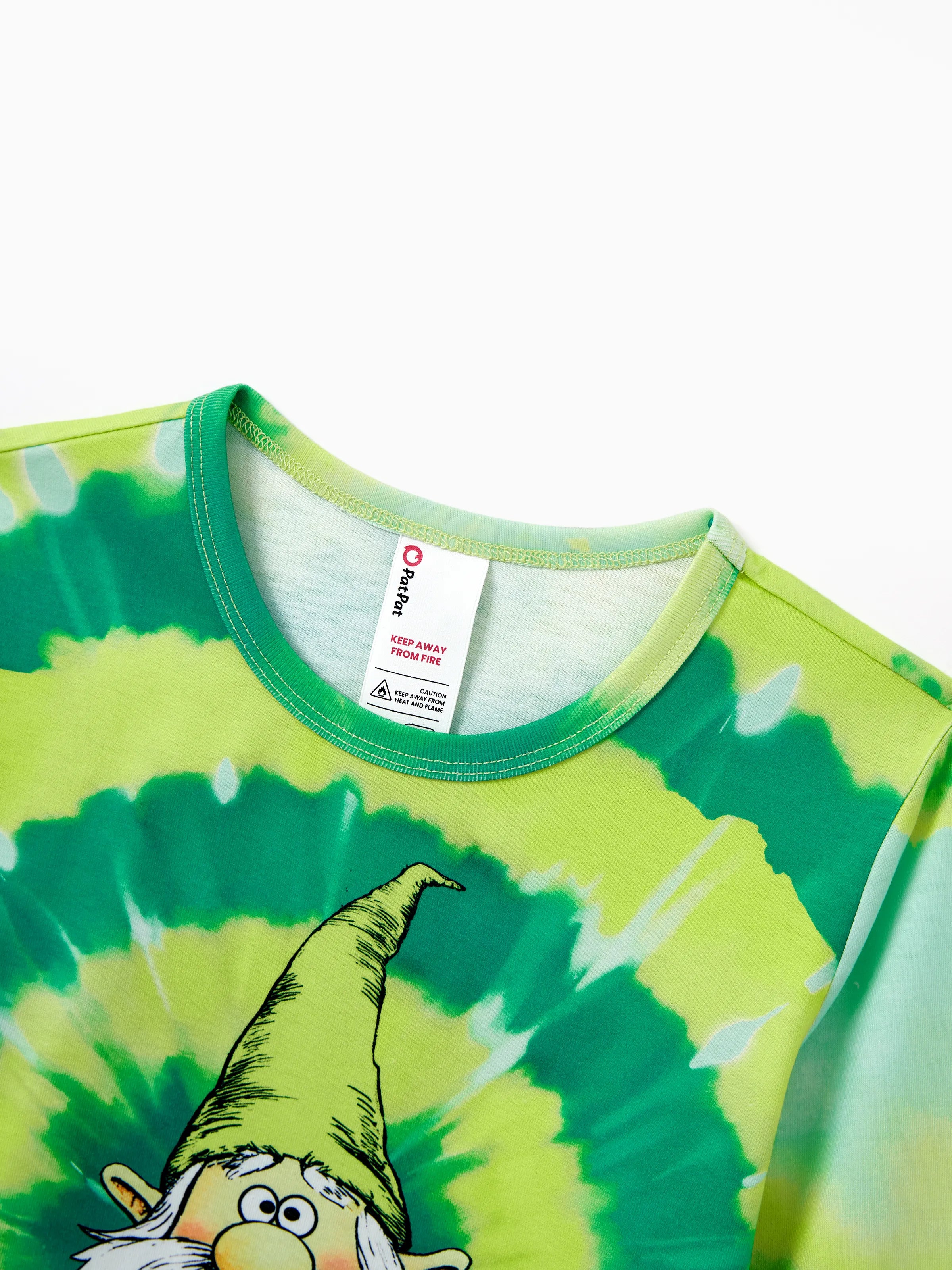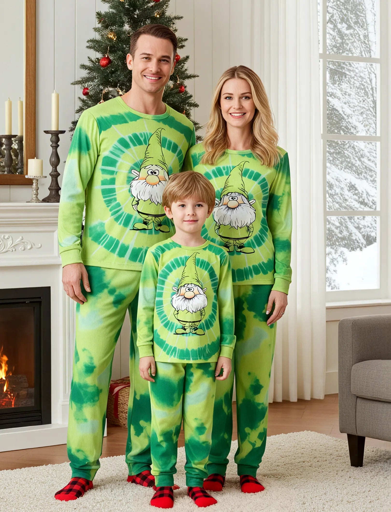 Christmas Matching Family Pajamas Set Cute ELF Print Gradient Tie-Dye Long-sleeve PJS with Christmas Socks Green