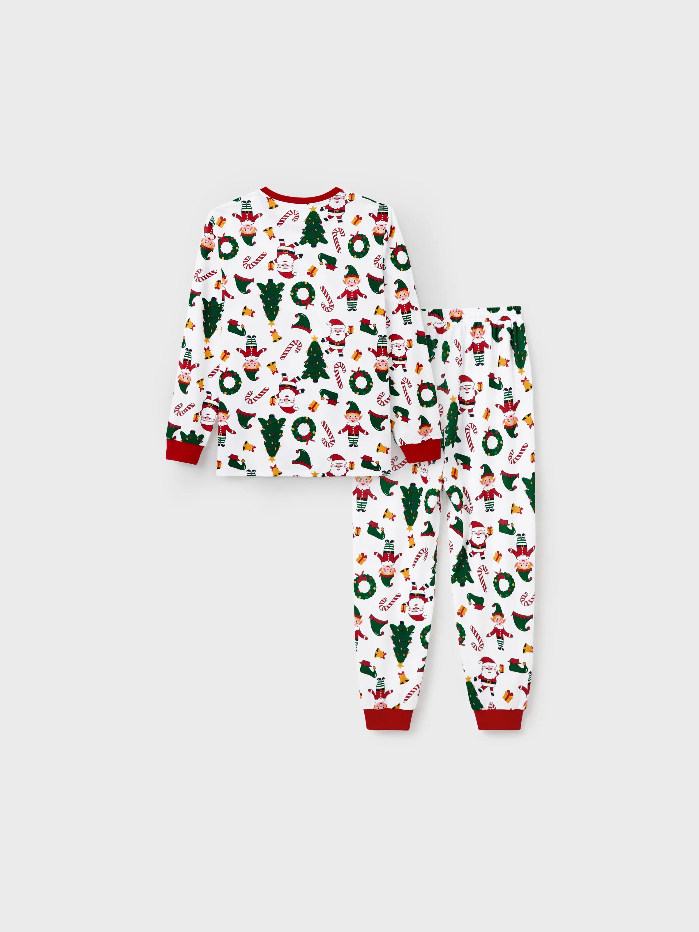 Ensemble pyjama de Noël assorti pour toute la famille, imprimé Père Noël et sapin de Noël, manches longues, avec chaussettes de Noël blanches
