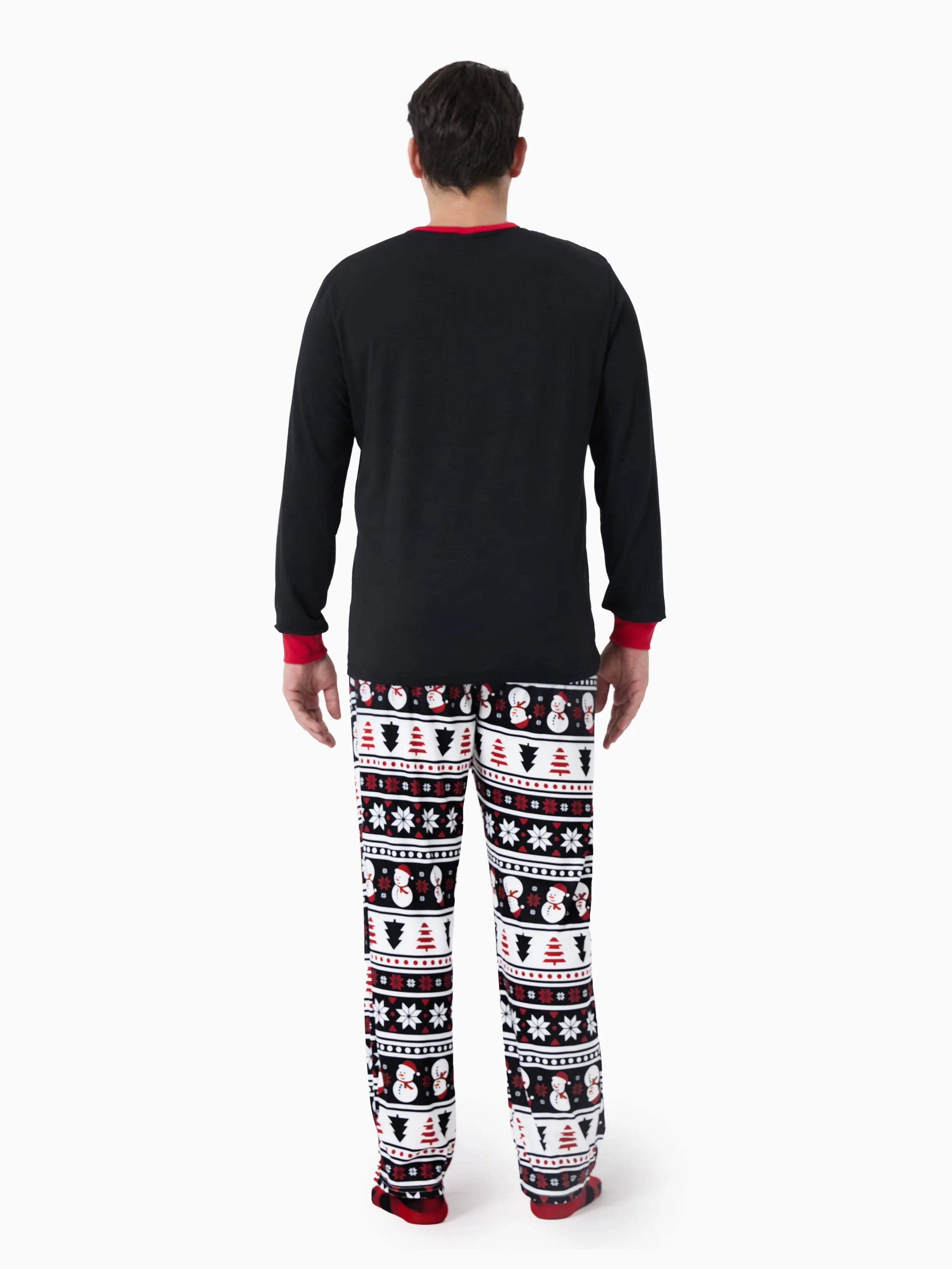 - Style : Tenues familiales festives assorties pour Noël avec des imprimés de bonhomme de neige et de sapin de Noël.