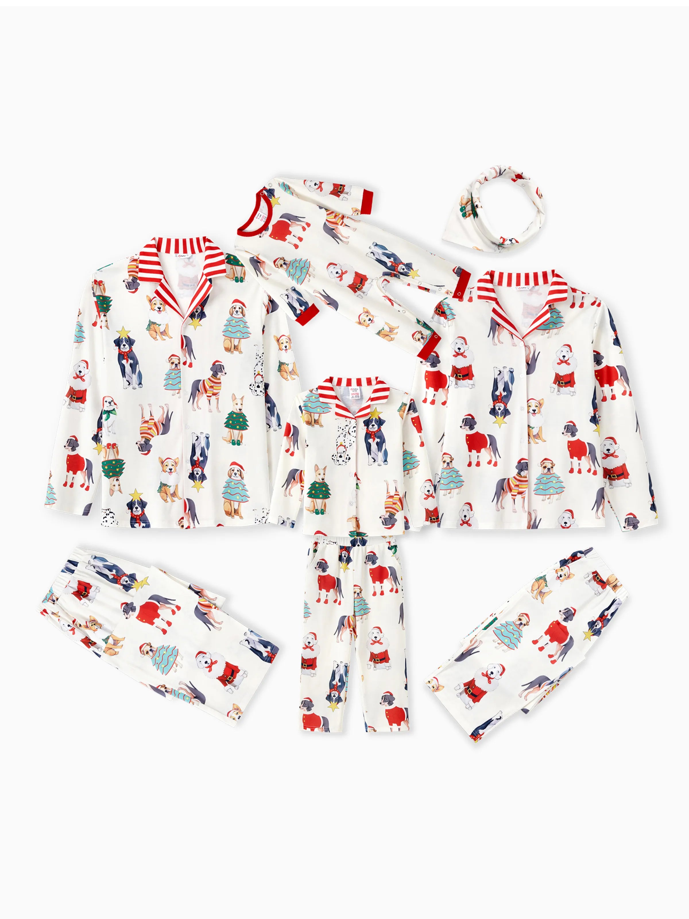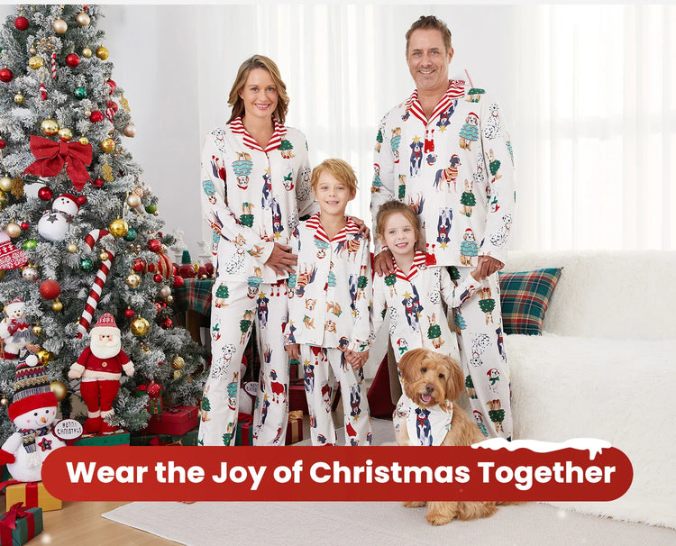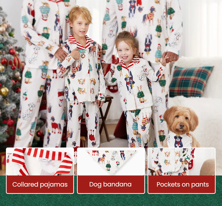 Procurez-vous un pyjama de Noël familial assorti, orné d'un imprimé chien festif et d'un bandana. Renforcez les liens familiaux et créez des souvenirs inoubliables.