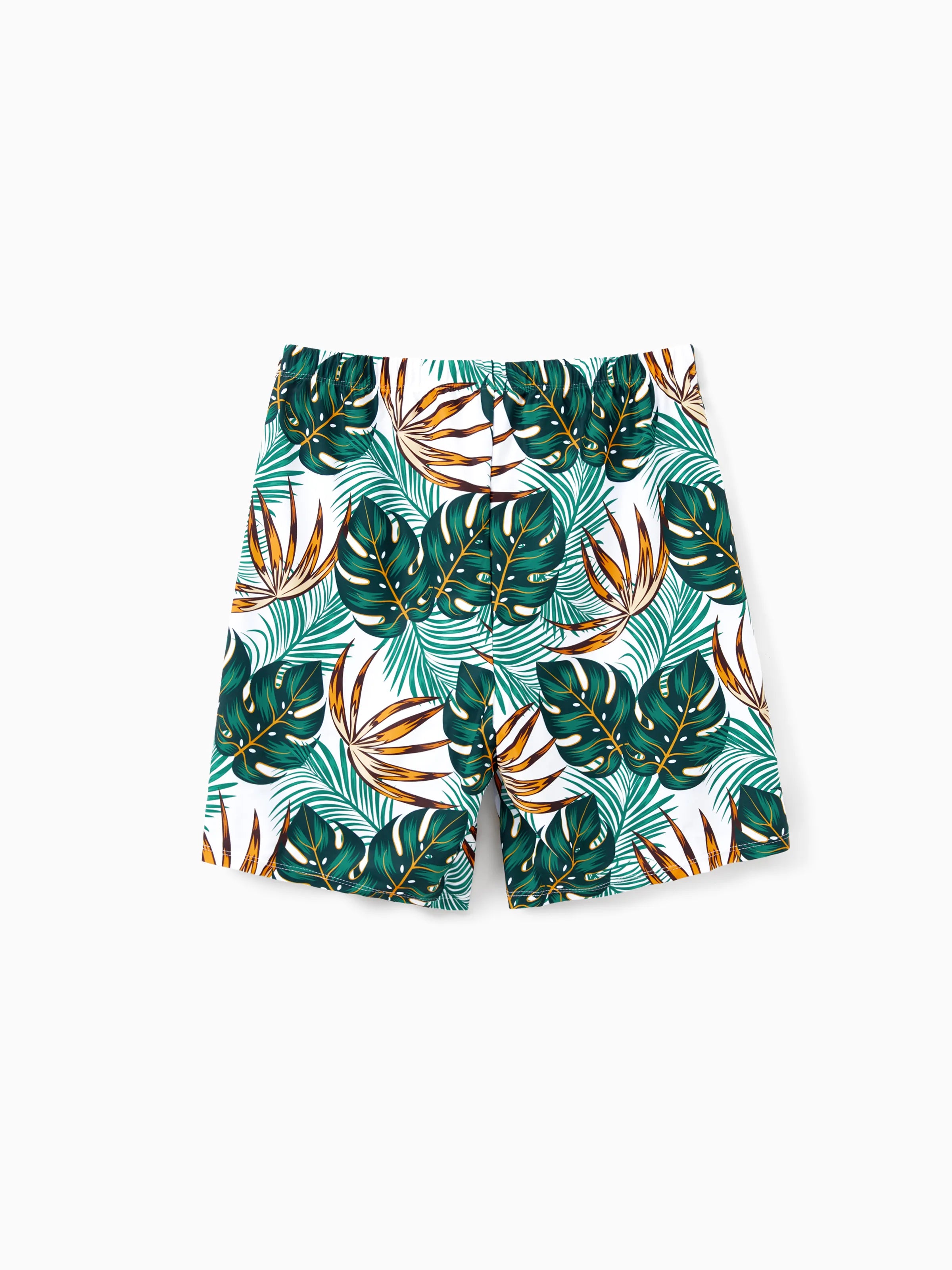 Daddy & Son Allover Plants Print Swim Trunks Shorts Dark Green
