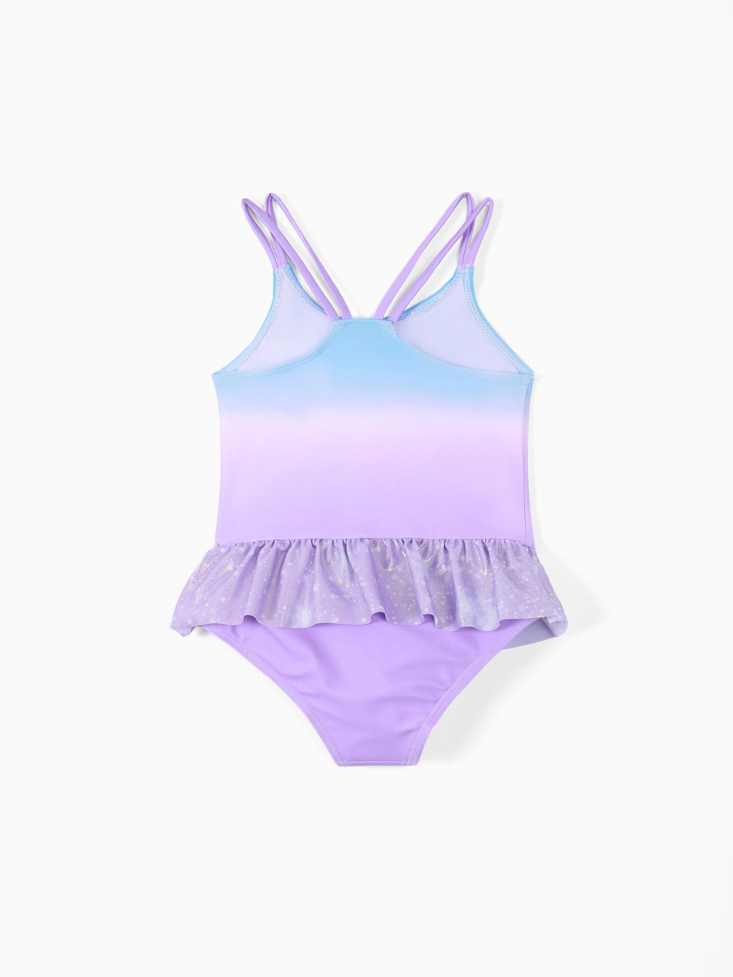 Maillot de bain à volants Elsa pour petite fille Disney La Reine des Neiges, protection UPF 50+, bleu