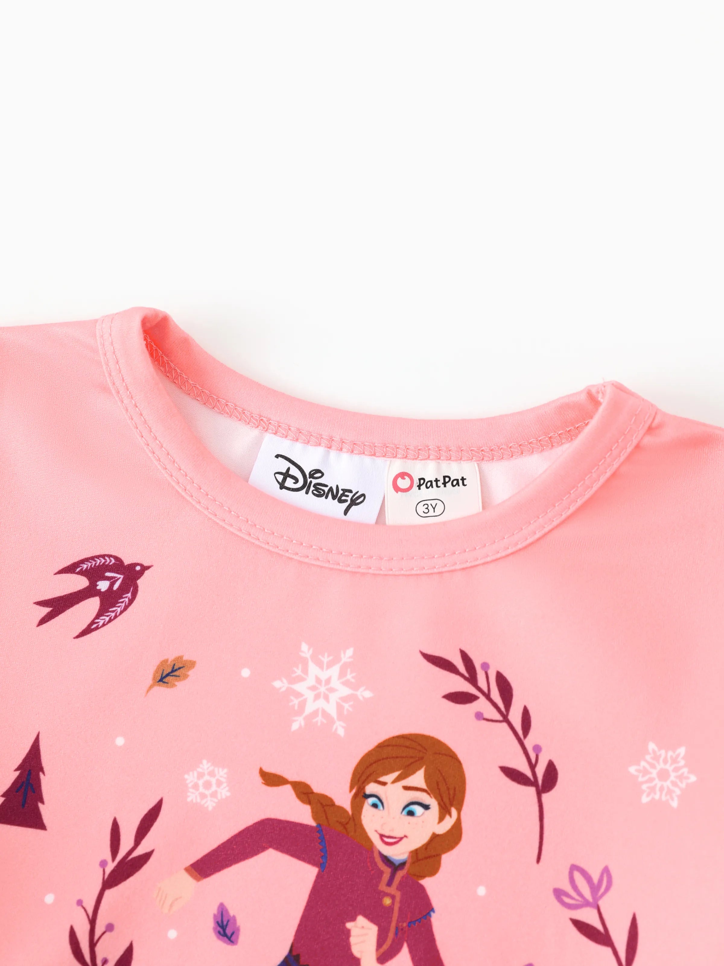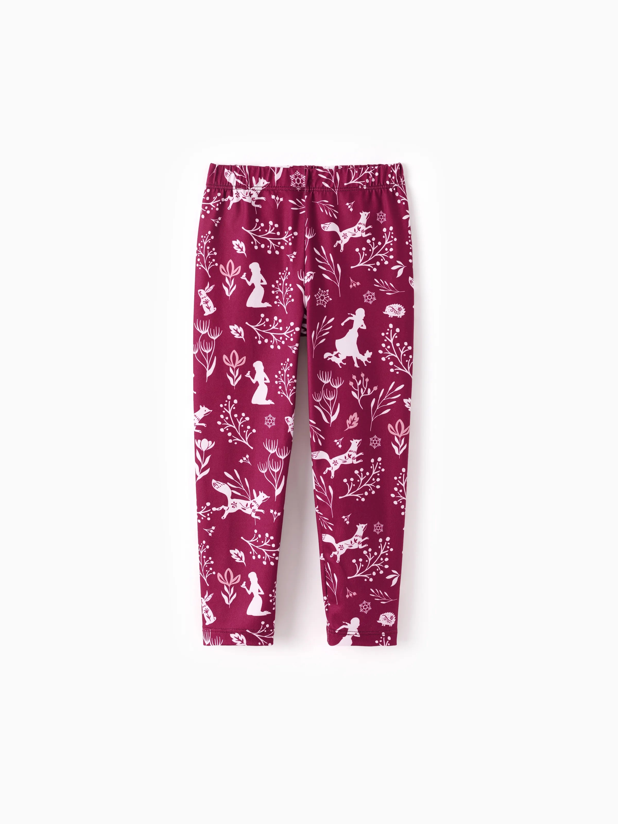 Ensemble 2 pièces haut à volants et leggings à imprimé floral Anna pour petite fille Disney La Reine des Neiges, rouge