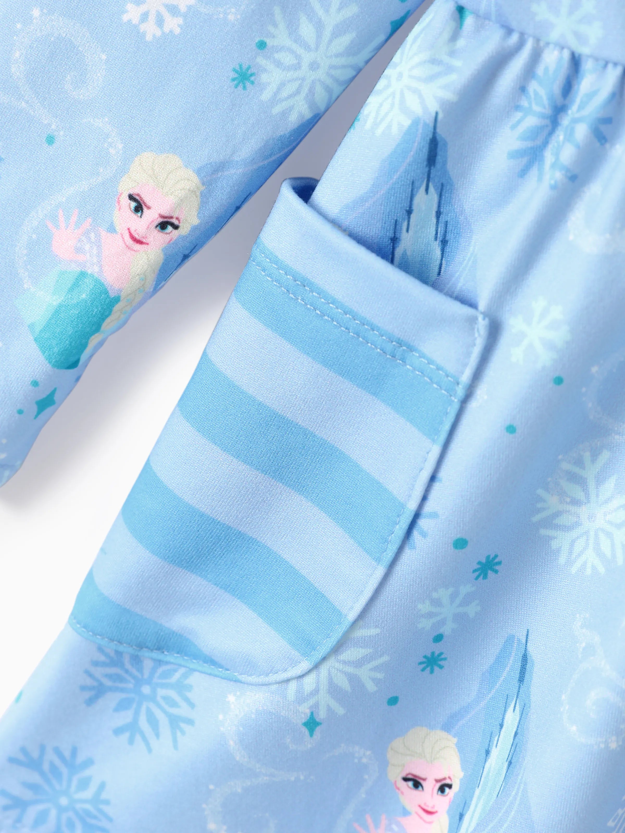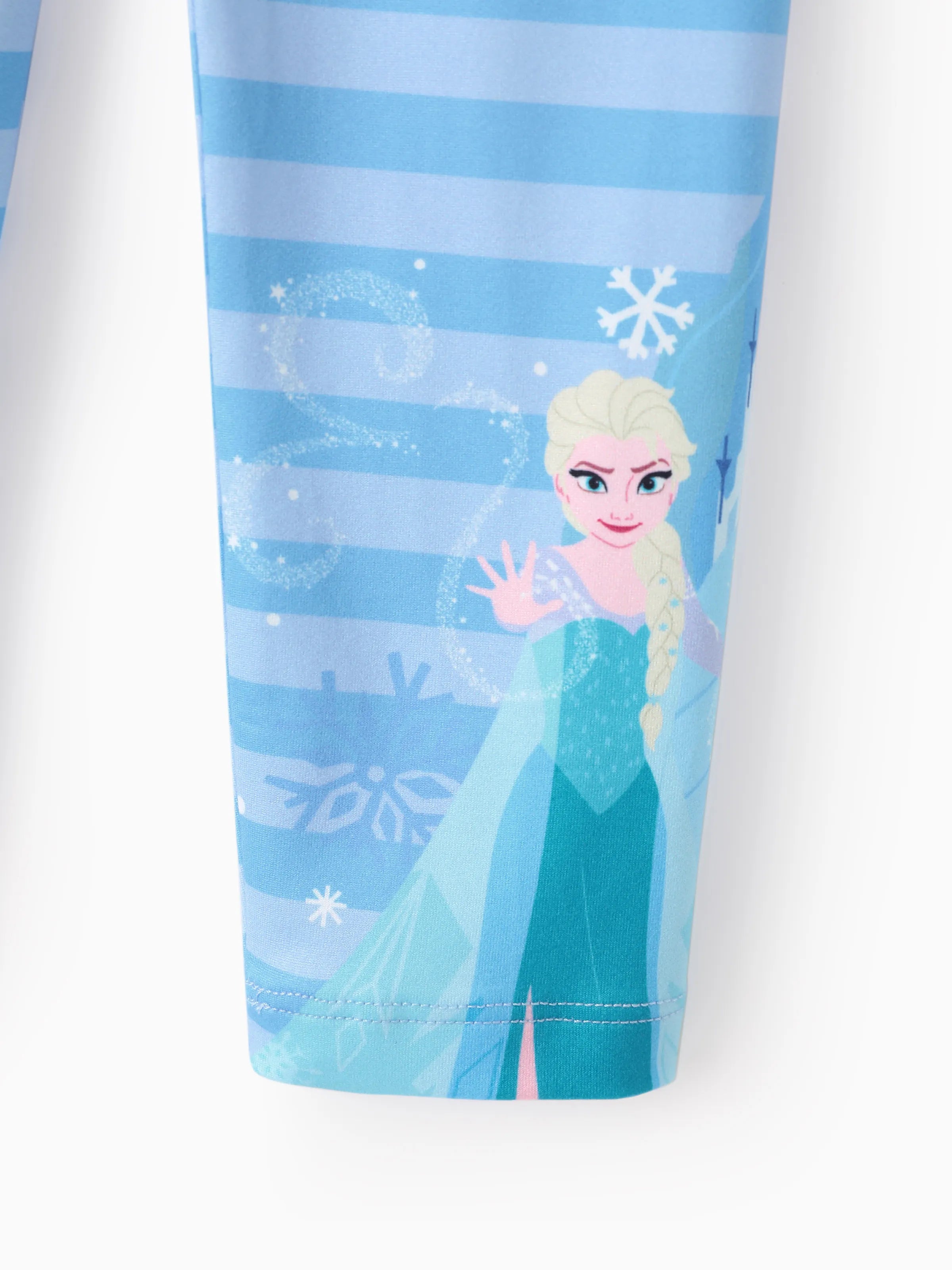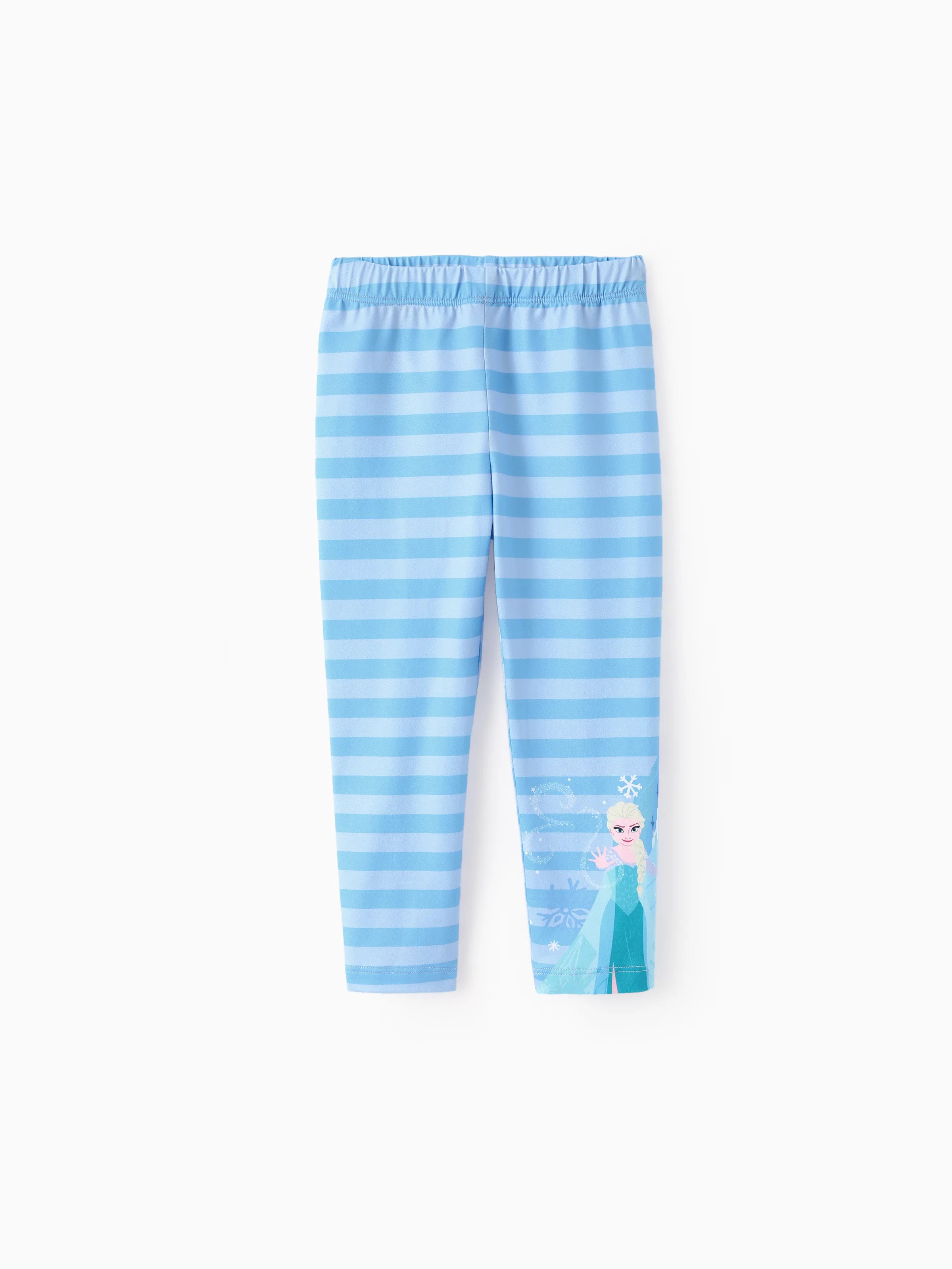 Ensemble 2 pièces haut à volants et leggings à rayures Elsa pour petite fille Disney La Reine des Neiges, bleu
