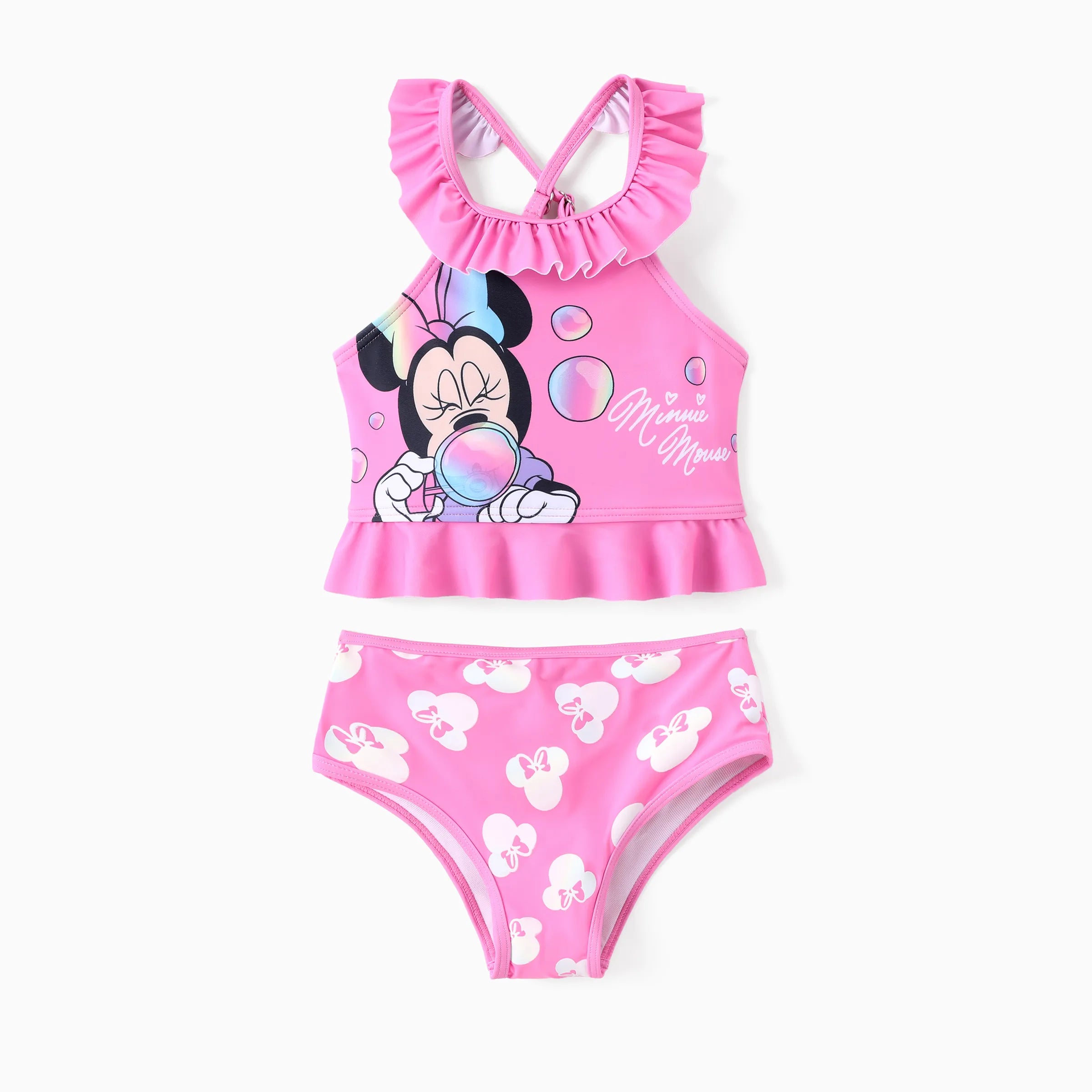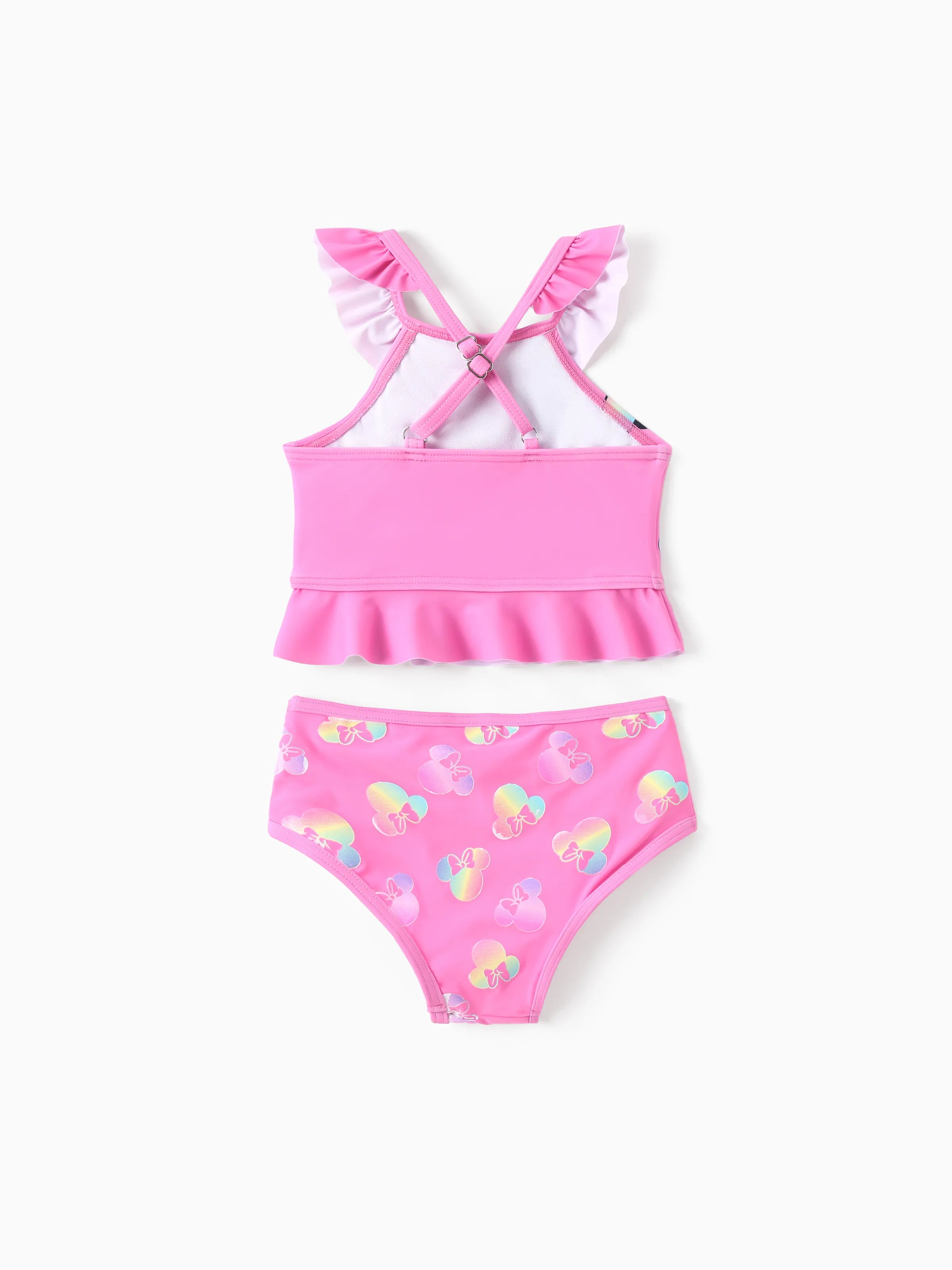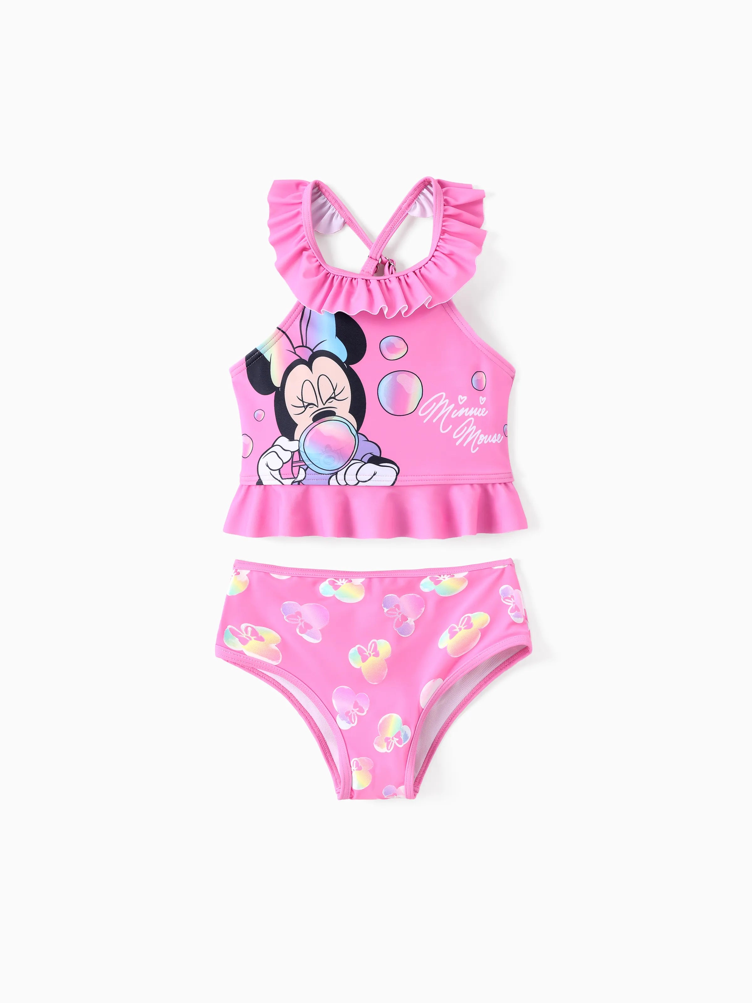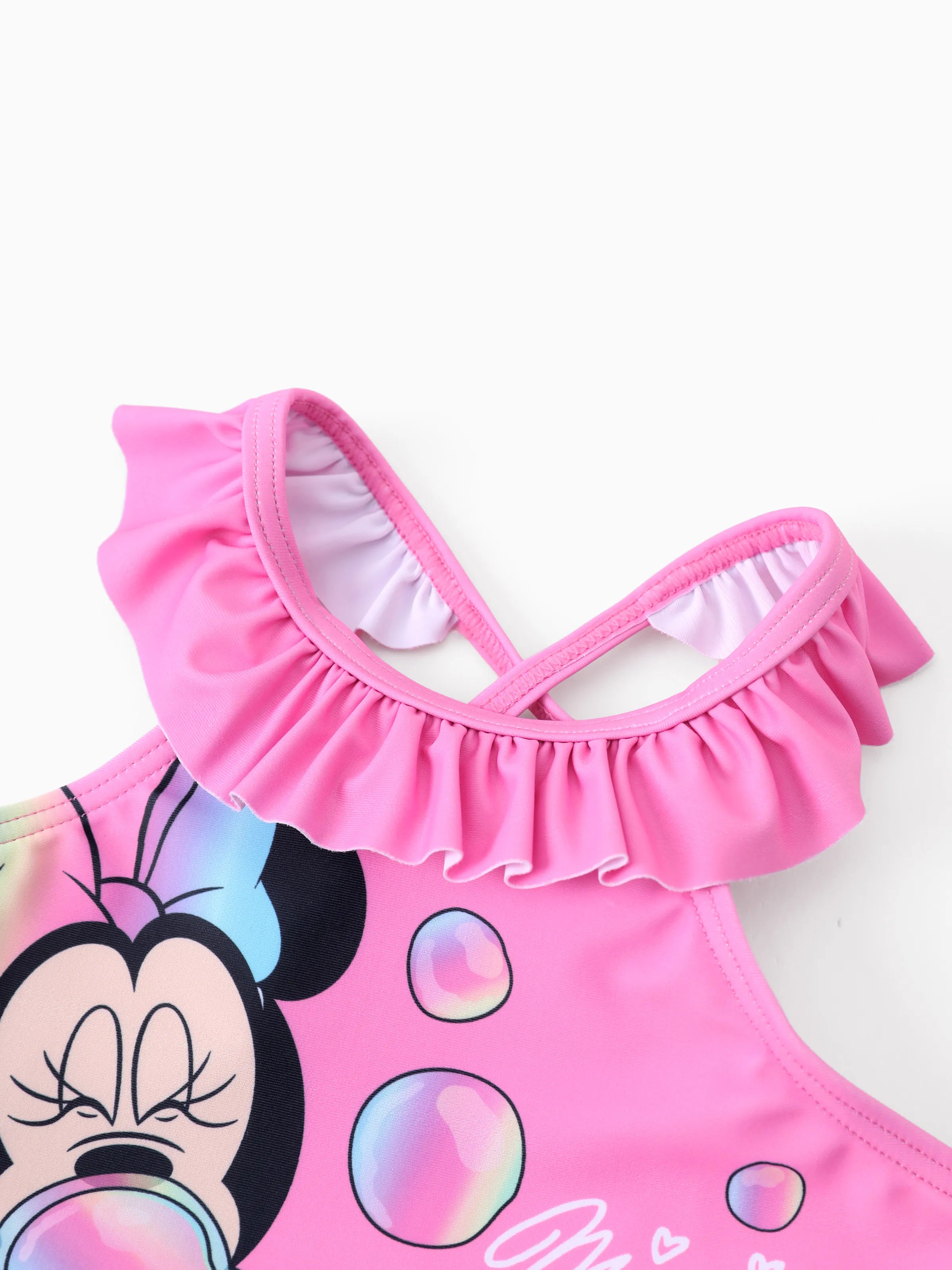 Maillot de bain 2 pièces Disney Mickey et ses amis pour bébé/petite fille, Minnie Mouse, volants, épaules dénudées, couleurs changeantes, UPF 50+, rose