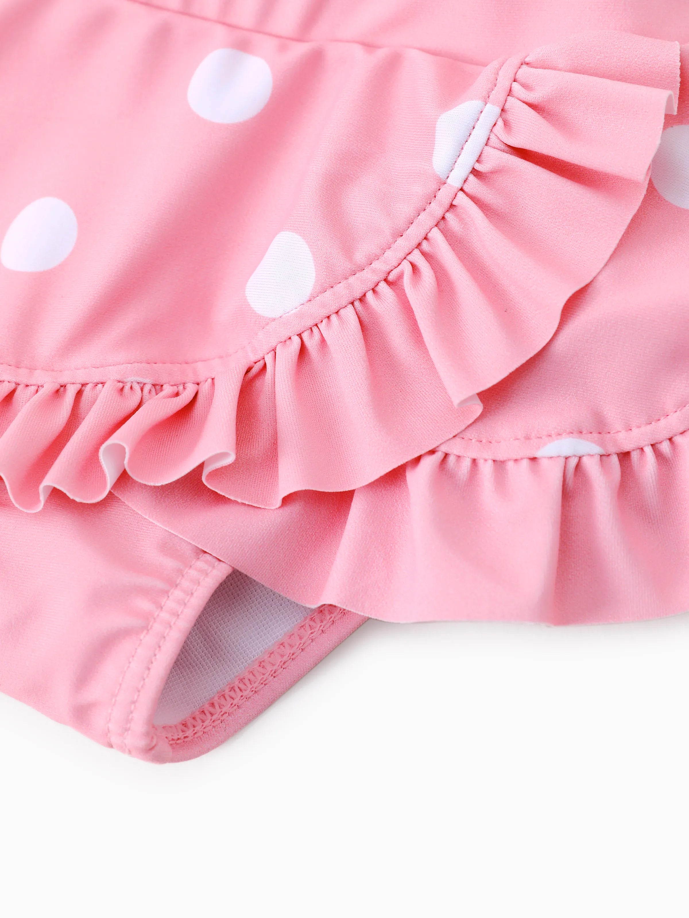 Maillot de bain 2 pièces Disney Mickey et ses amis pour bébé/petite fille, motif pastèque à pois, brodé Minnie Patch, rose
