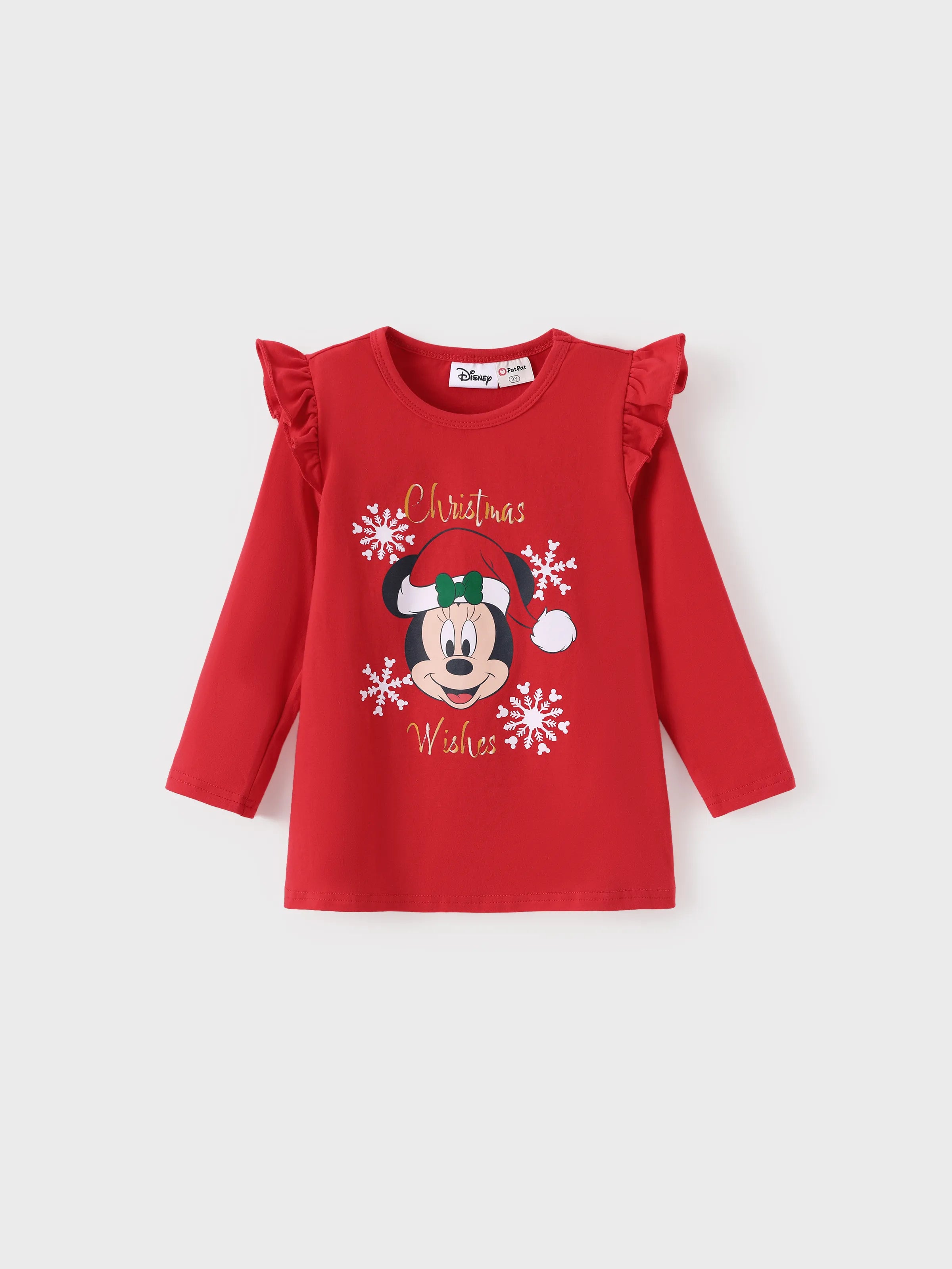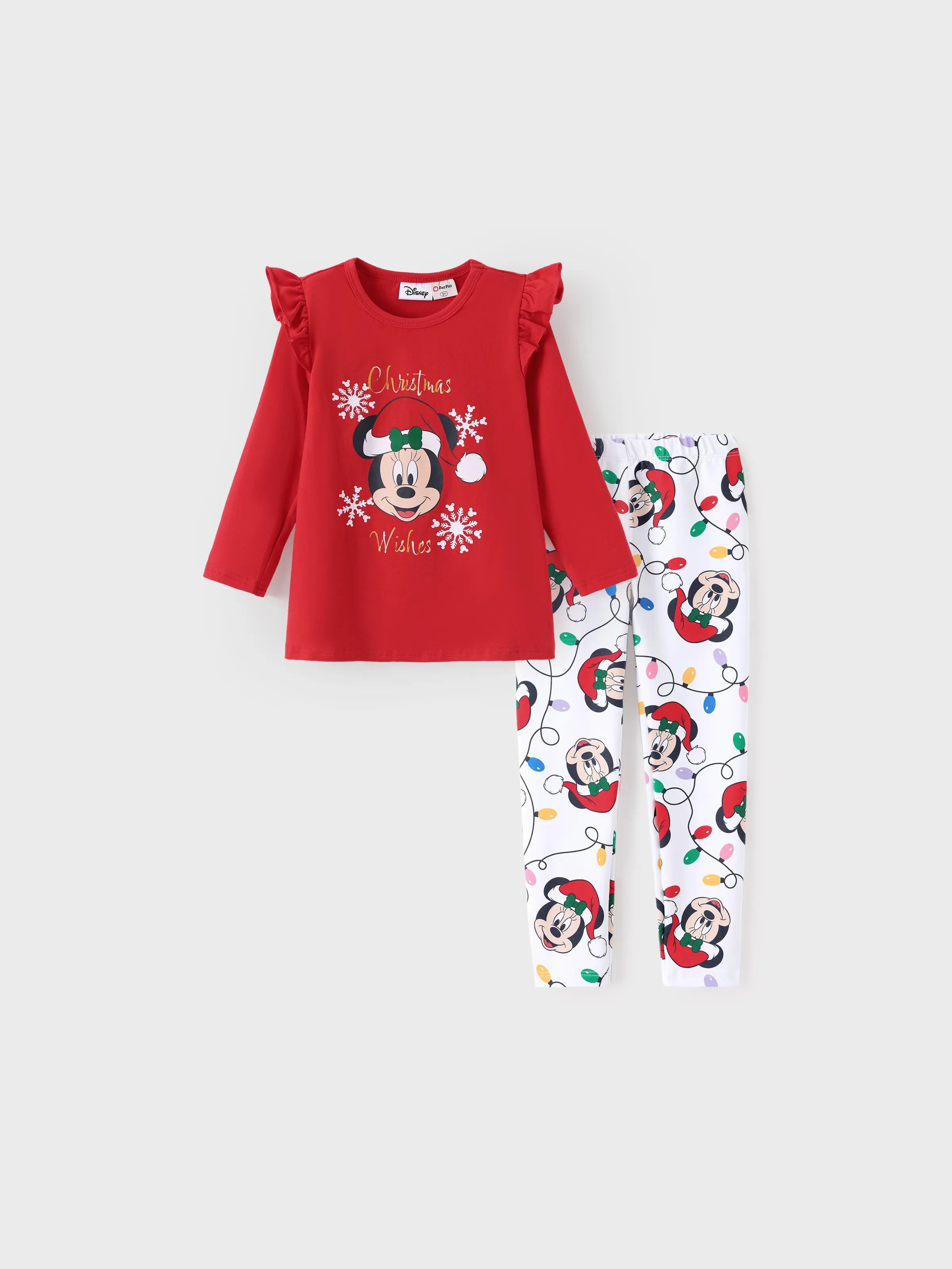 Ensemble 2 pièces haut à manches flottantes et leggings rouge pour bébé/petite fille Disney Mickey et ses amis, motif Noël