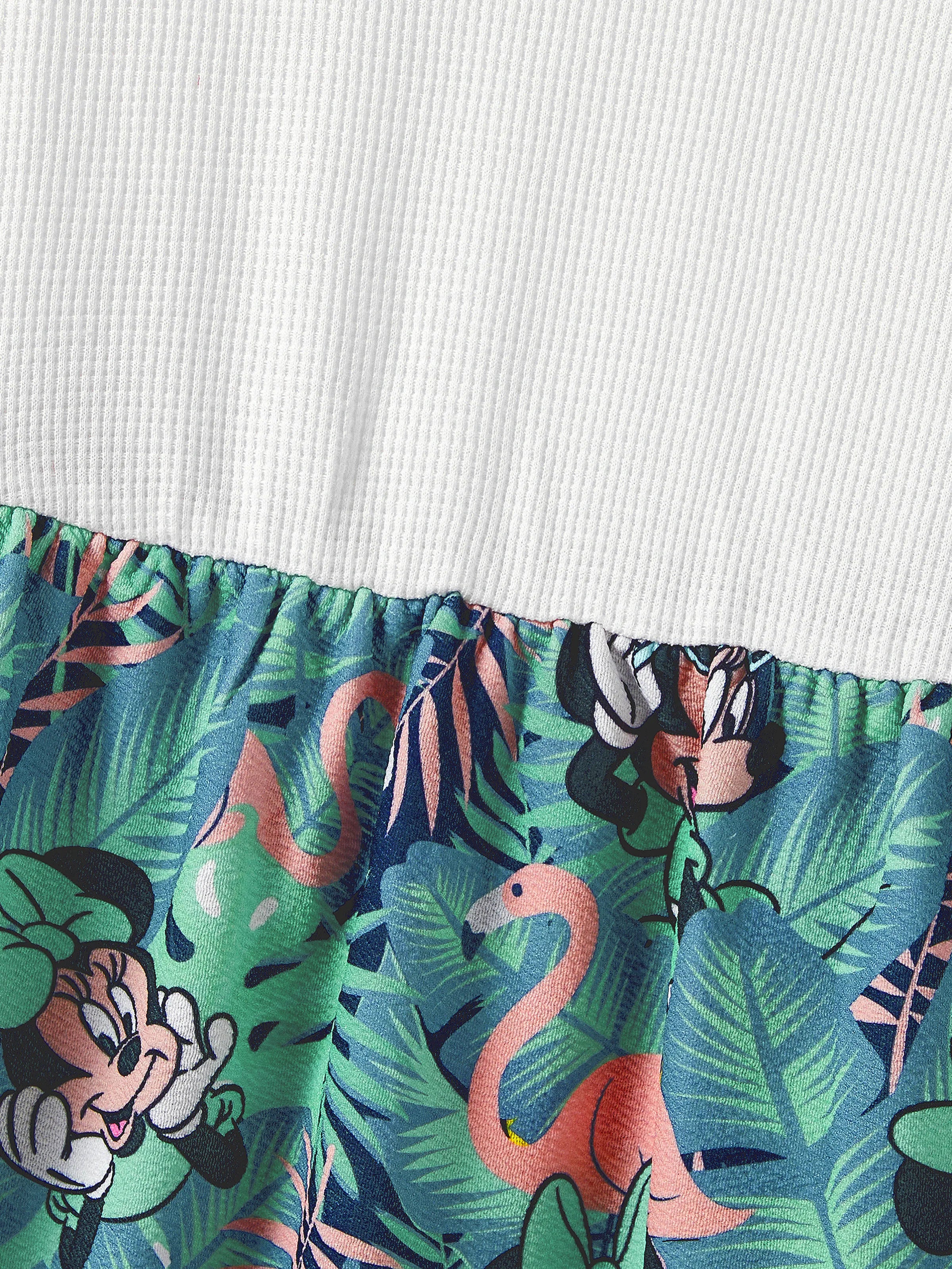 T-shirt/robe assorti(e) Disney Mickey et ses amis en tissu gaufré à imprimé botanique tropical vert et blanc