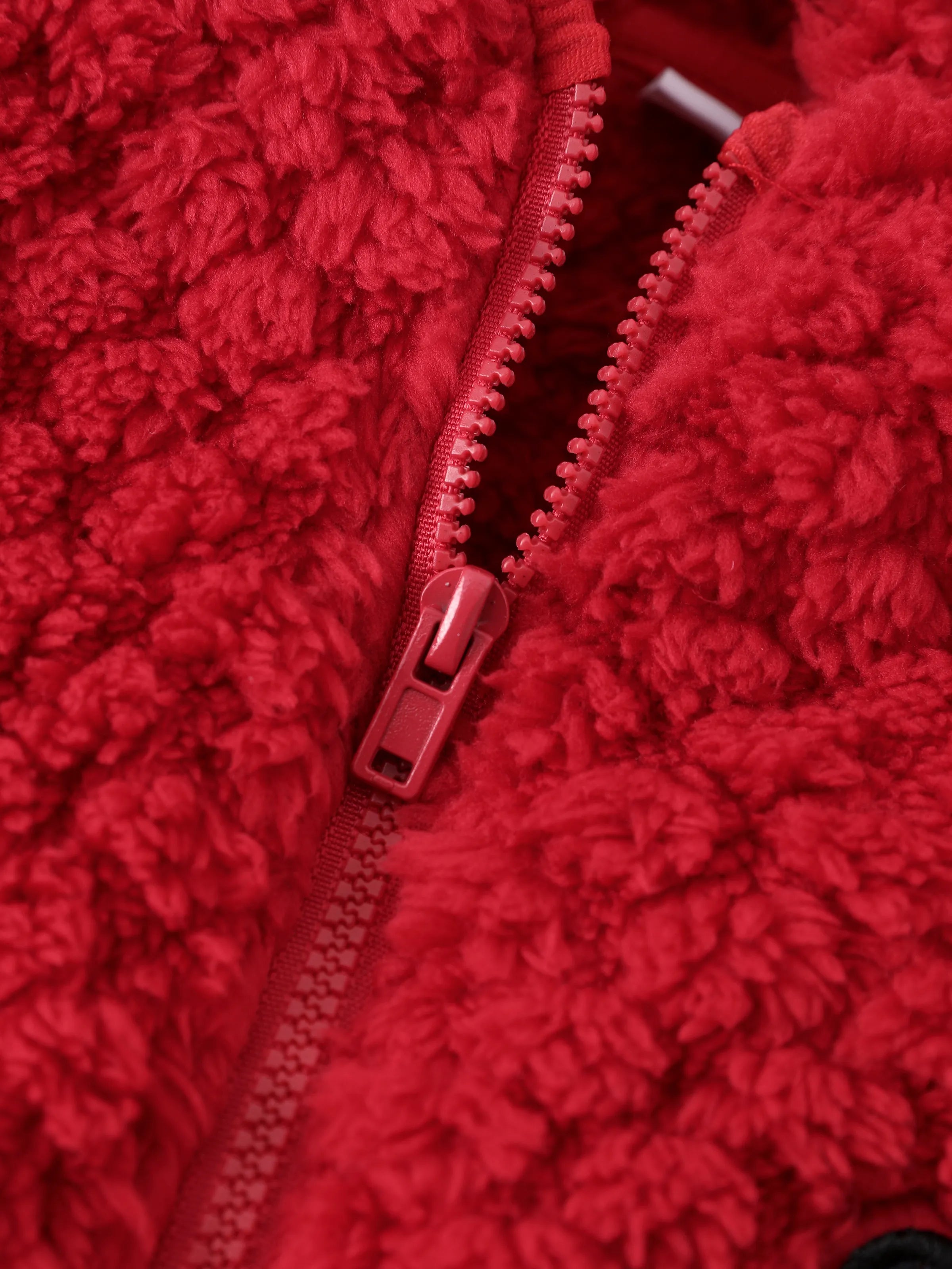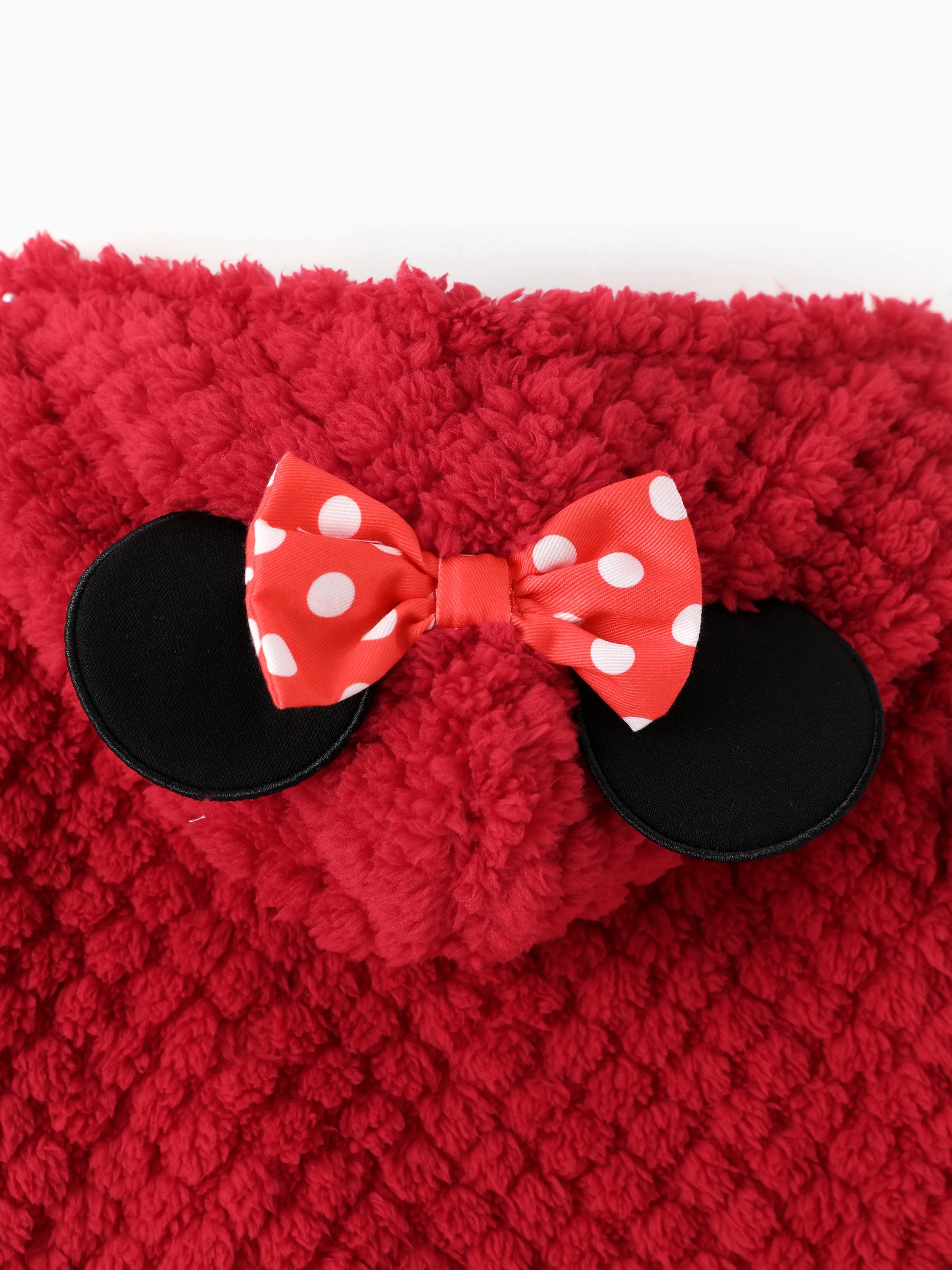 Disney Mickey and Friends Toddler Girl Minnie Mouse Plush Bowknot 3D Ears Hooded Long-sleeve Coat Red