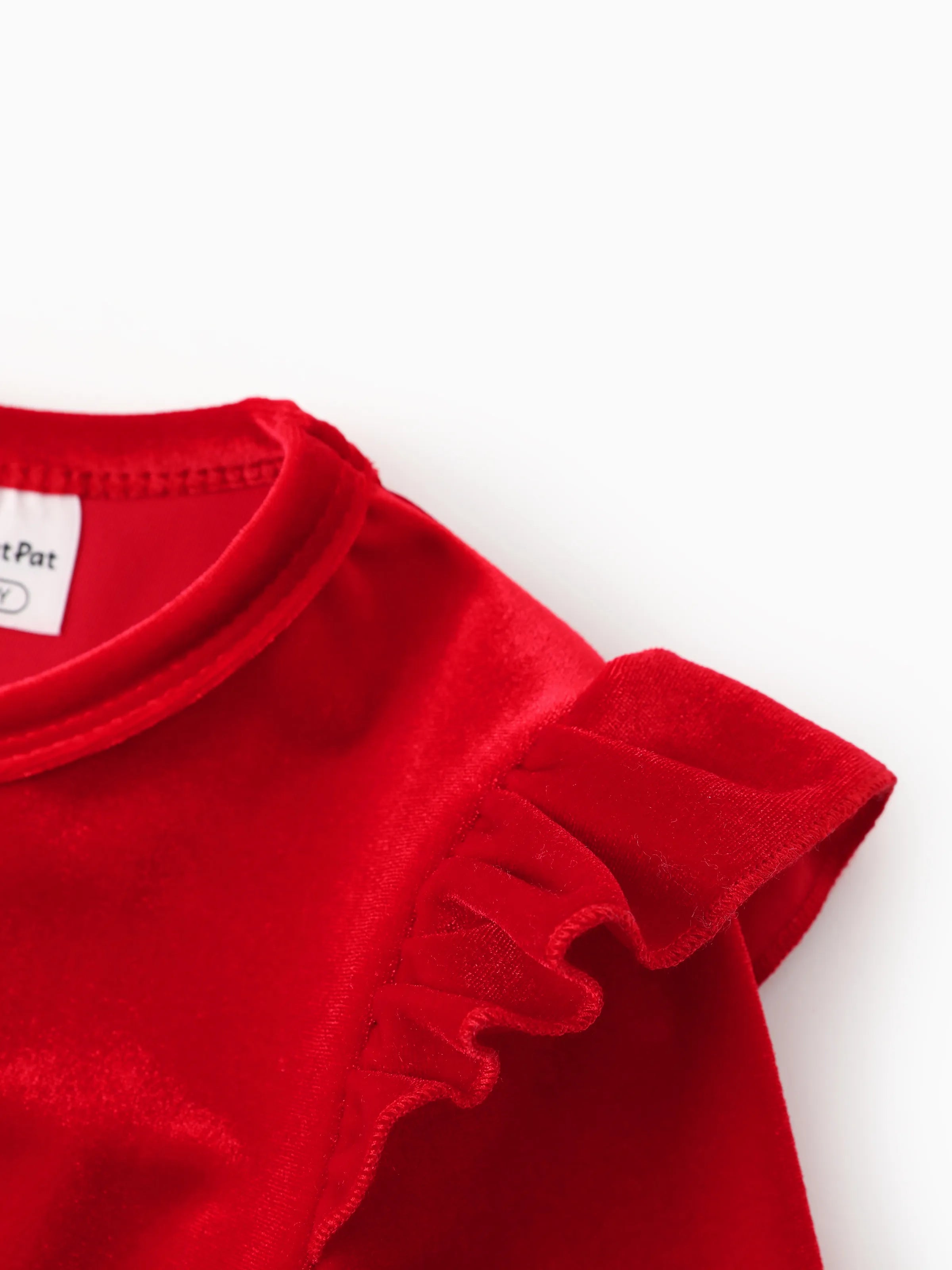 Robe de Noël à volants en velours rouge Disney Mickey et ses amis pour petite fille