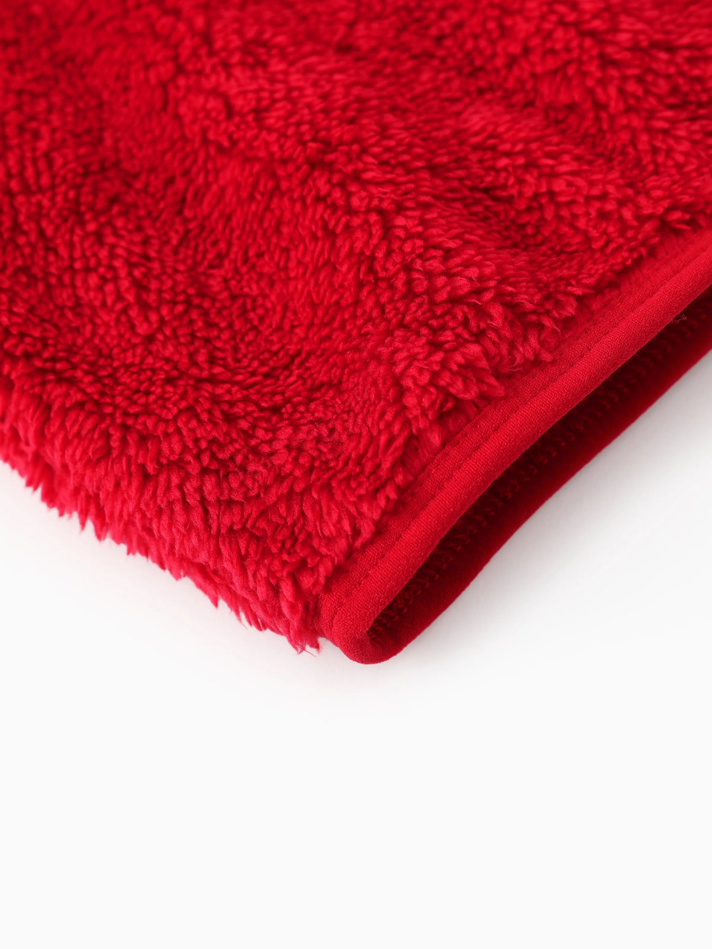 Soft, warm double-sided fleece fabric. Red: 100% polyester. Light purple: 100% polyester.