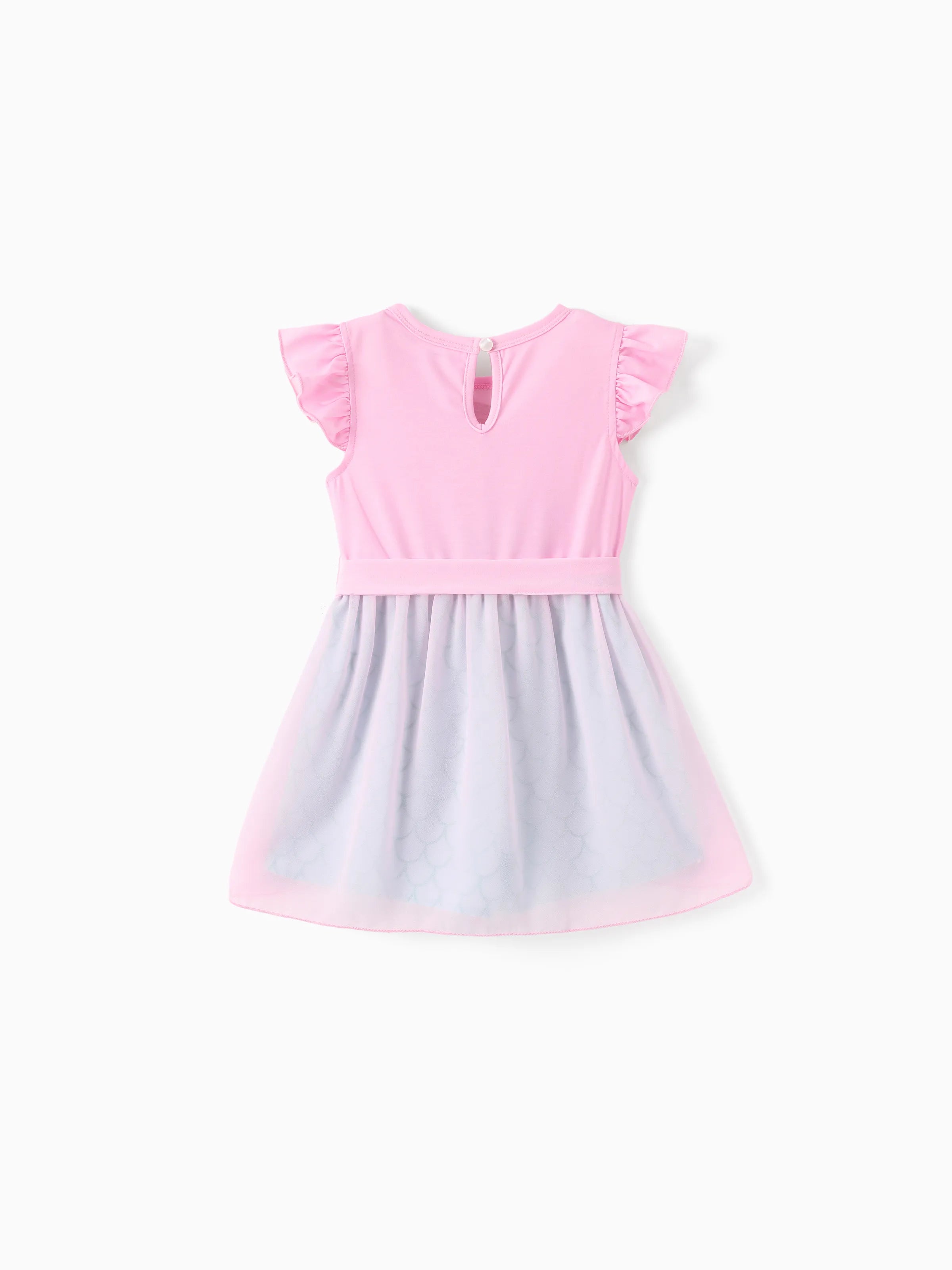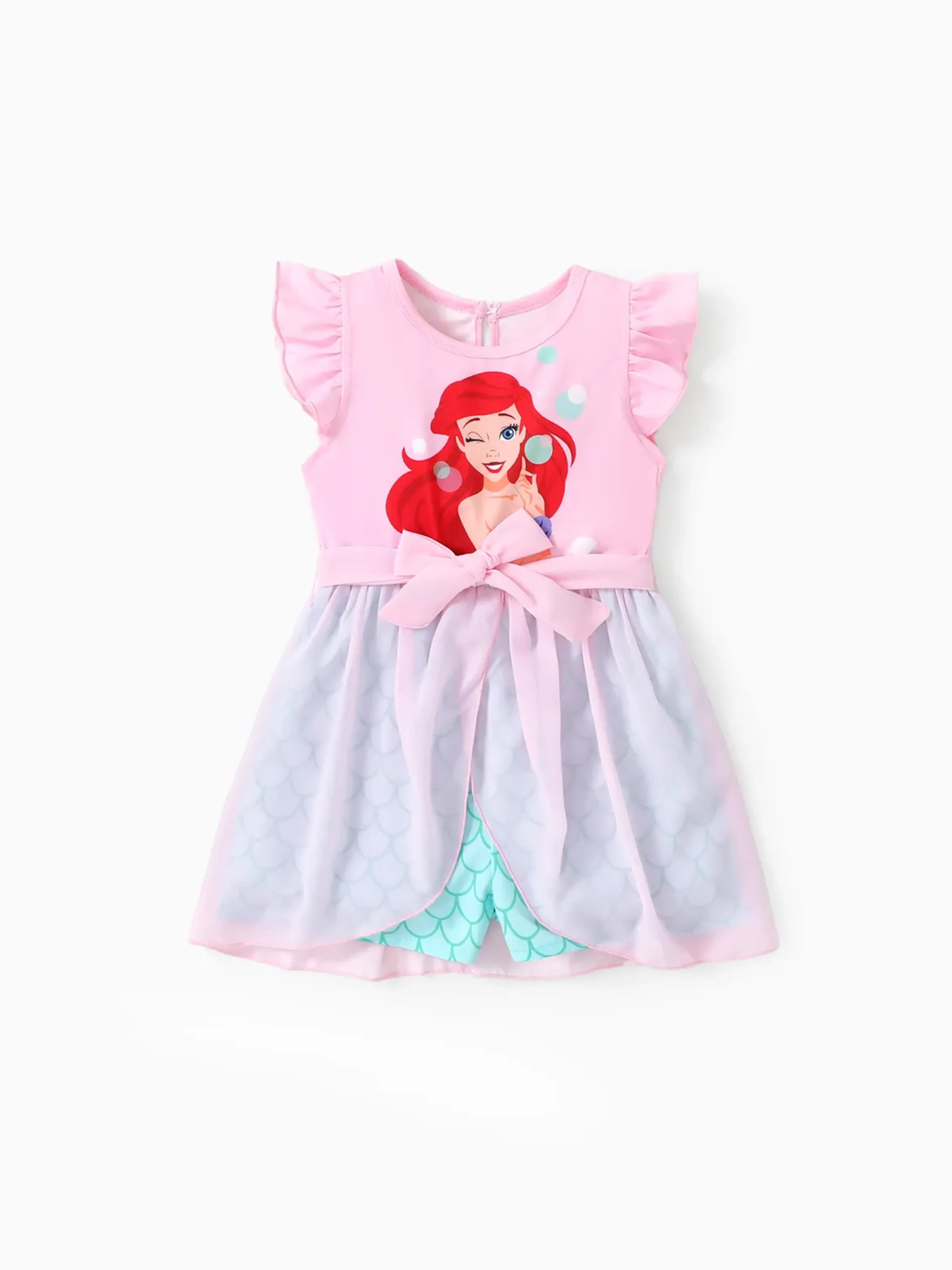 Barboteuse à volants en maille avec nœud et imprimé princesse Ariel pour petite fille, rose