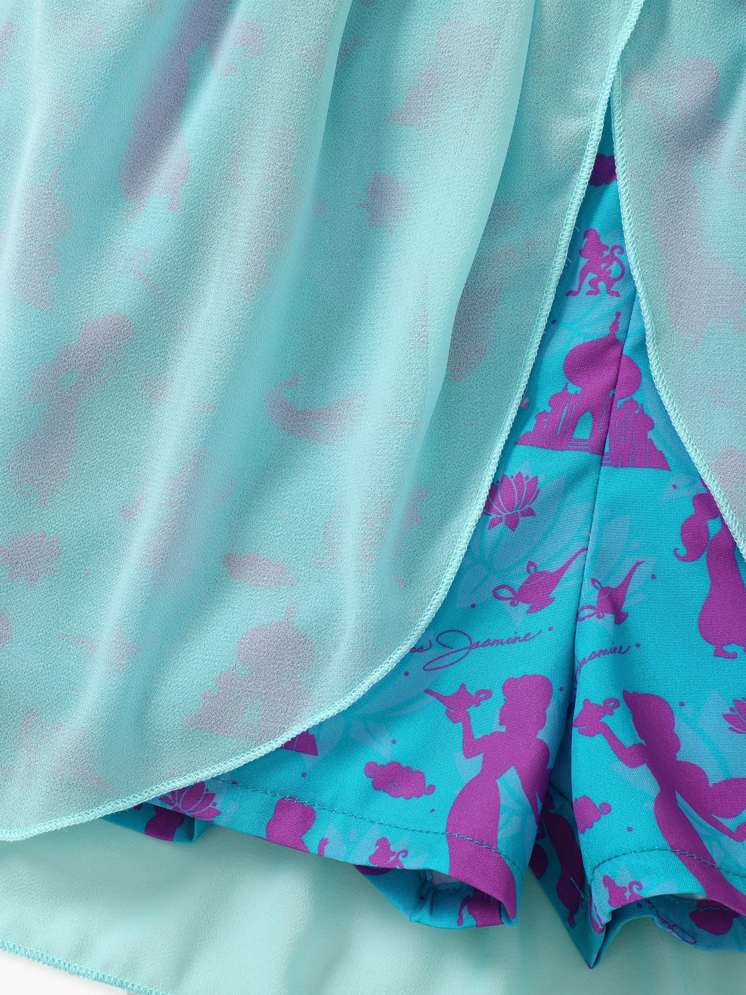 Barboteuse à volants en maille avec nœud et imprimé princesse Jasmine pour petite fille, turquoise