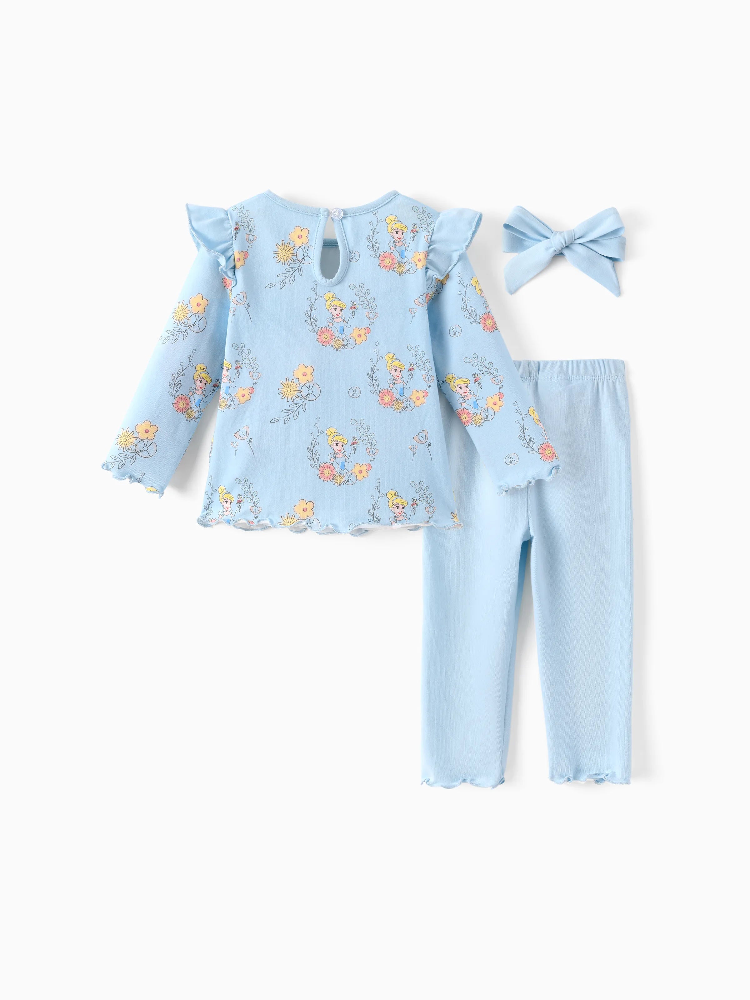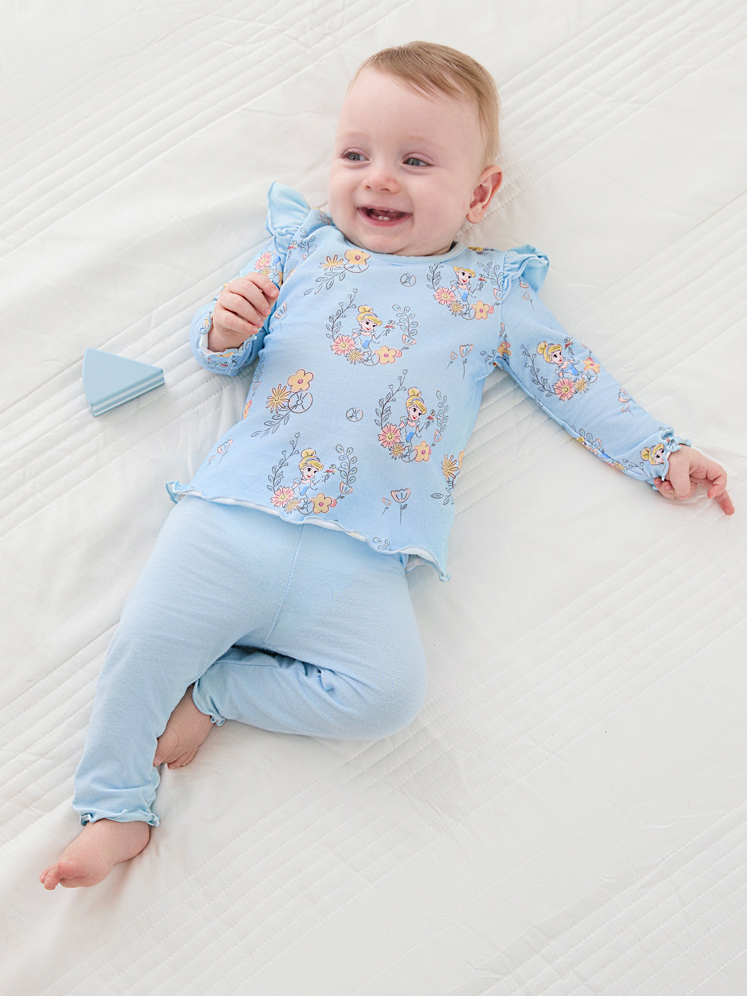 Ensemble 3 pièces Disney Princesse Cendrillon pour bébé fille, haut à volants et manches flottantes, et leggings, bleu clair