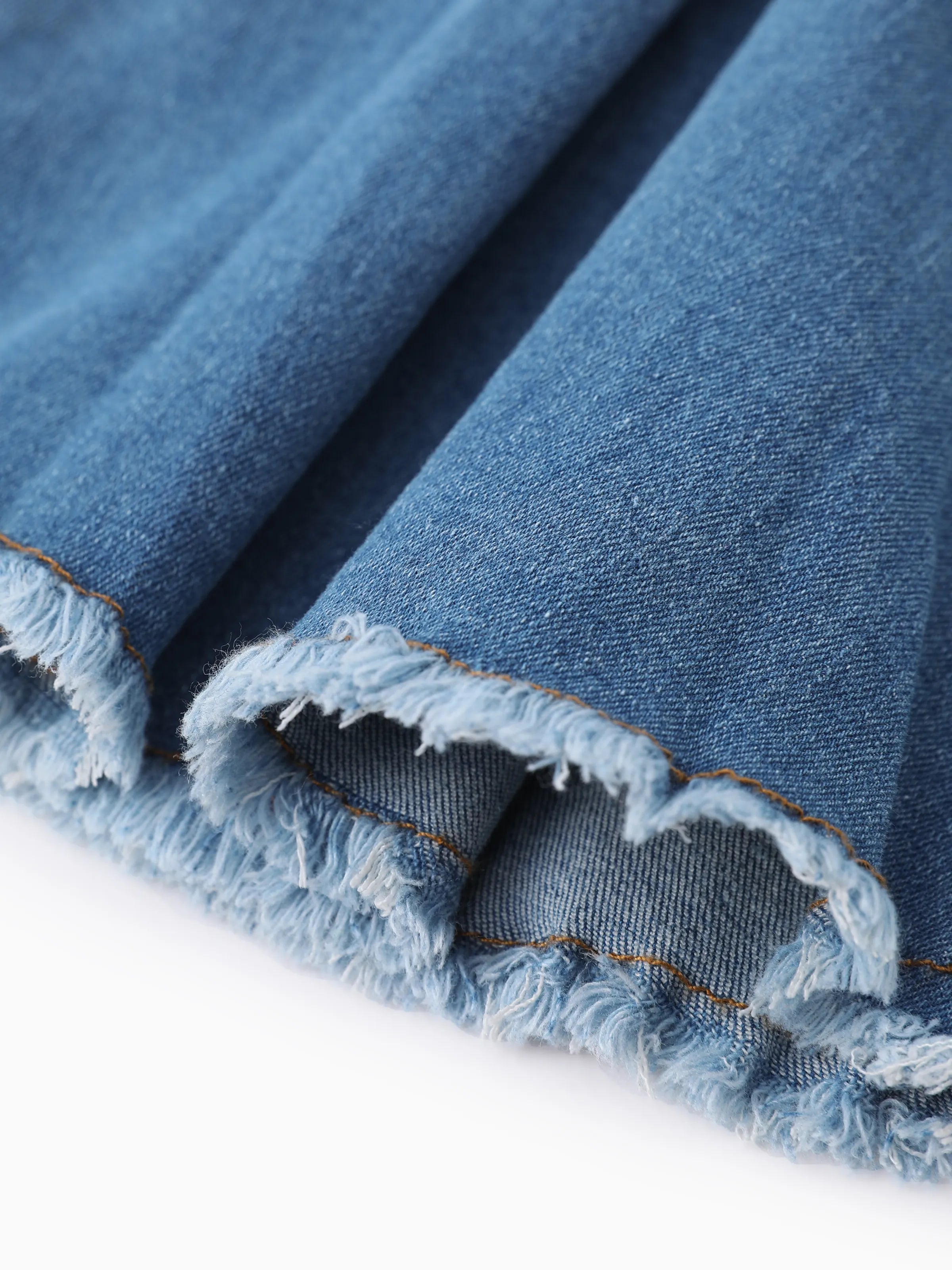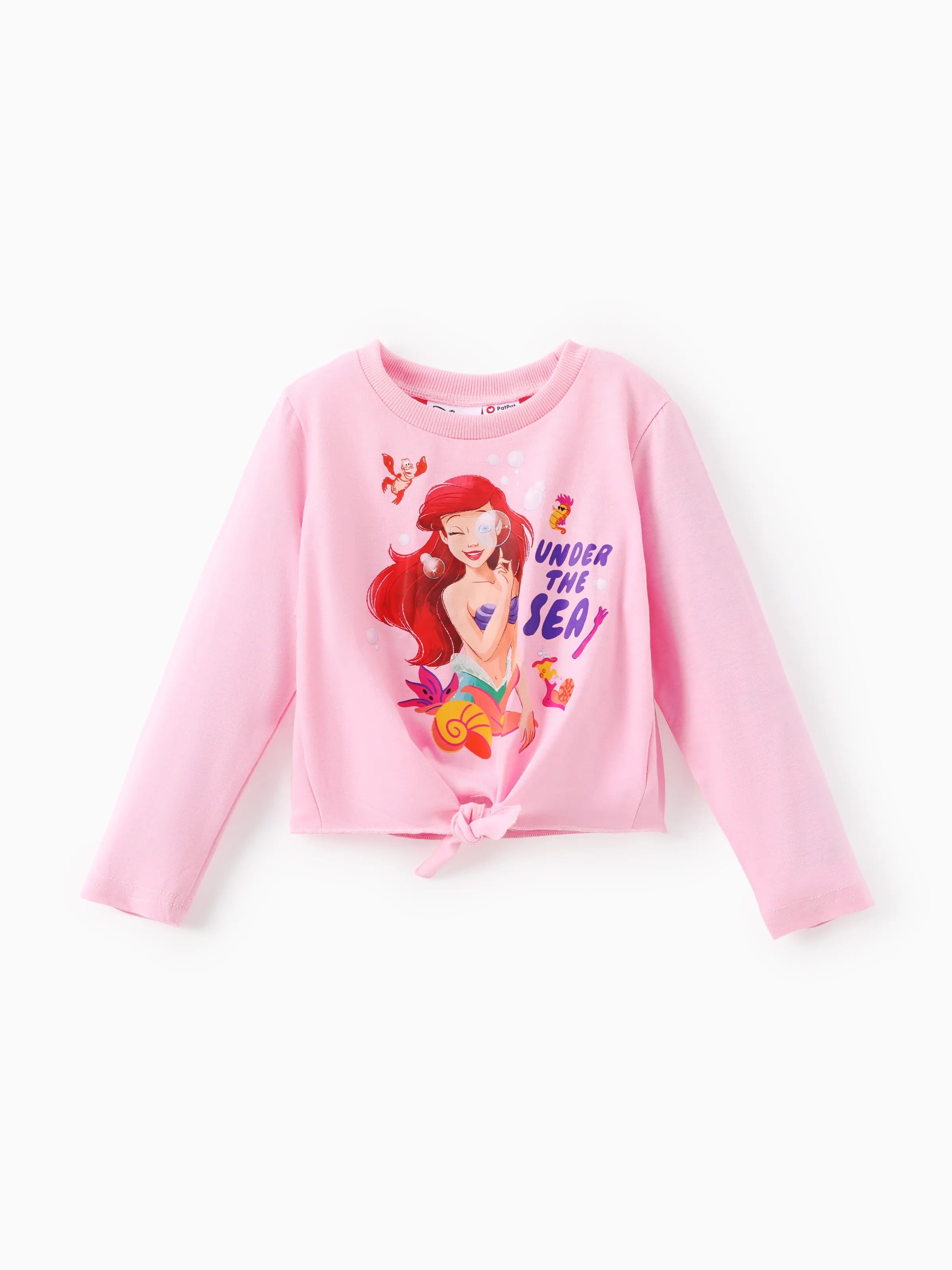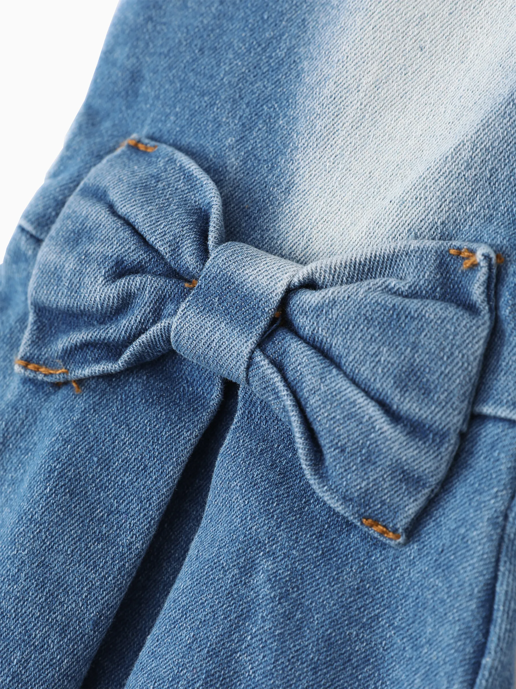 Ensemble Ariel pour bébé, sous licence officielle Disney, haut à manches courtes avec ceinture nouée et pantalon évasé en denim coloré avec nœud papillon. Idéal au quotidien, cet ensemble est confectionné en coton mélangé doux et respirant.