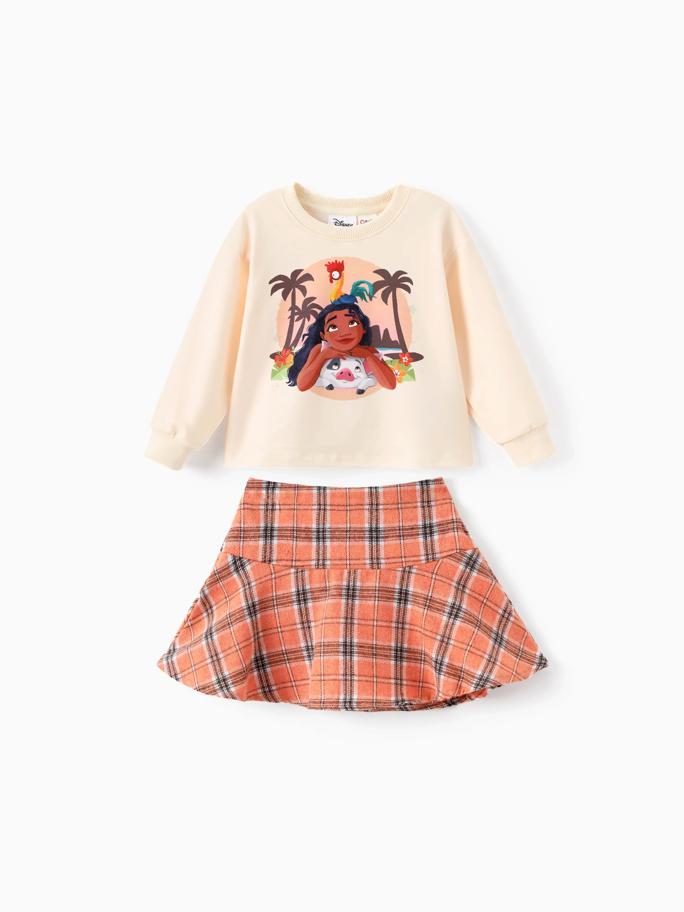 Ensemble 2 pièces princesse Disney pour petite fille, jupe à carreaux à manches longues Moana, couleur abricot