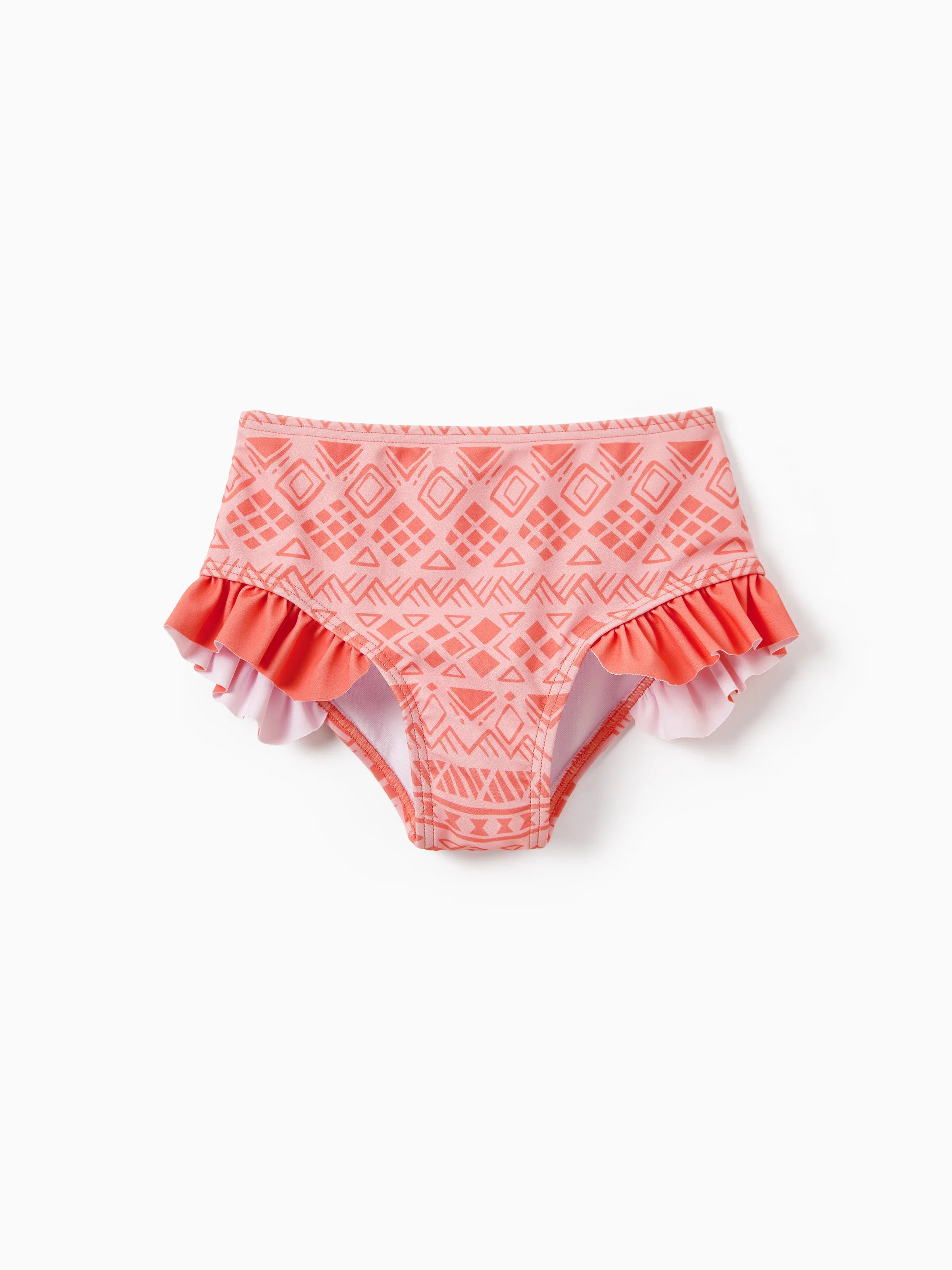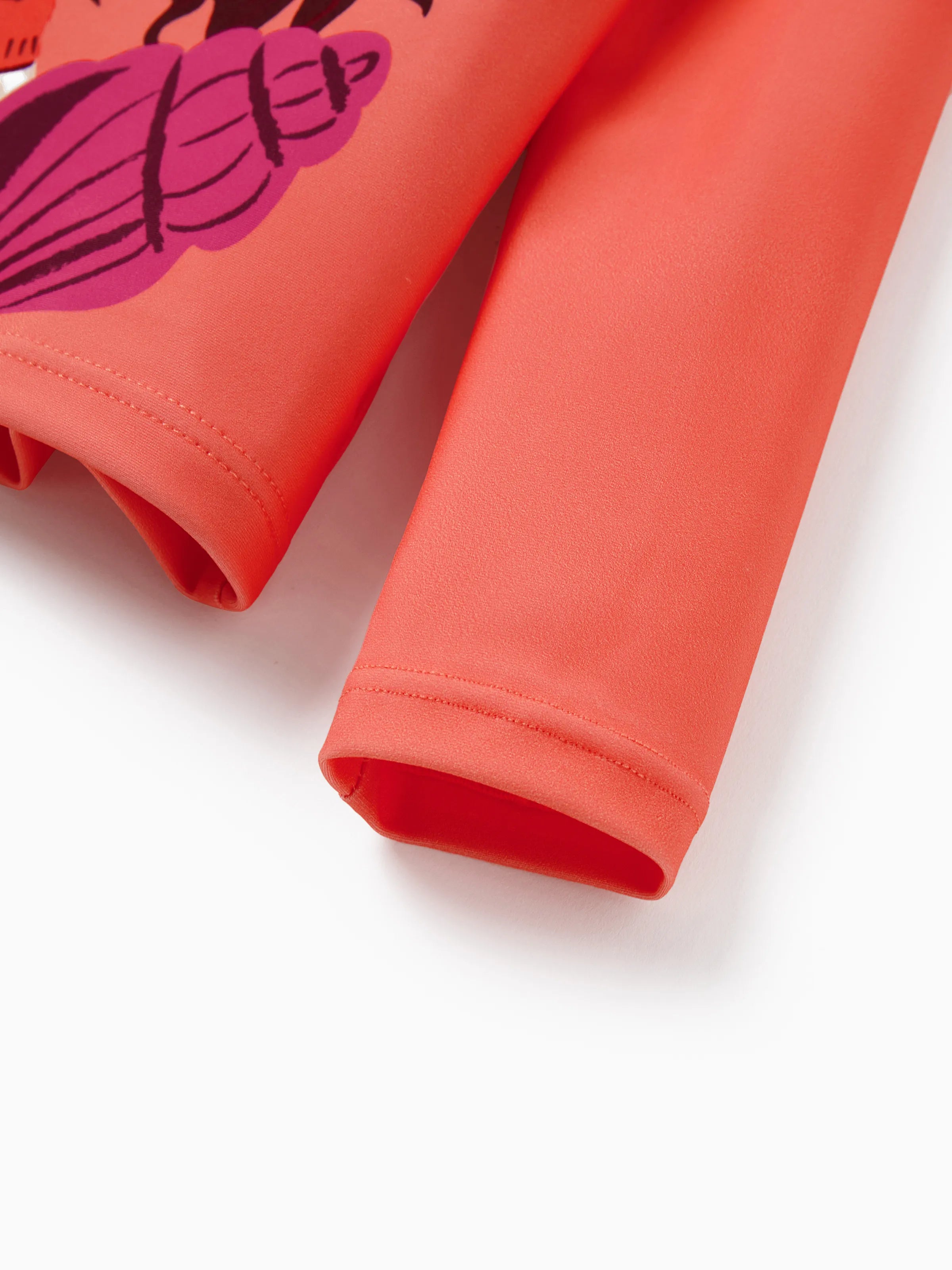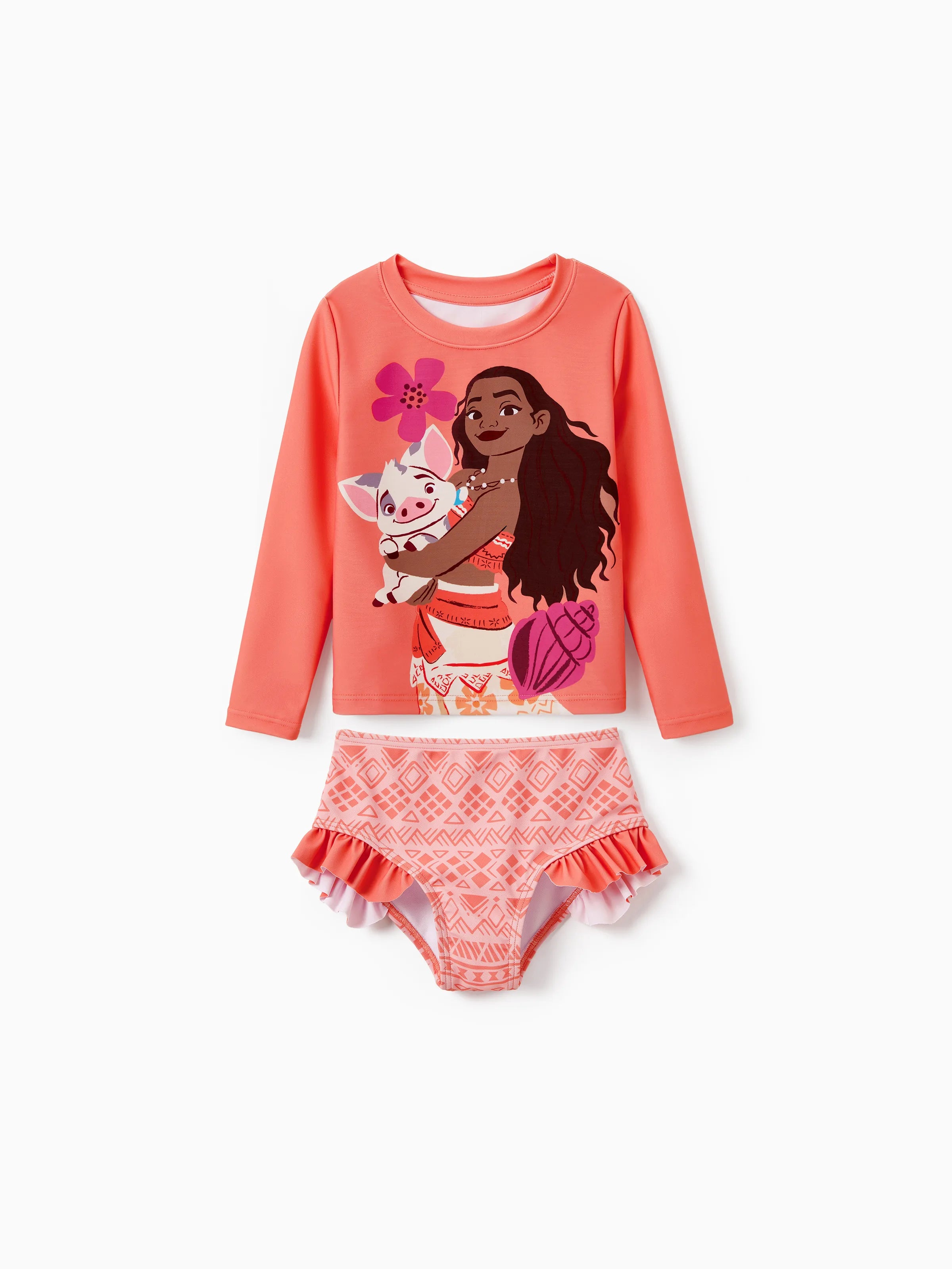 Disney Princess Toddler/Kid Girl 2pcs Moana Ruffled Long-sleeve Swimsuit Orange Red