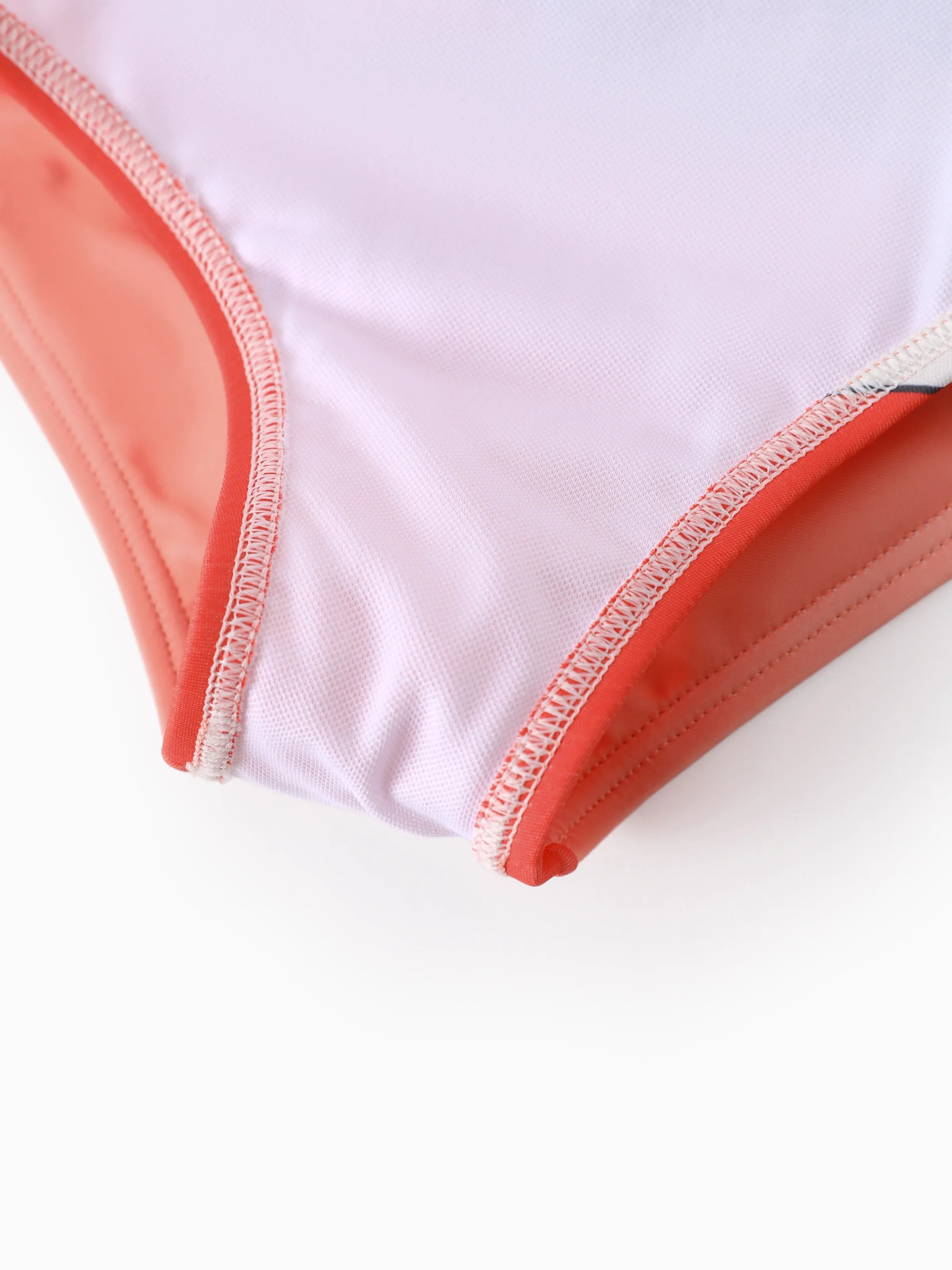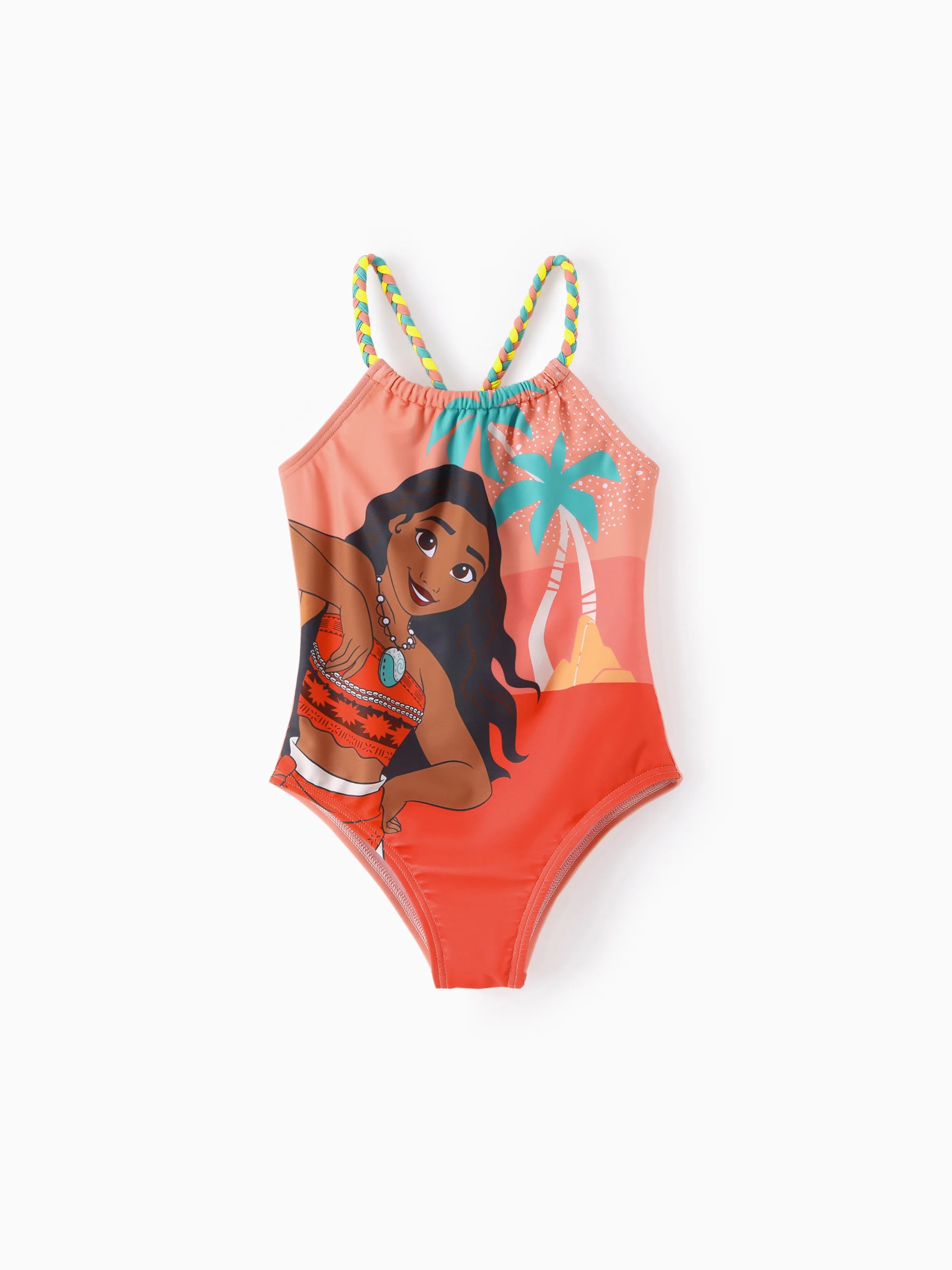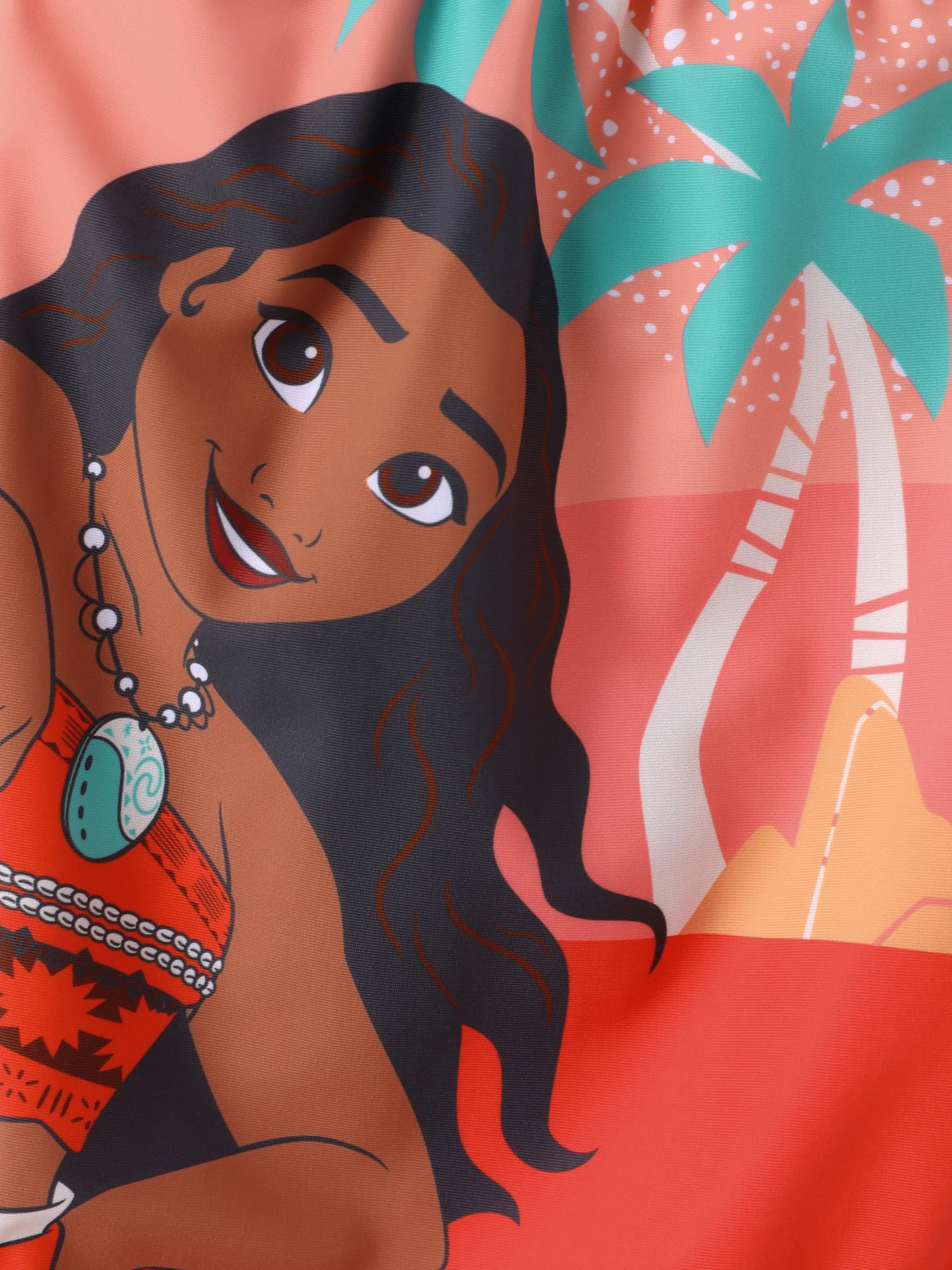 Disney Princess Toddler/Kid Girl Moana Big Pattern /Floral Allover Print Off-shoulder Swimsuit Coral Coral