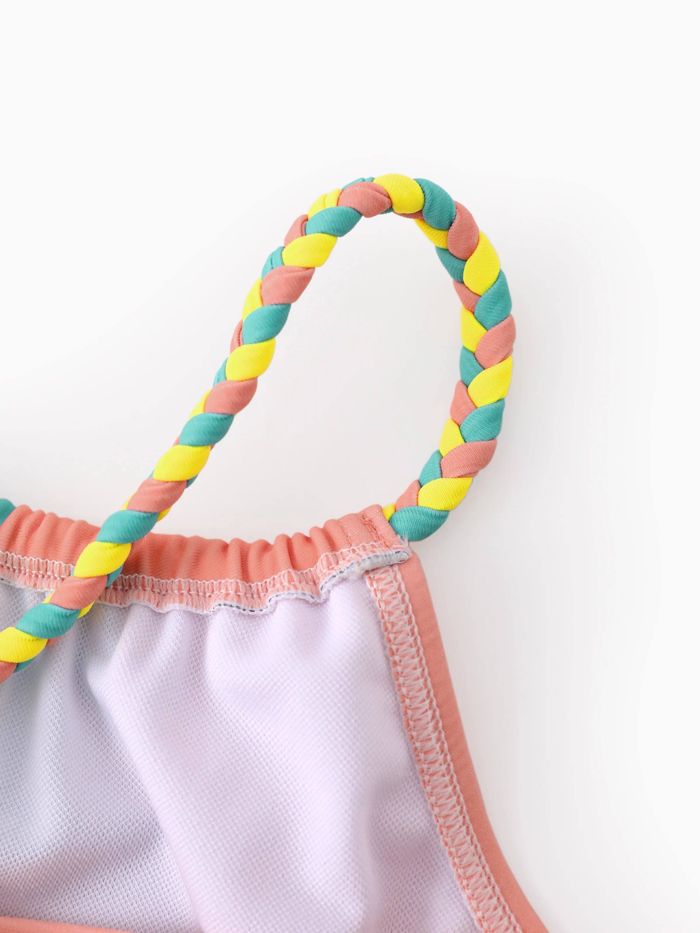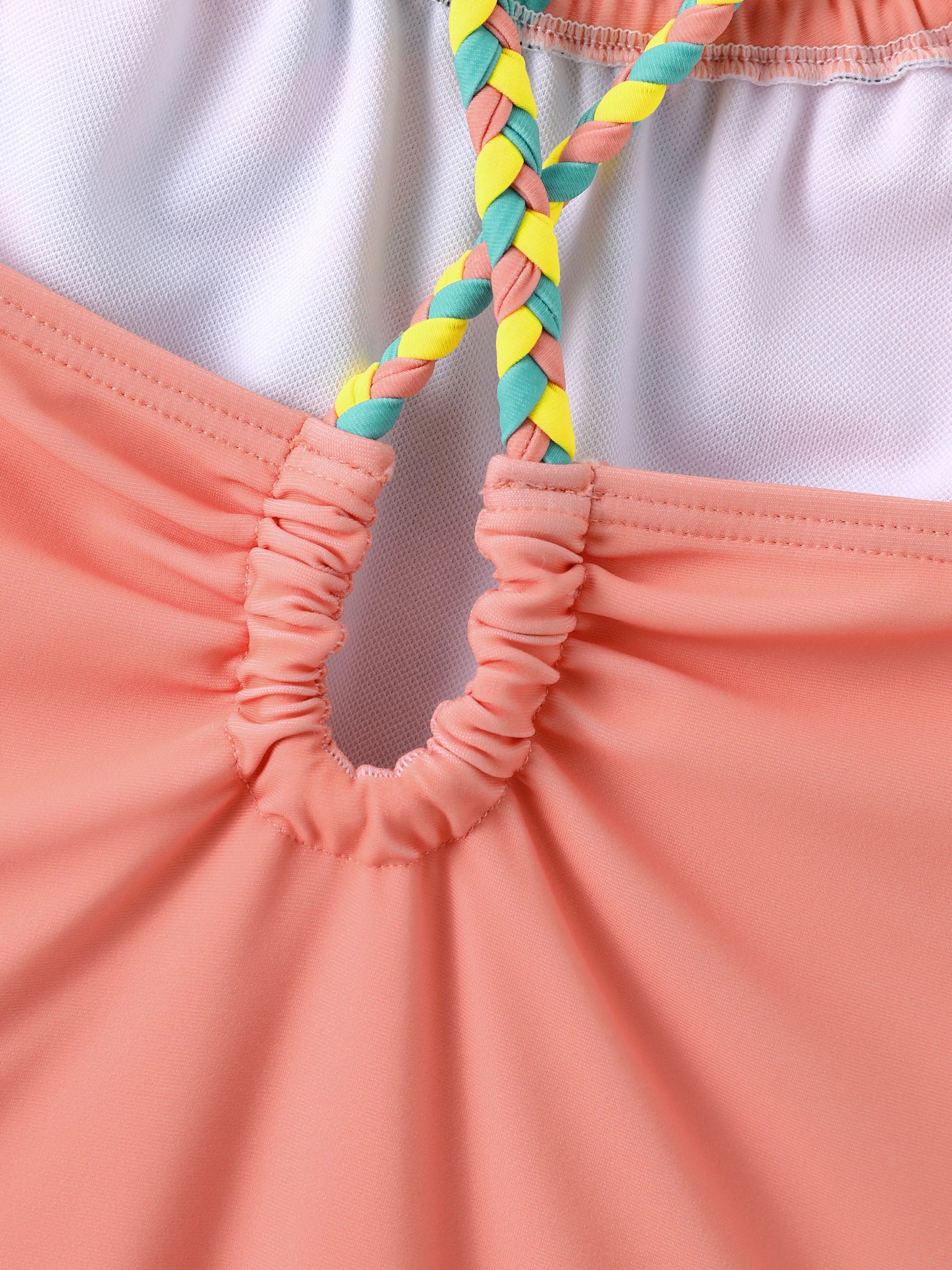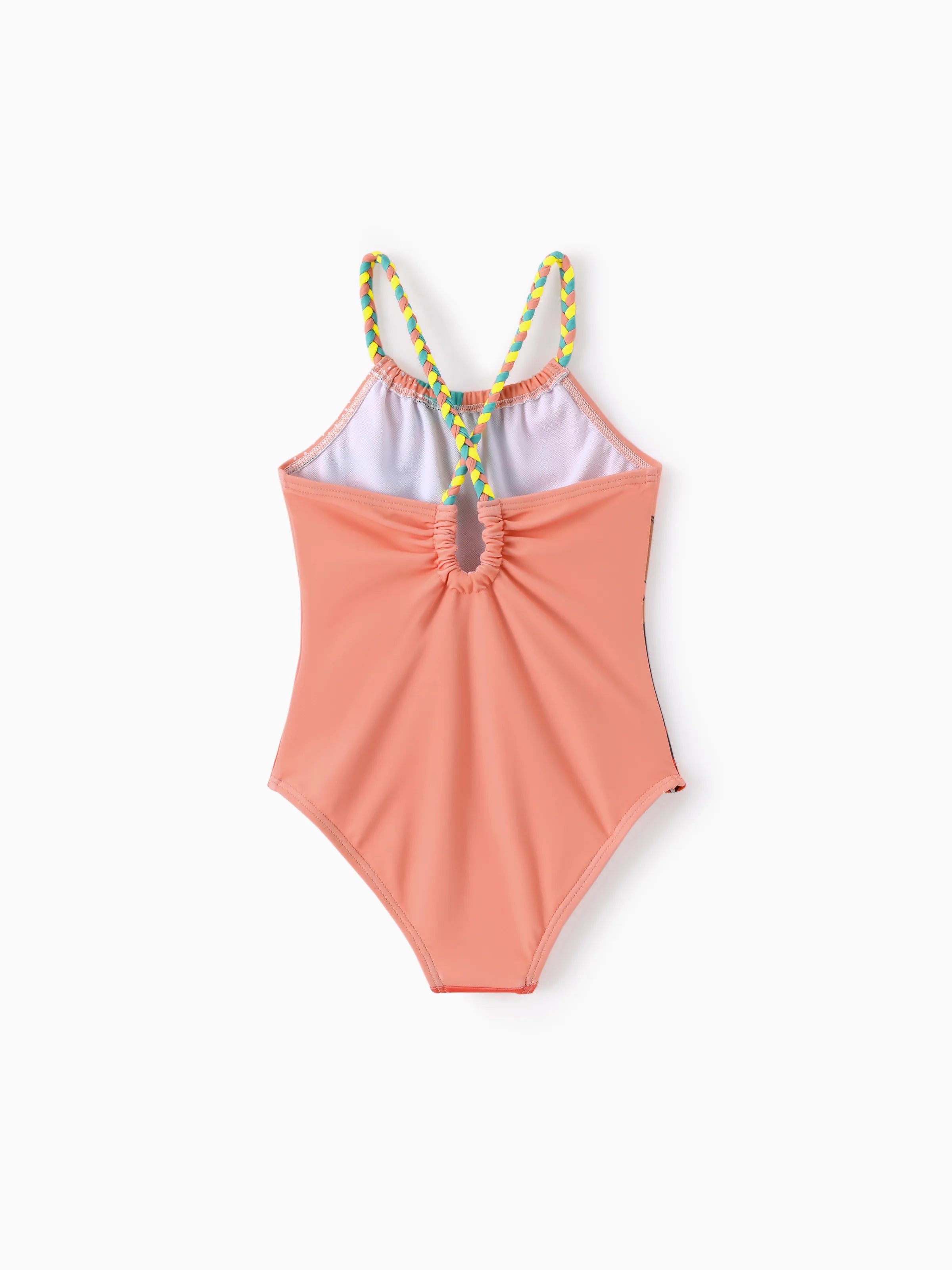 Disney Princess Toddler/Kid Girl Moana Big Pattern /Floral Allover Print Off-shoulder Swimsuit Coral Coral