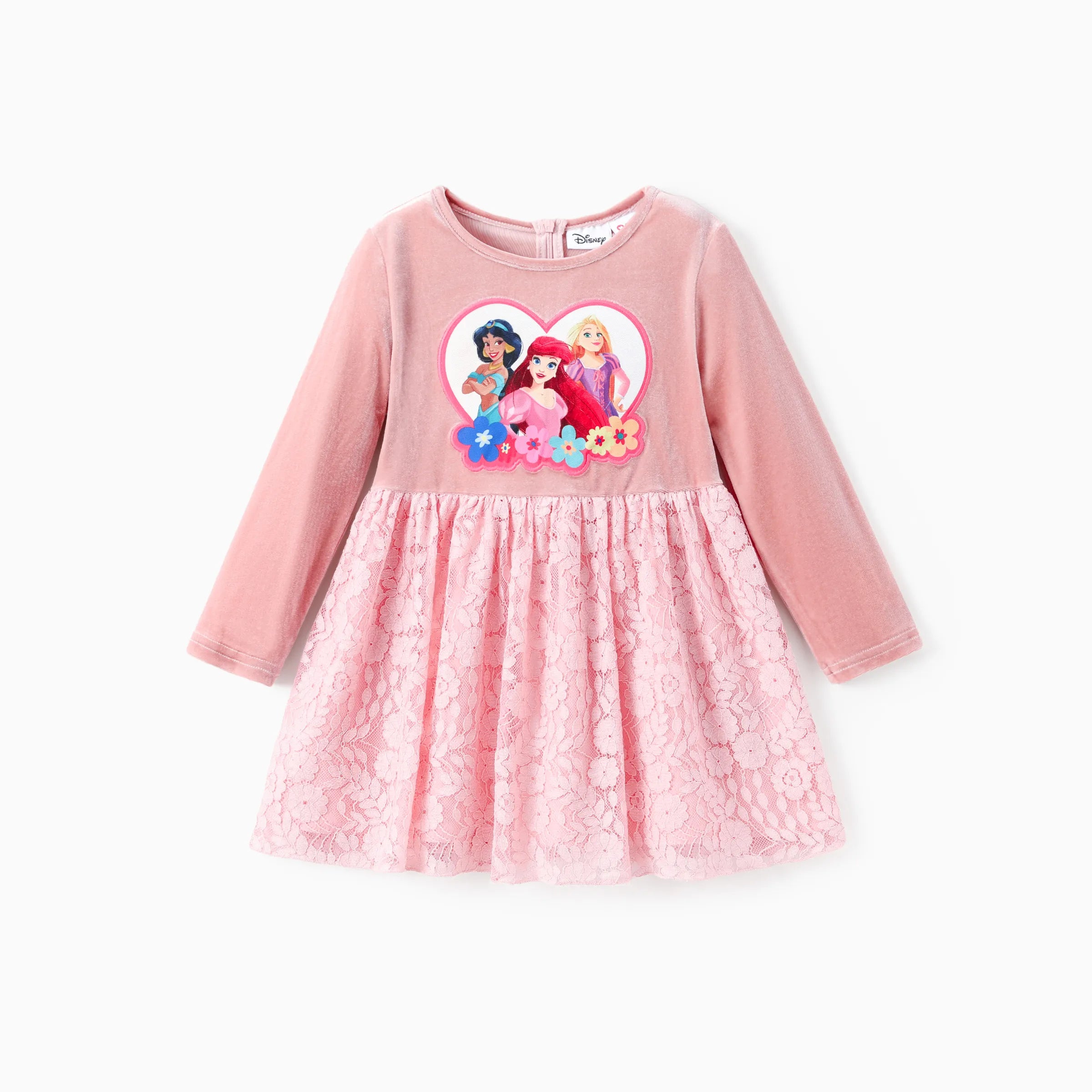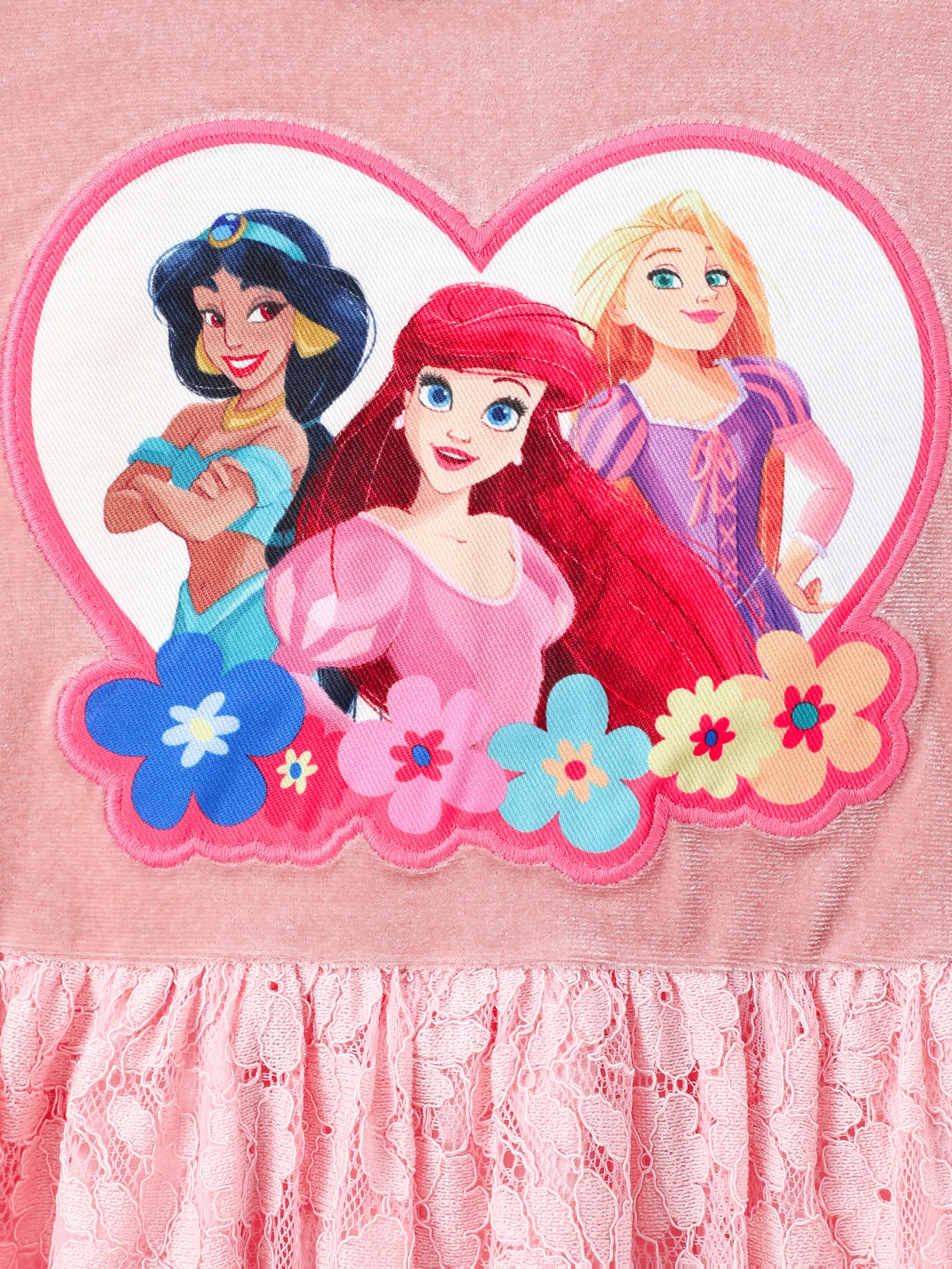 Robe en tulle fleurie en velours brodée rose pour petite fille Princesse Disney Ariel/Jasmine/Raiponce