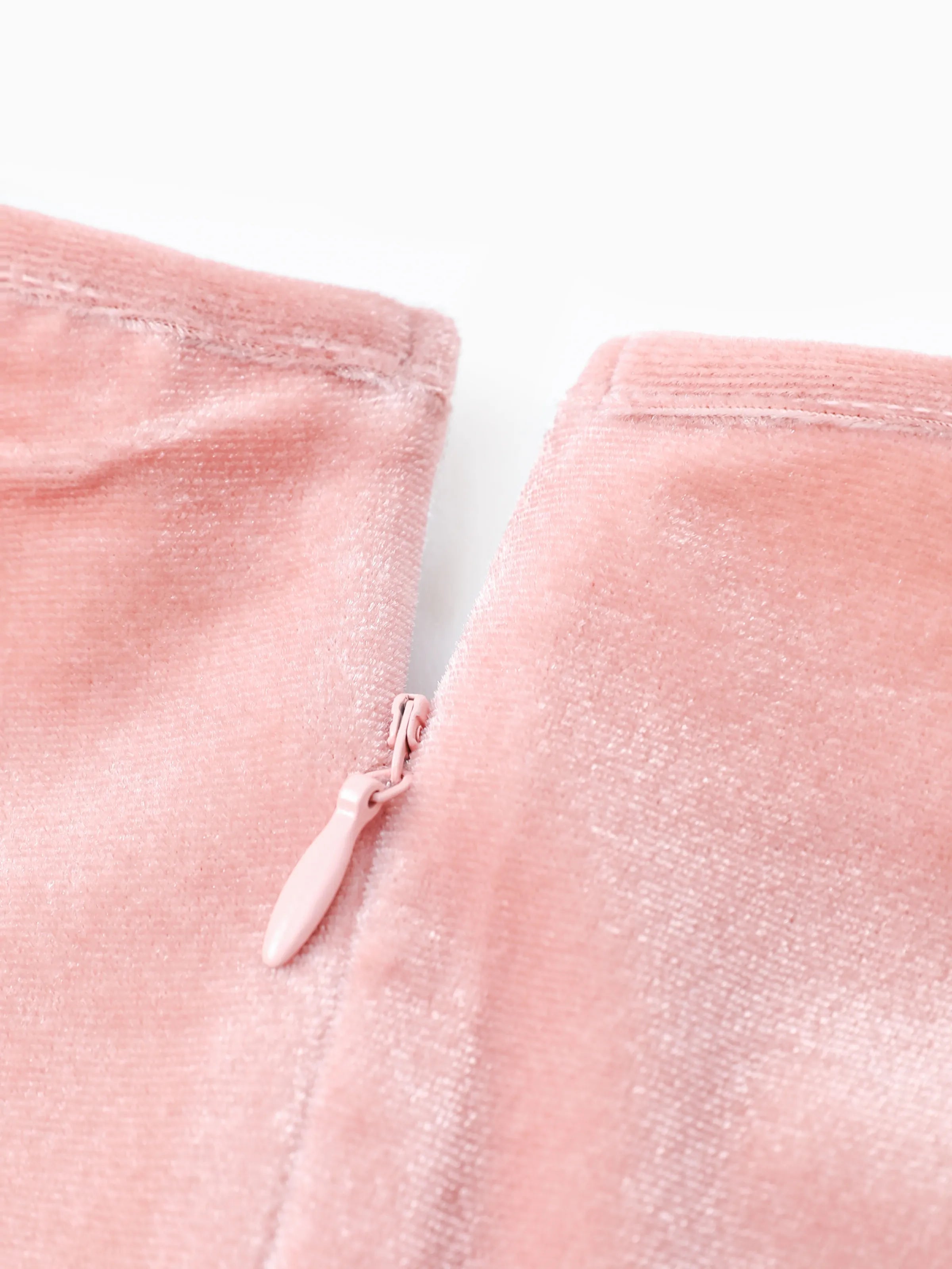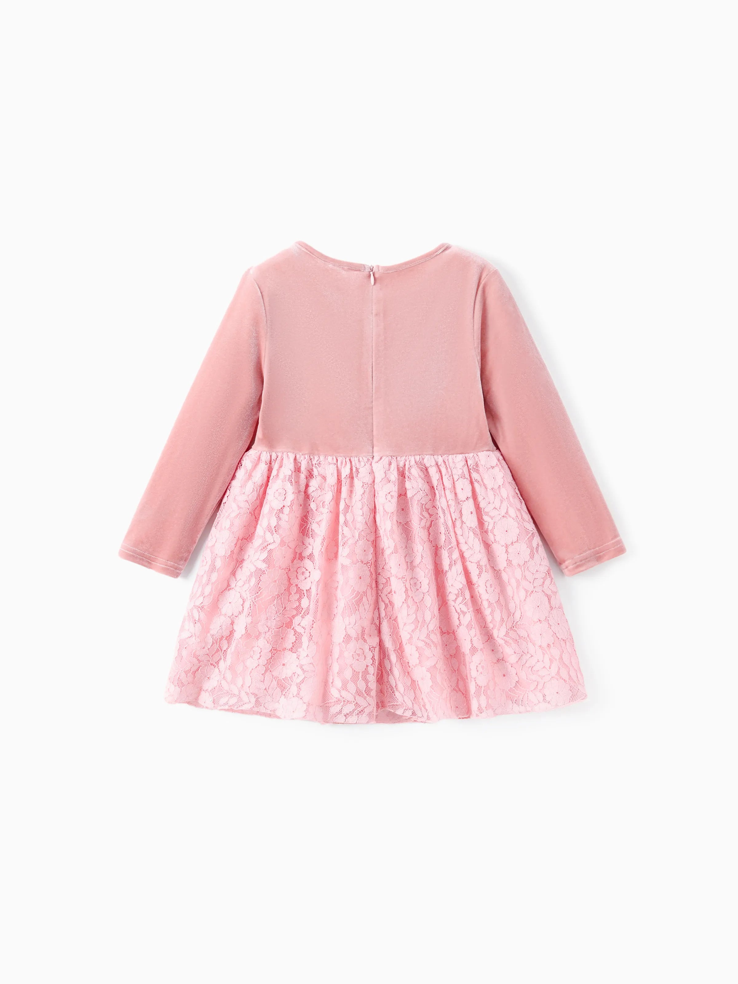 À la mode et douce, cette robe en velours et dentelle est un incontournable pour votre tout-petit.