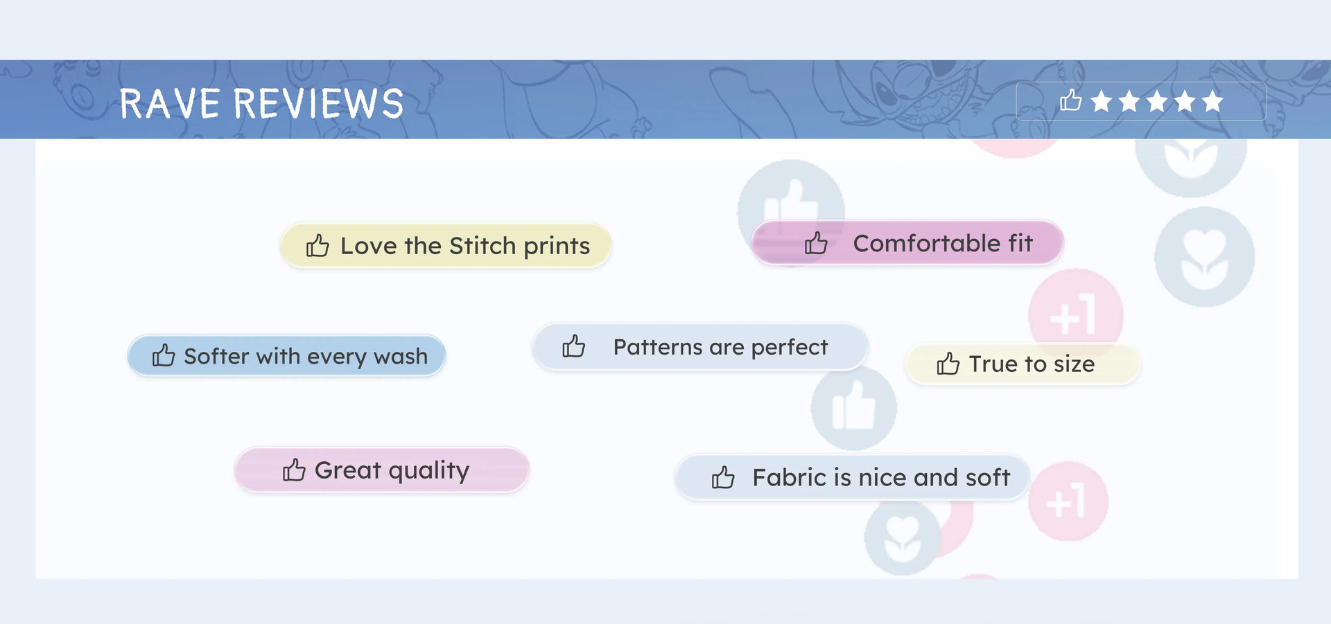 • Style : Motif amusant de Stitch avec des imprimés floraux et végétaux.