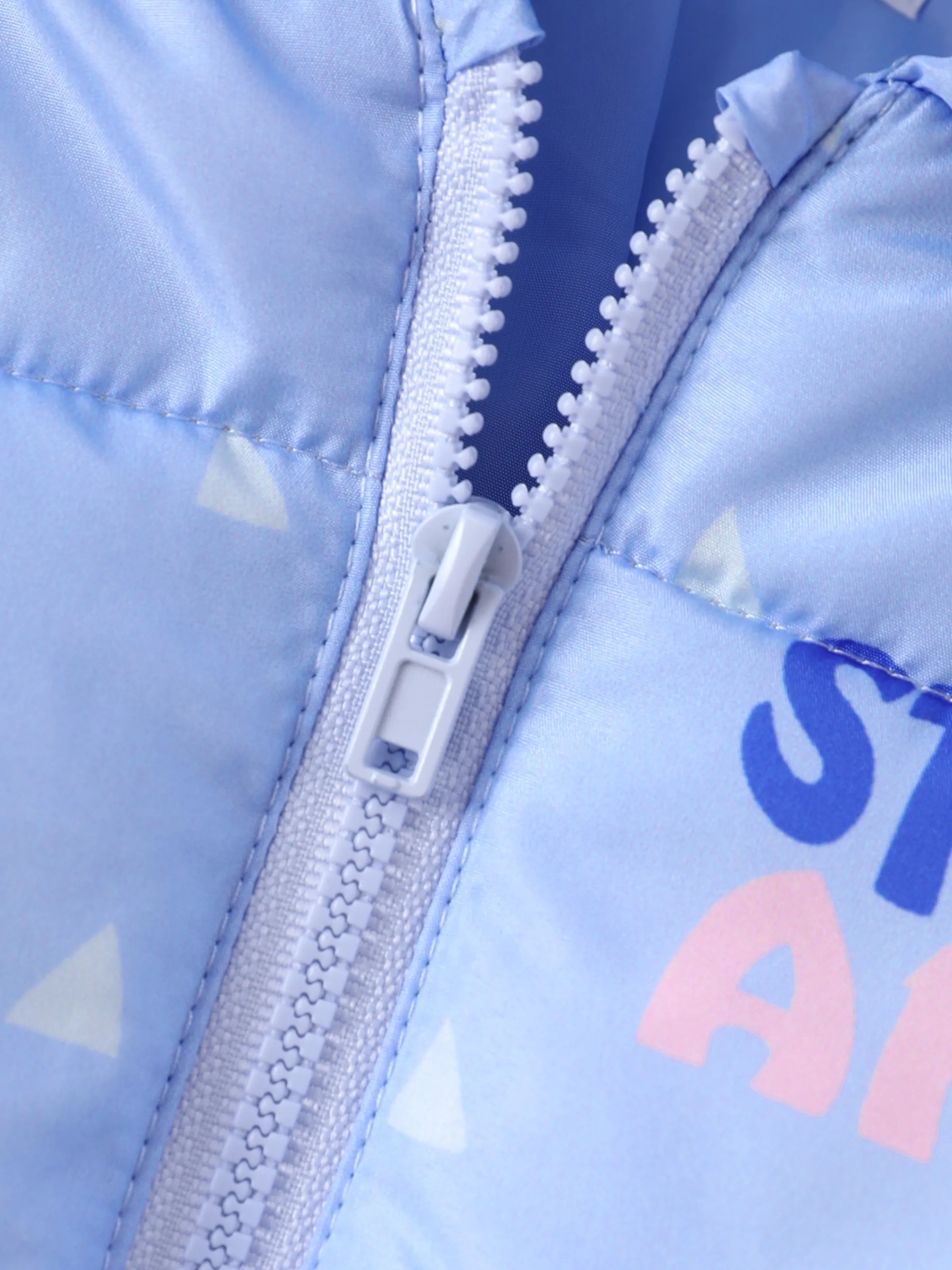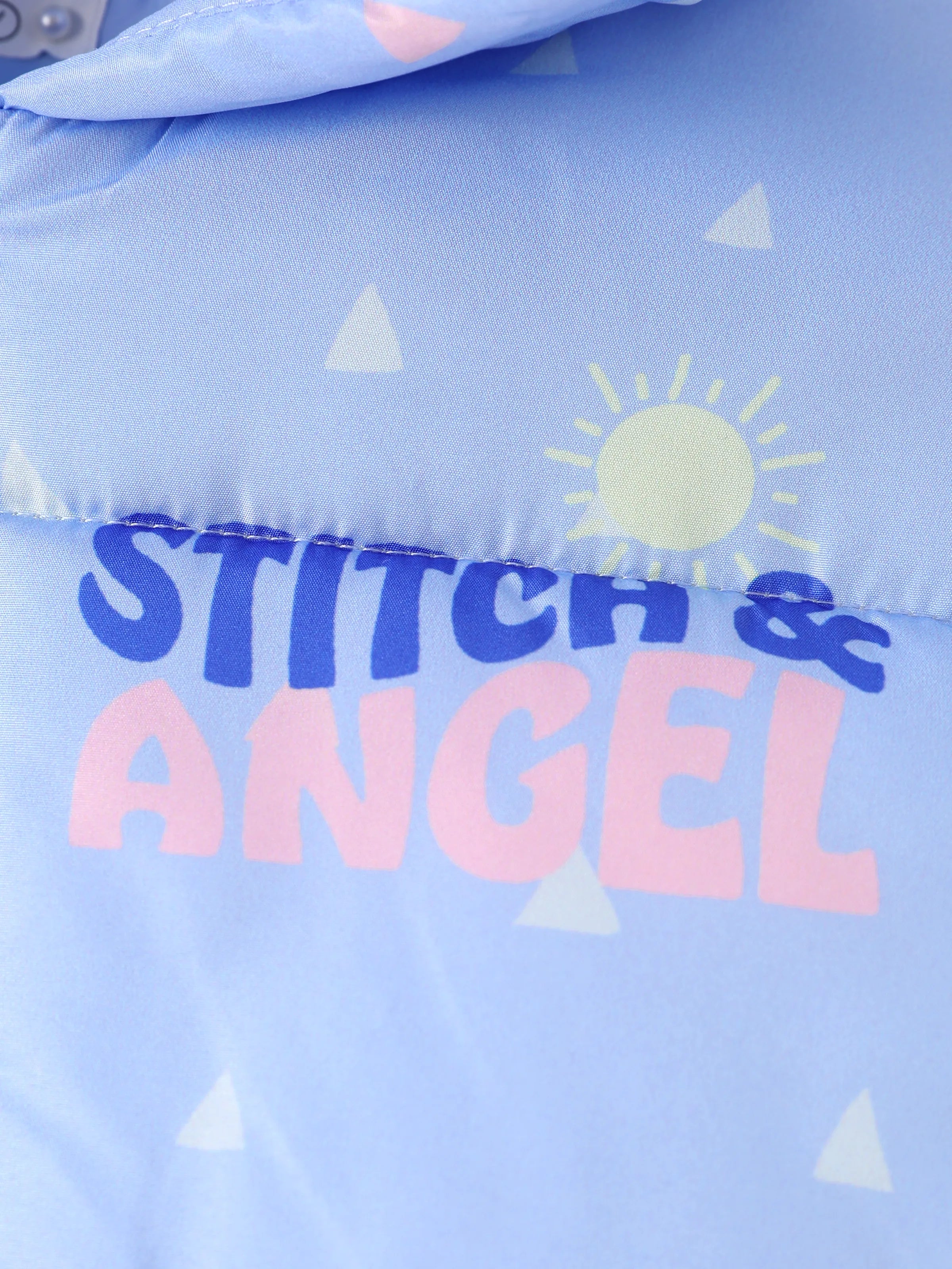 Doudoune à capuche en polyester à motif géométrique Disney Stitch pour petite fille (bleue)