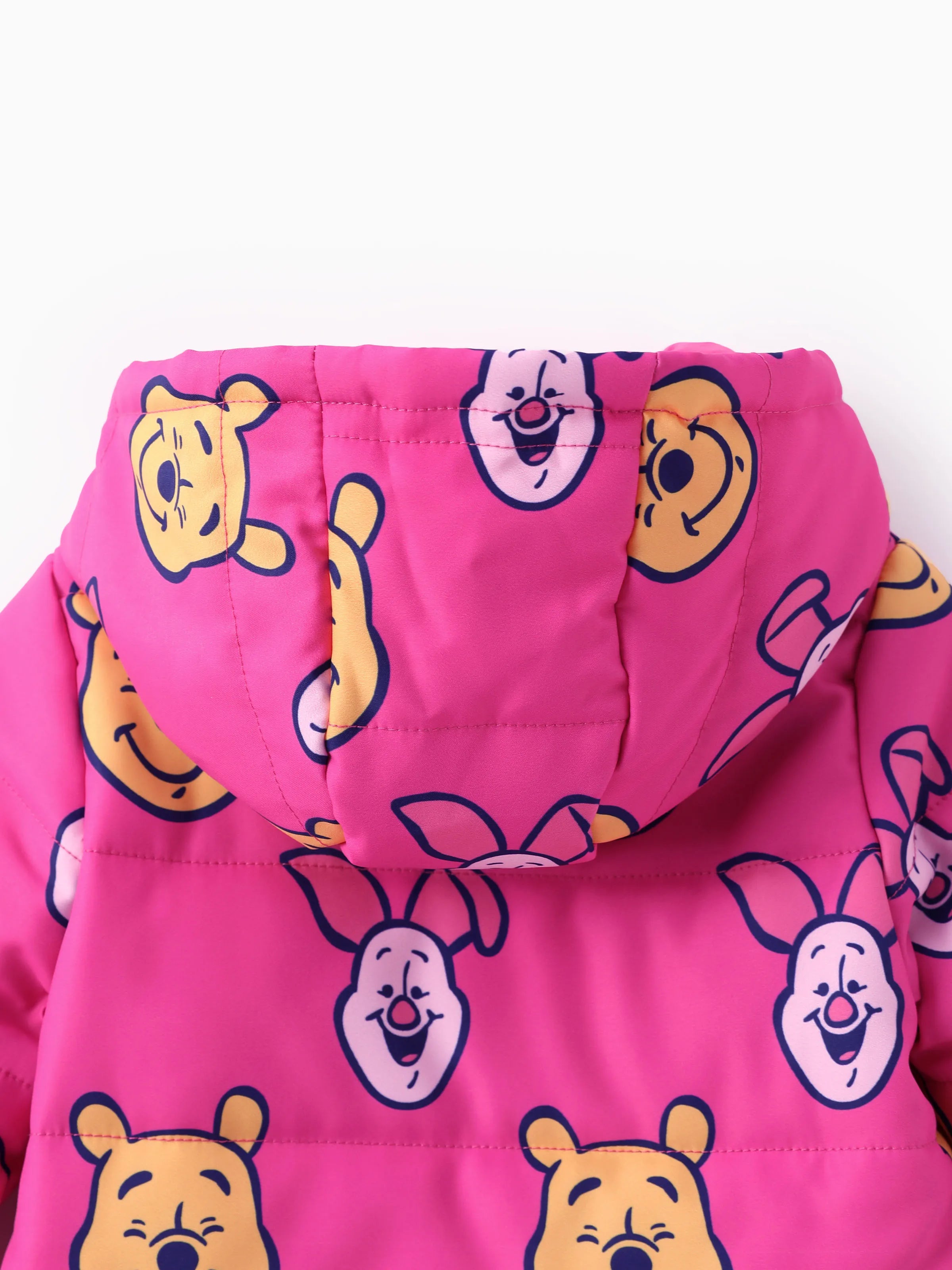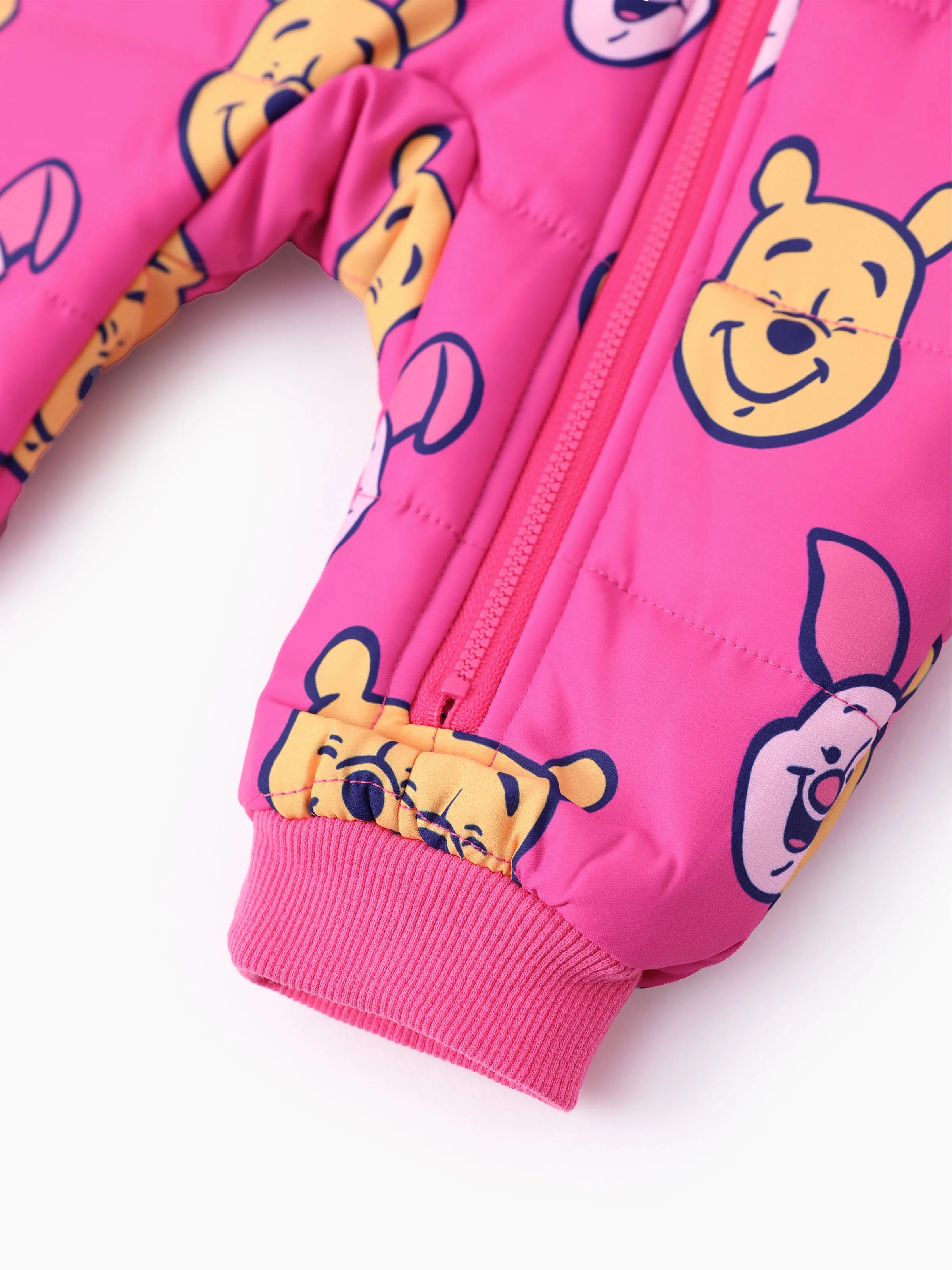 Combinaison épaisse à capuche et manches longues pour bébé fille Disney Winnie l'ourson, imprimé intégral, fermeture éclair, Roseo