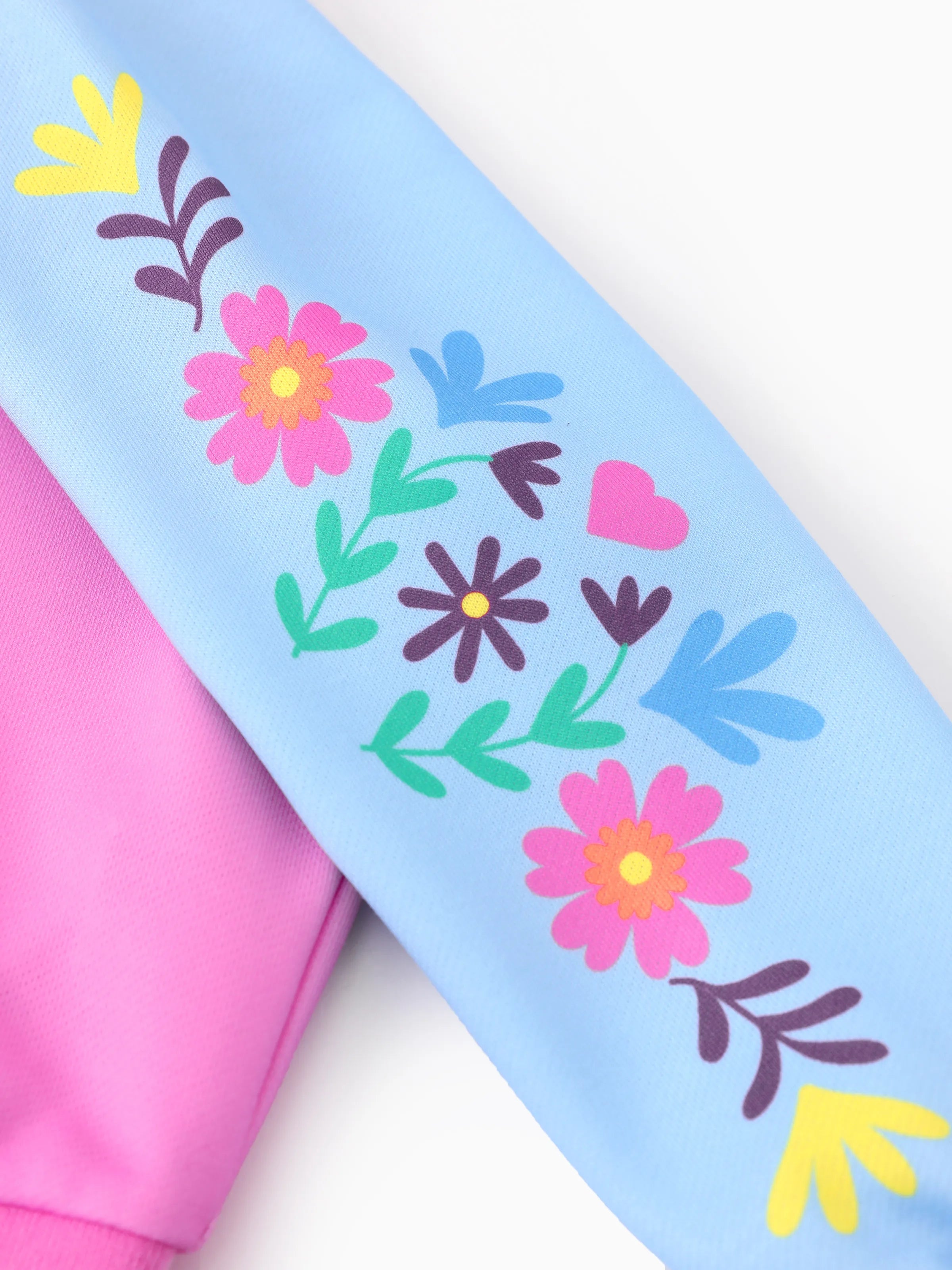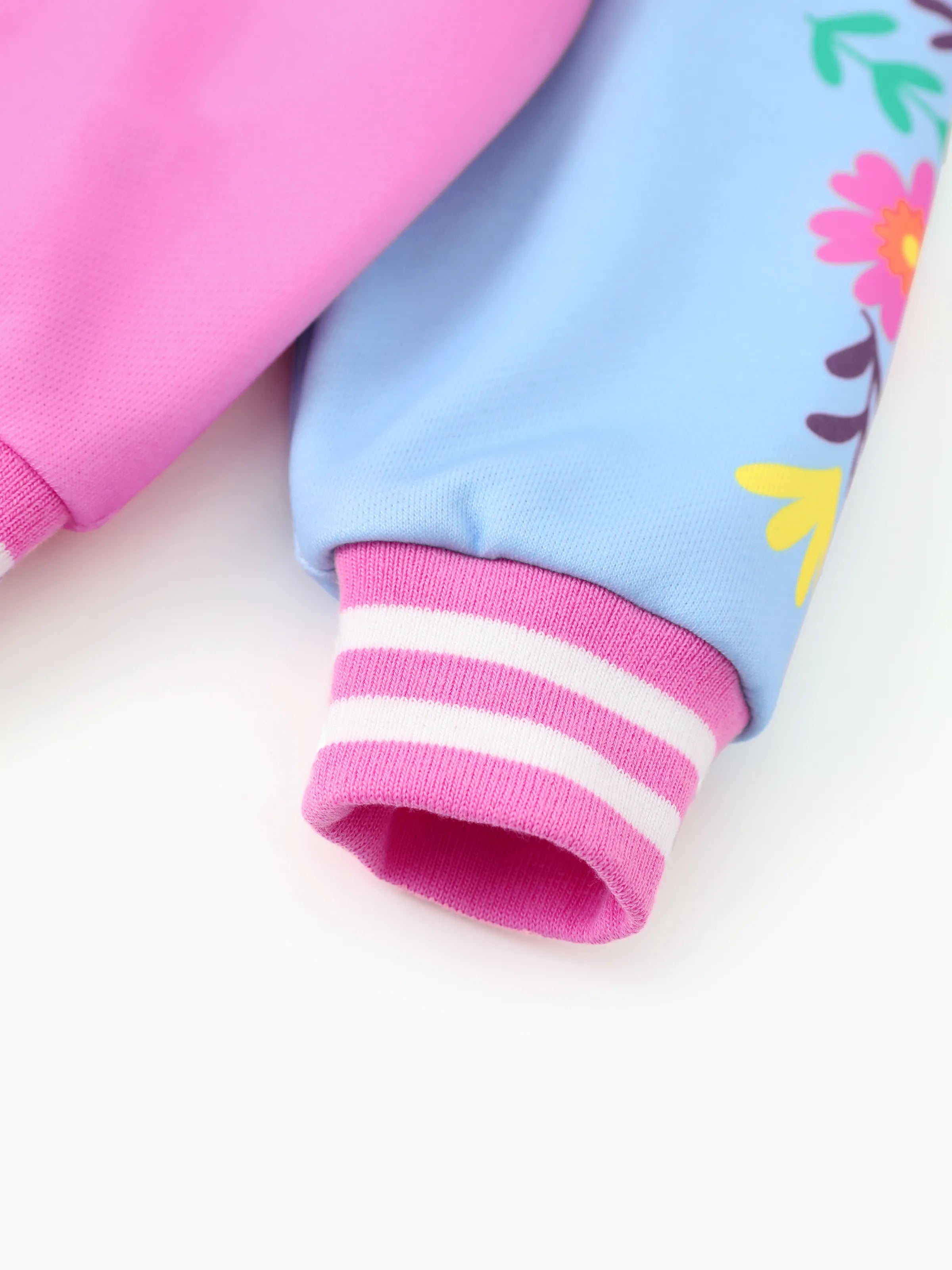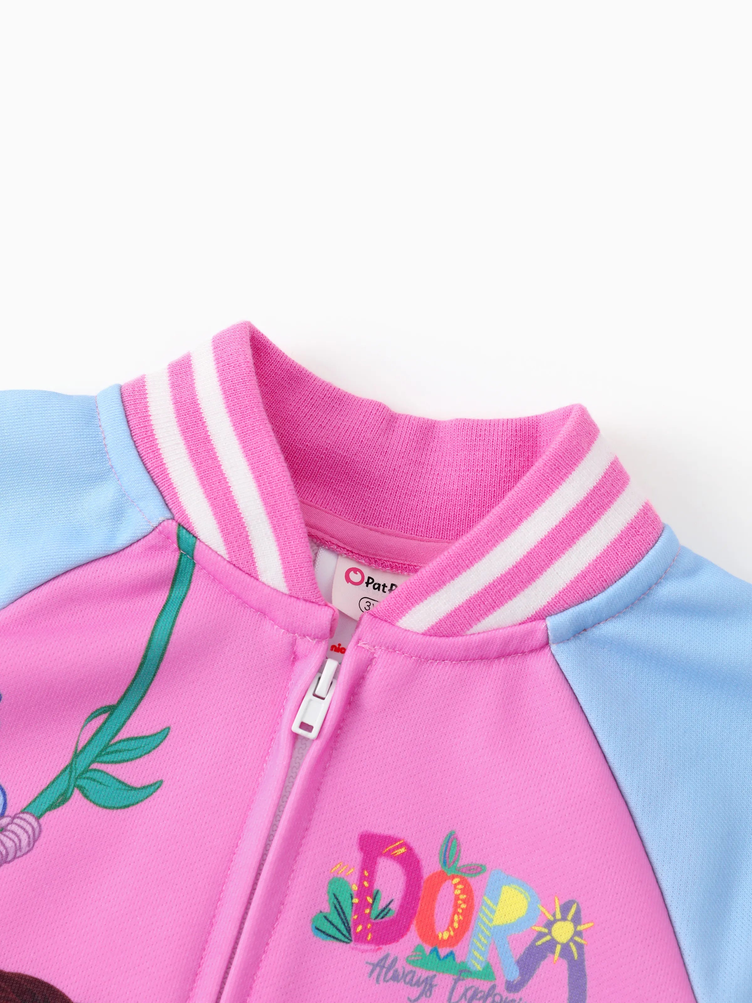 Dora Toddler Girl Knitted Fabric Colorblock Bomber Jacket Hot Pink