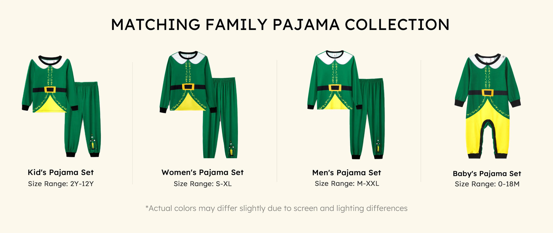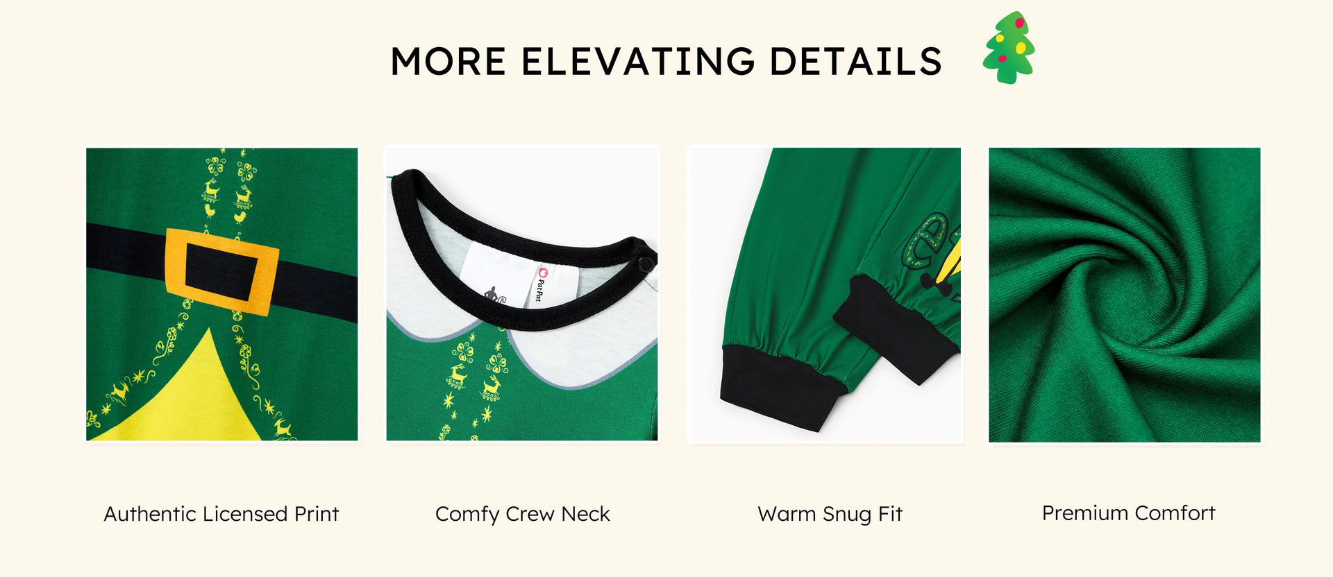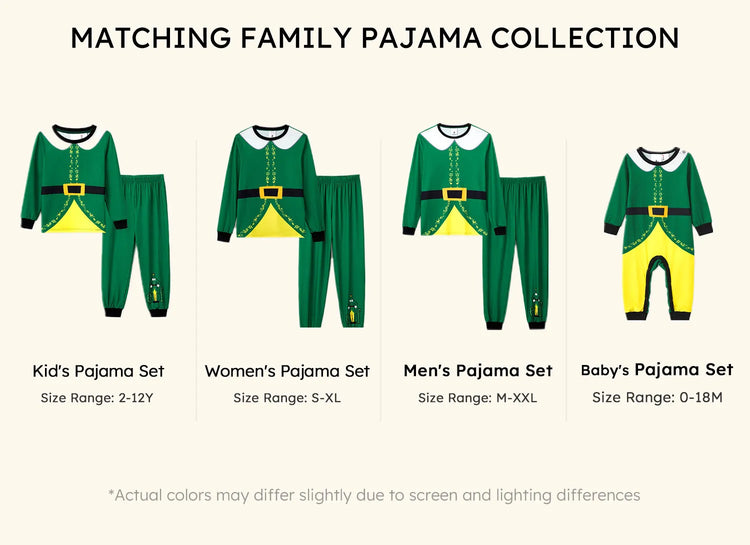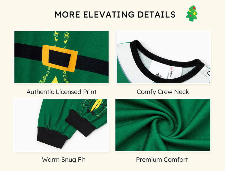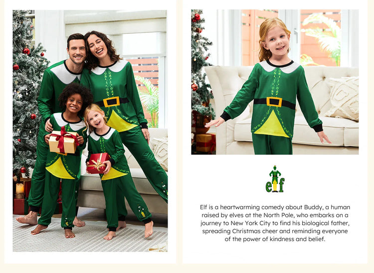 Ensemble pyjama de Noël familial ELF avec ceinture et col assortis et chaussettes de Noël