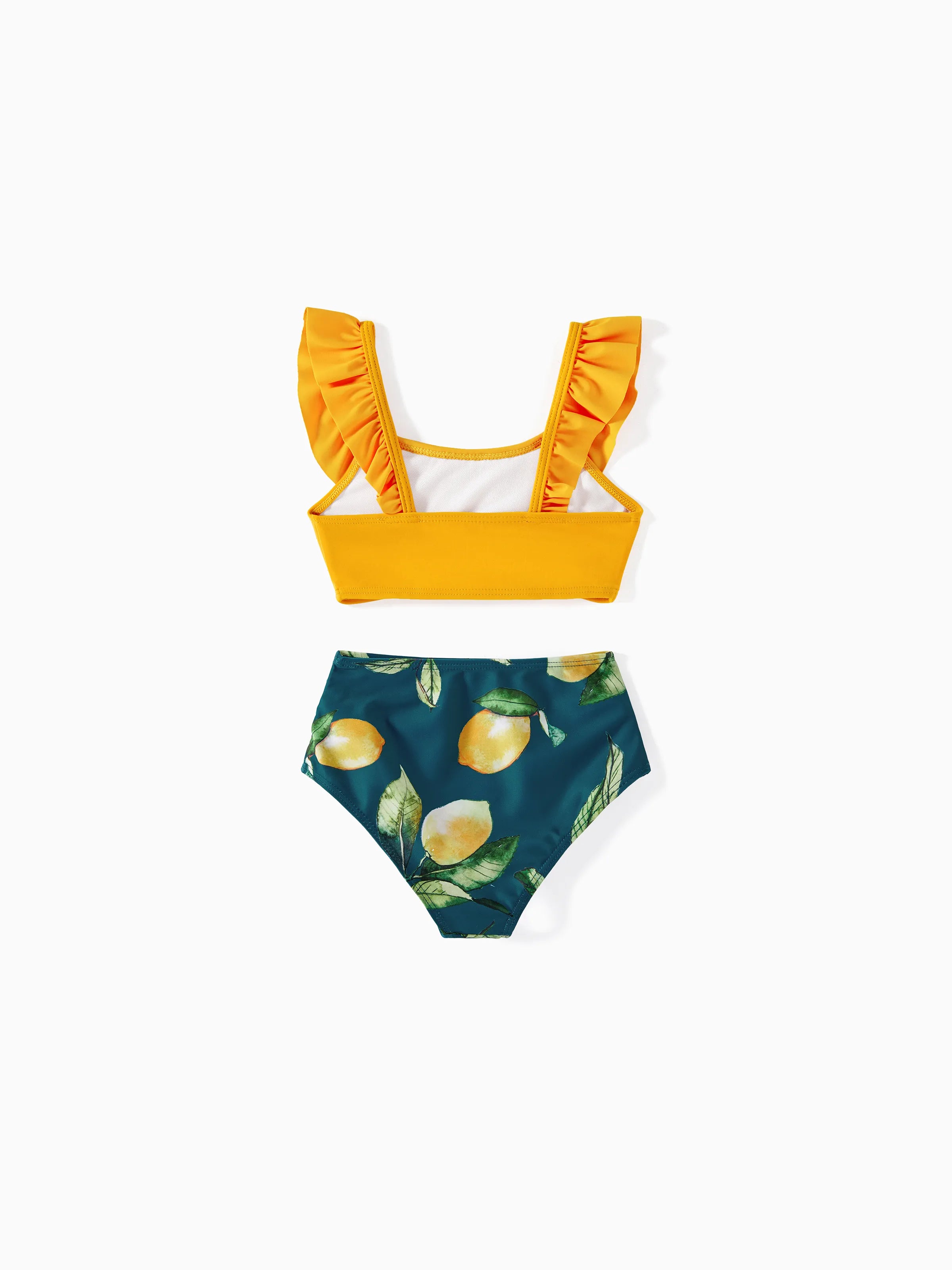 Maillot de bain deux pièces ou short de bain assorti à imprimé citron et col licou uni multicolore