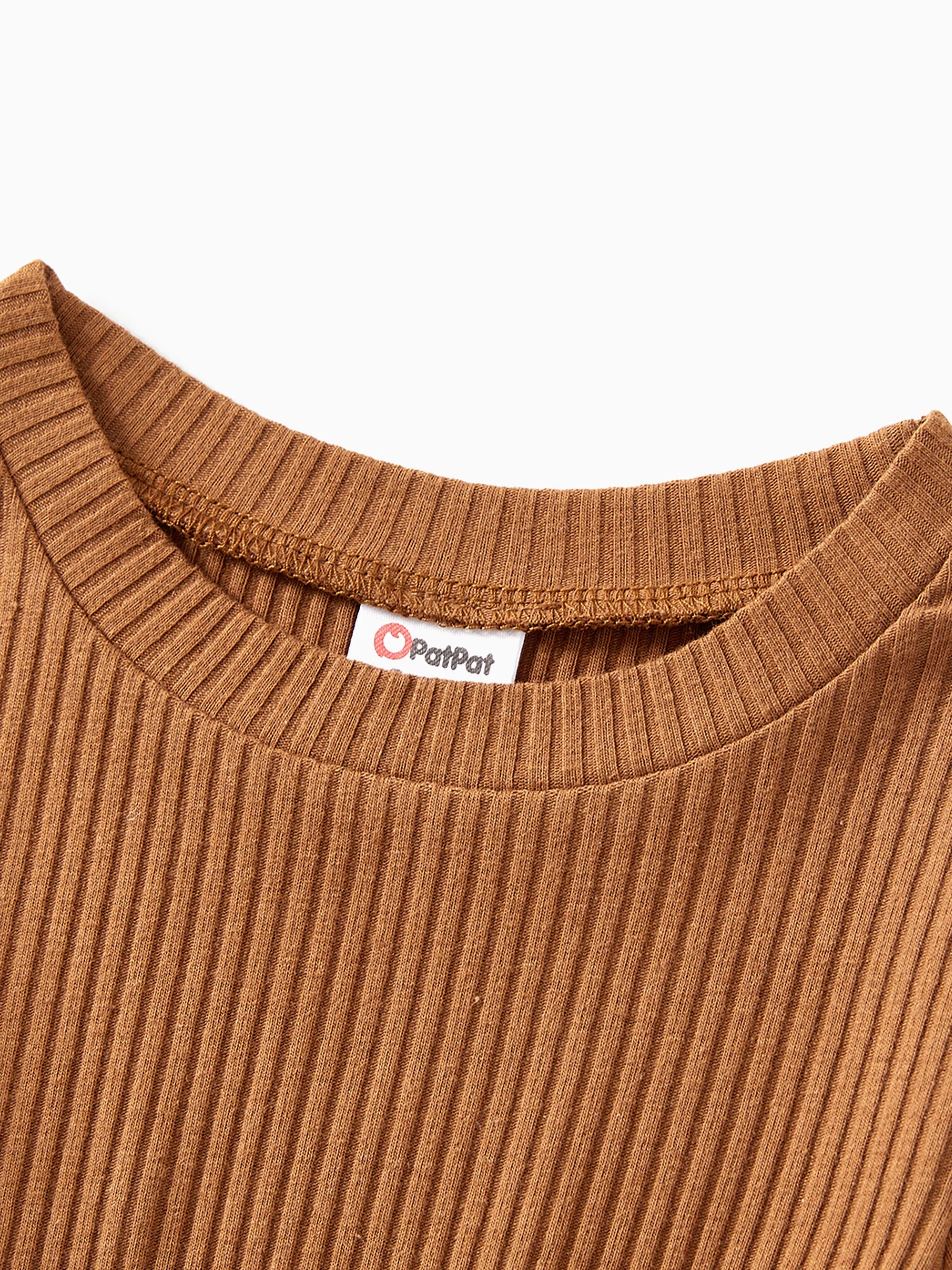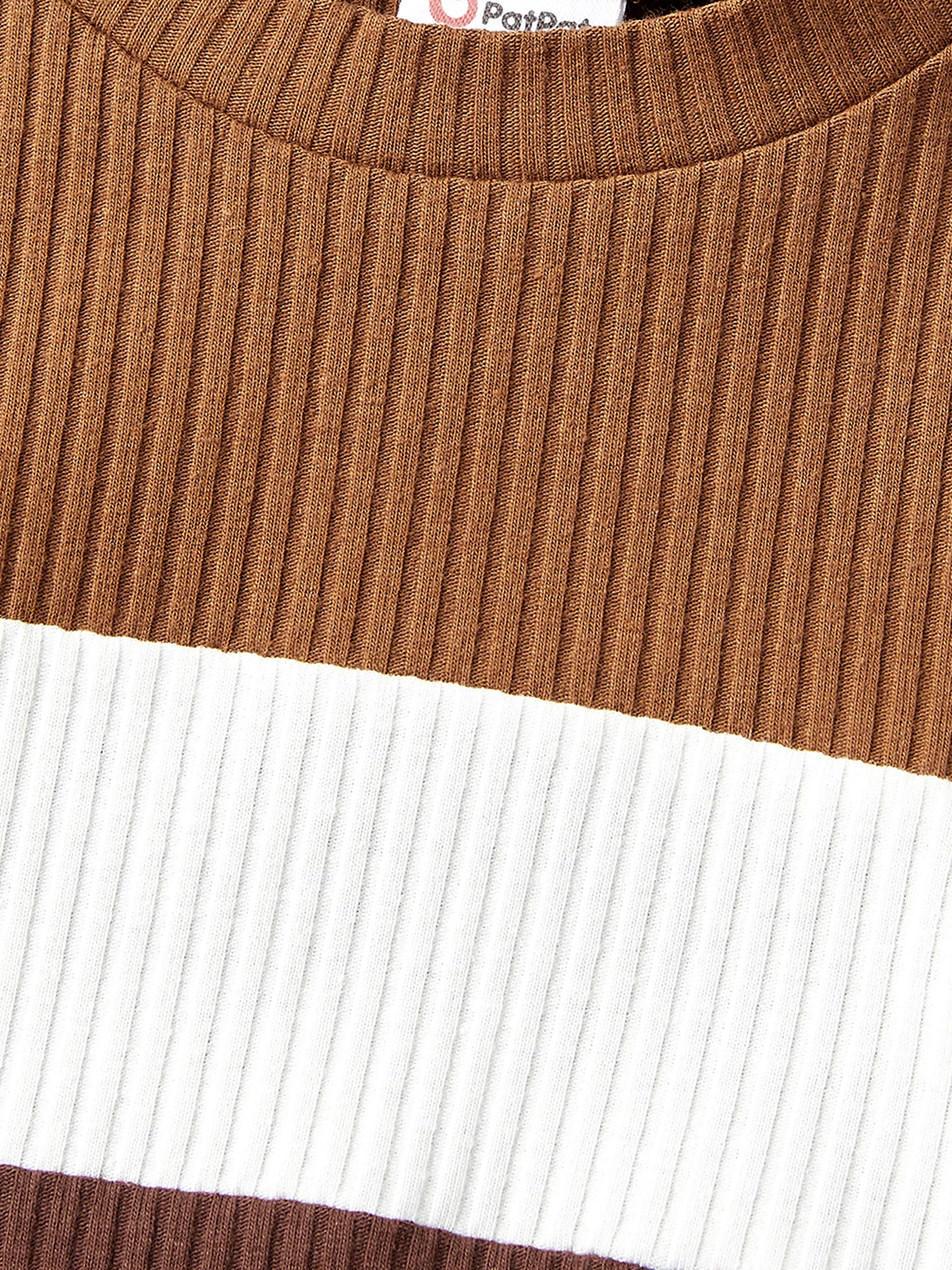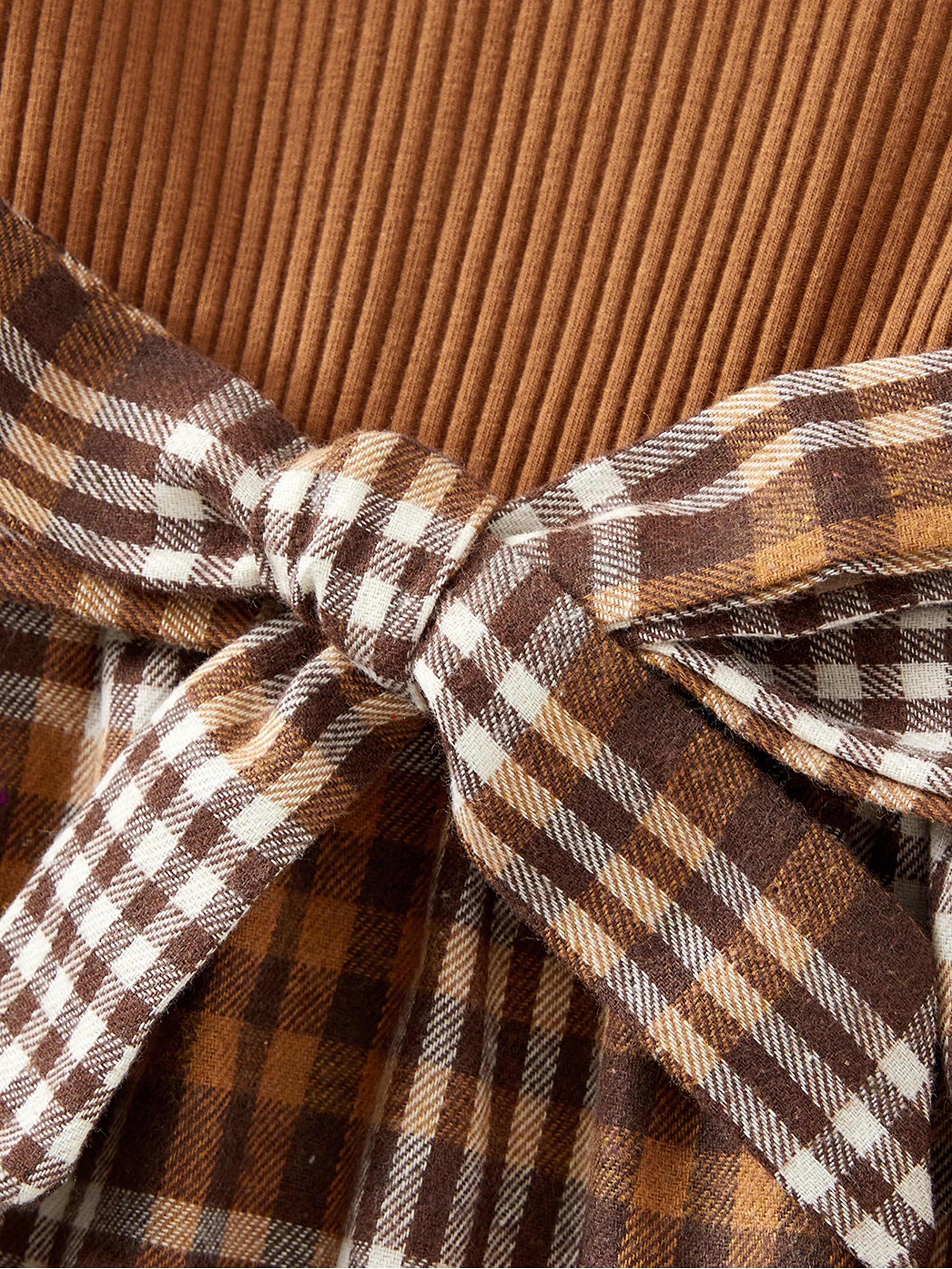 Ensemble familial assorti : robes à carreaux côtelés avec ceinture et hauts à manches longues colorblock couleur café