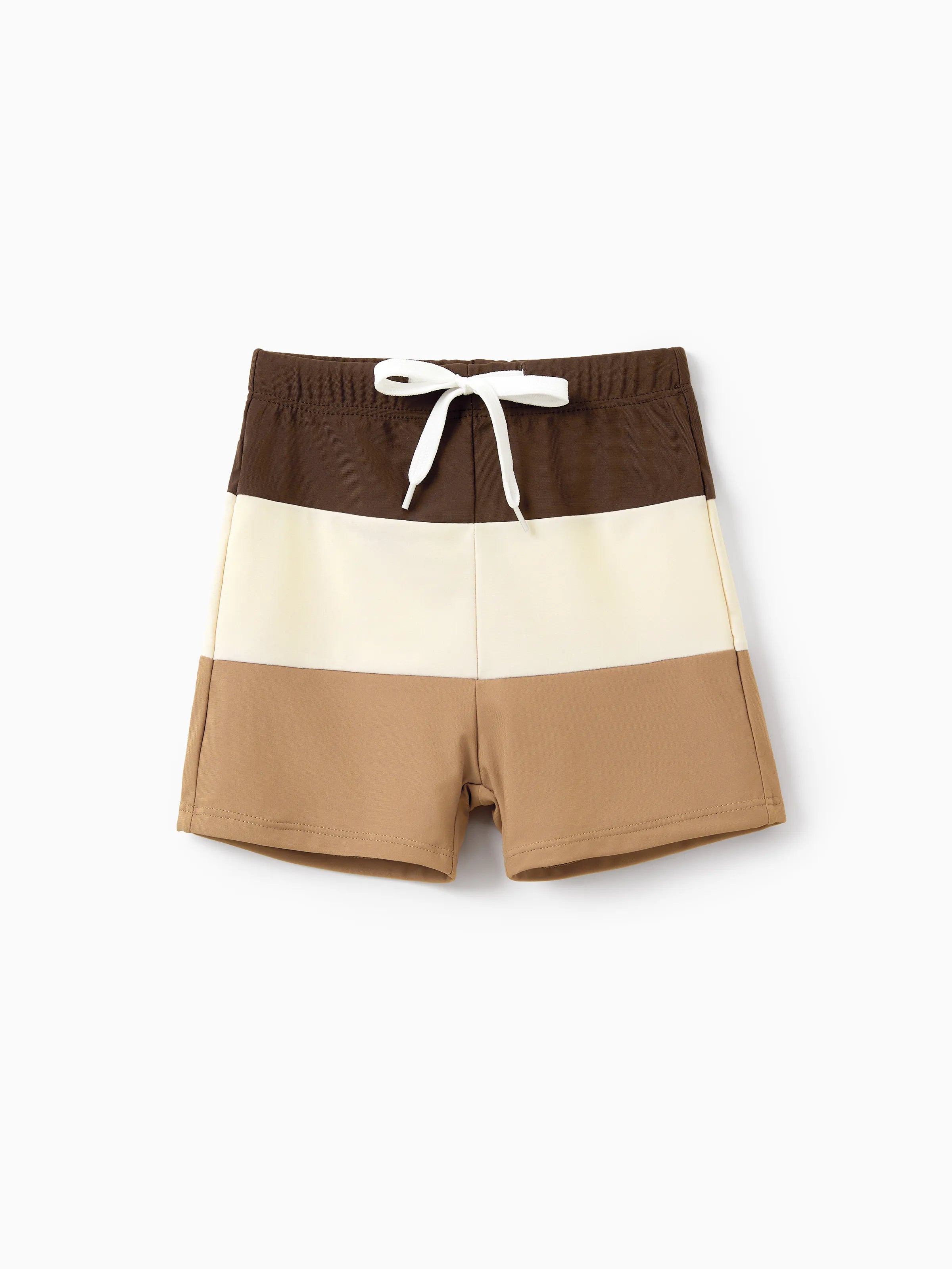 Family Matching Color Block Swimsuits, Mommy and Me One-Shoulder Cutout Bikini Set, Daddy and Son Color Block Swim Trunks, Summer Beach Vacation Swimwear Coffee