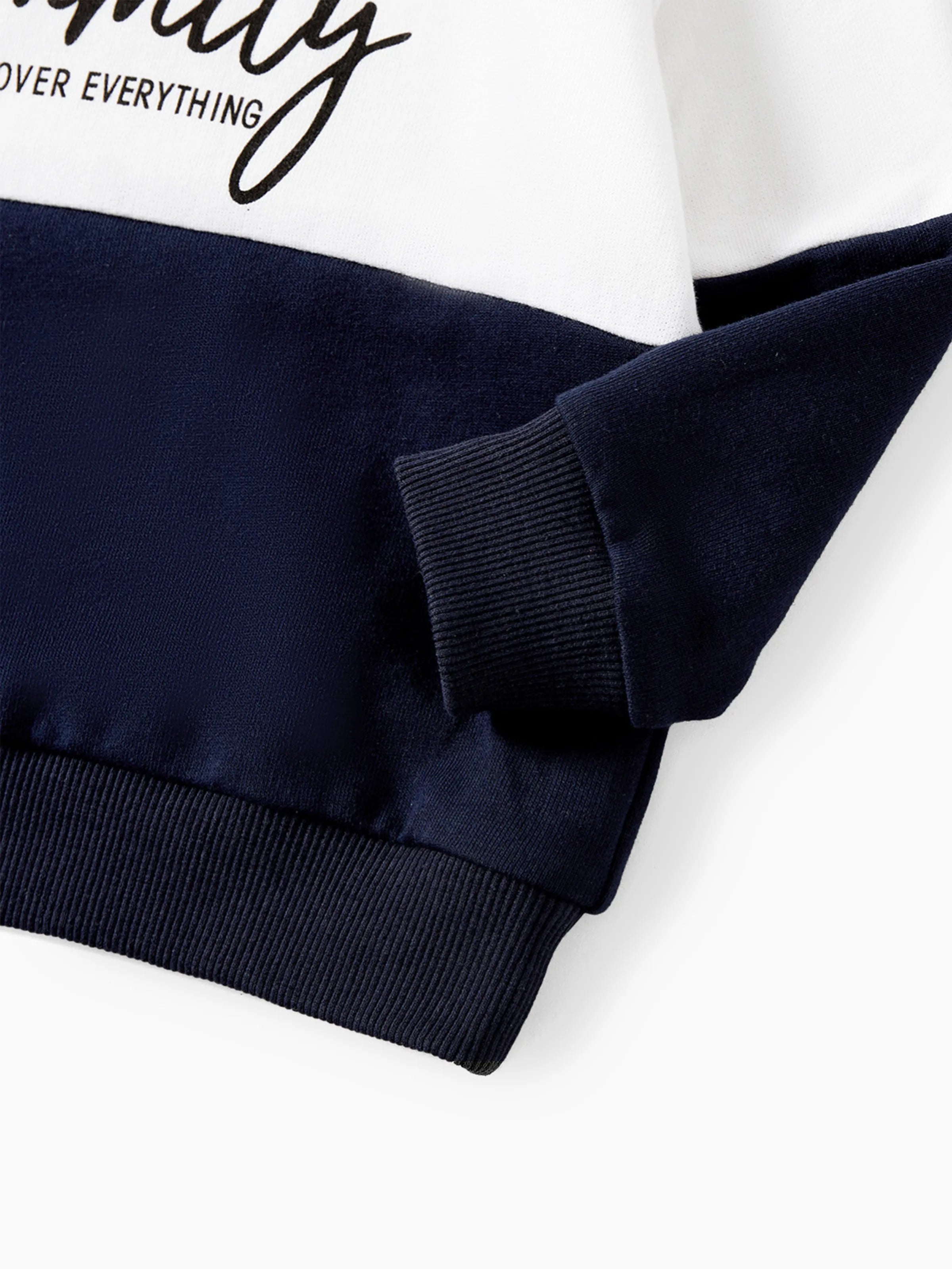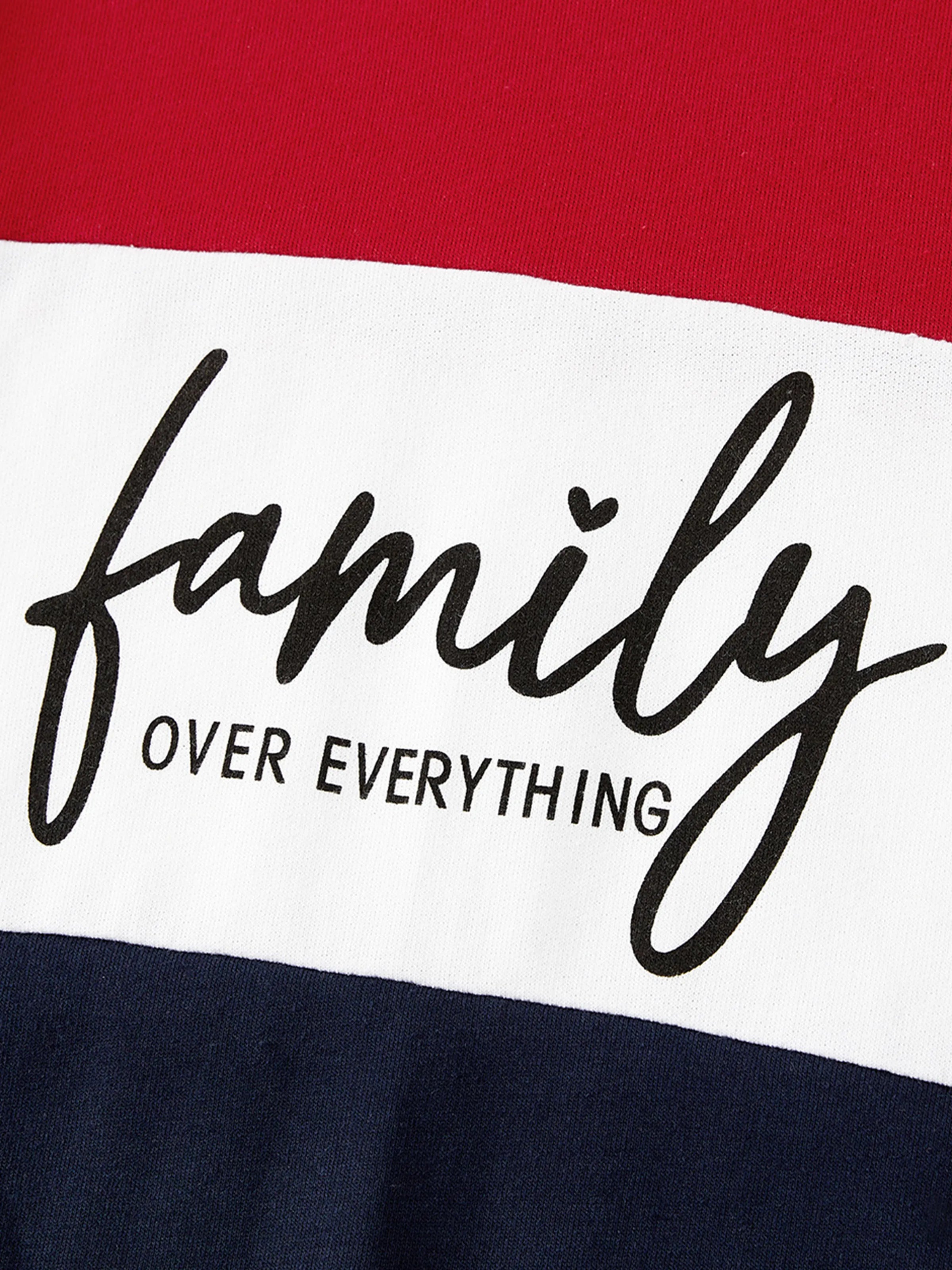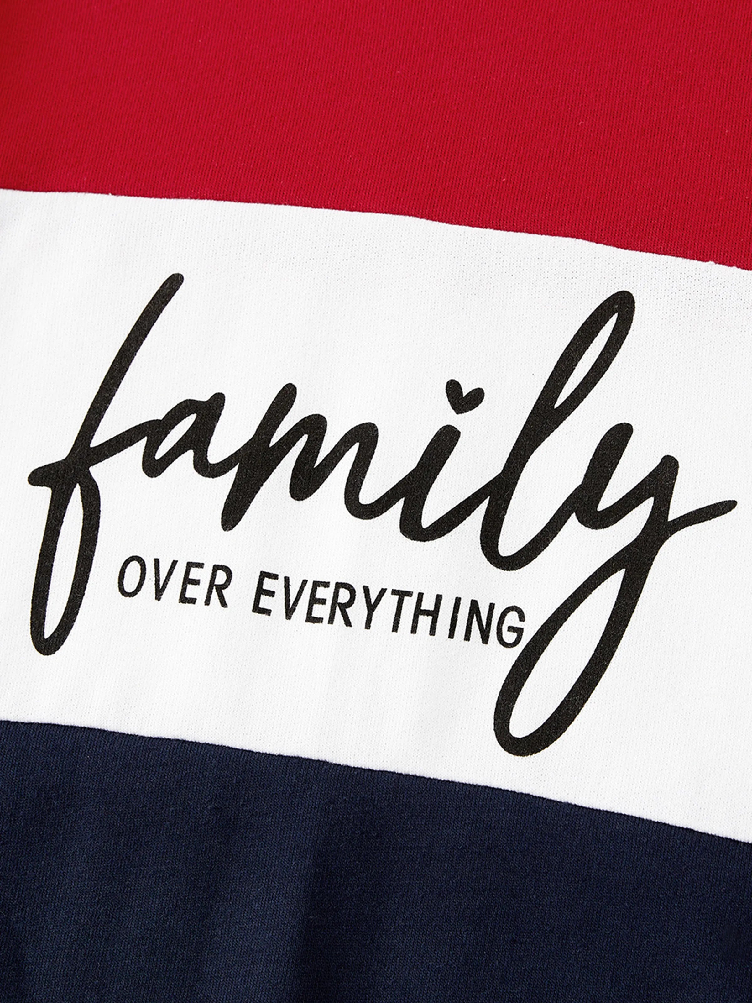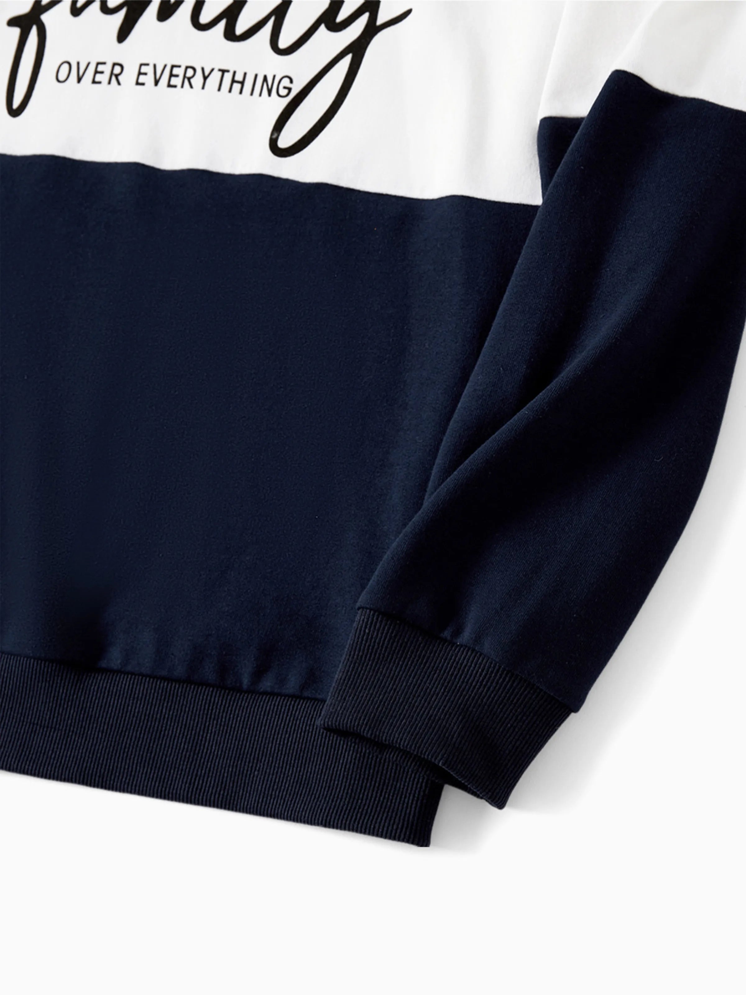 Sweat-shirts à manches longues et col ras du cou avec imprimé de lettres colorblock assortis pour la famille