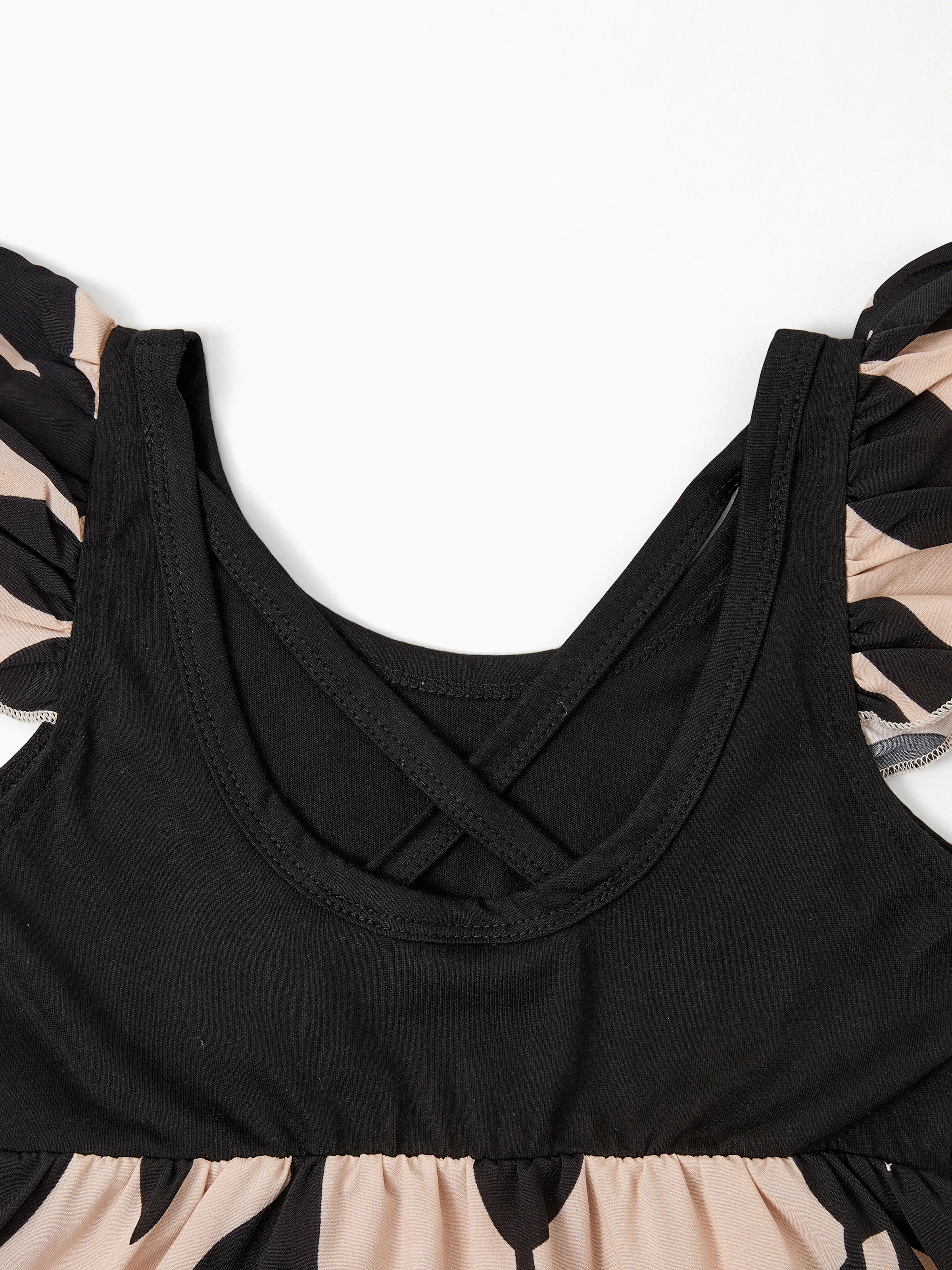 Ensembles assortis pour toute la famille : robe à bretelles florales croisées dans le dos et haut colorblock noir