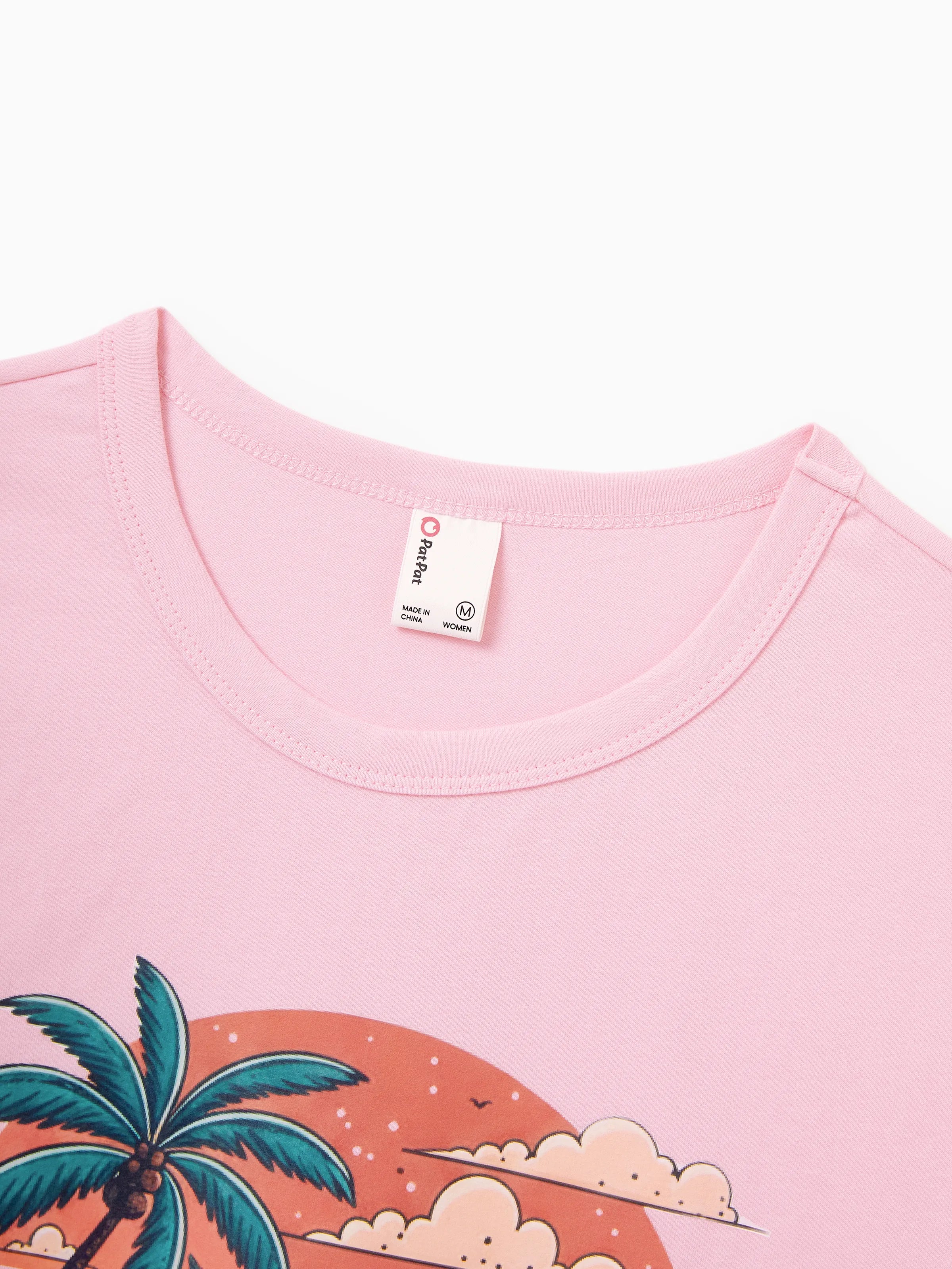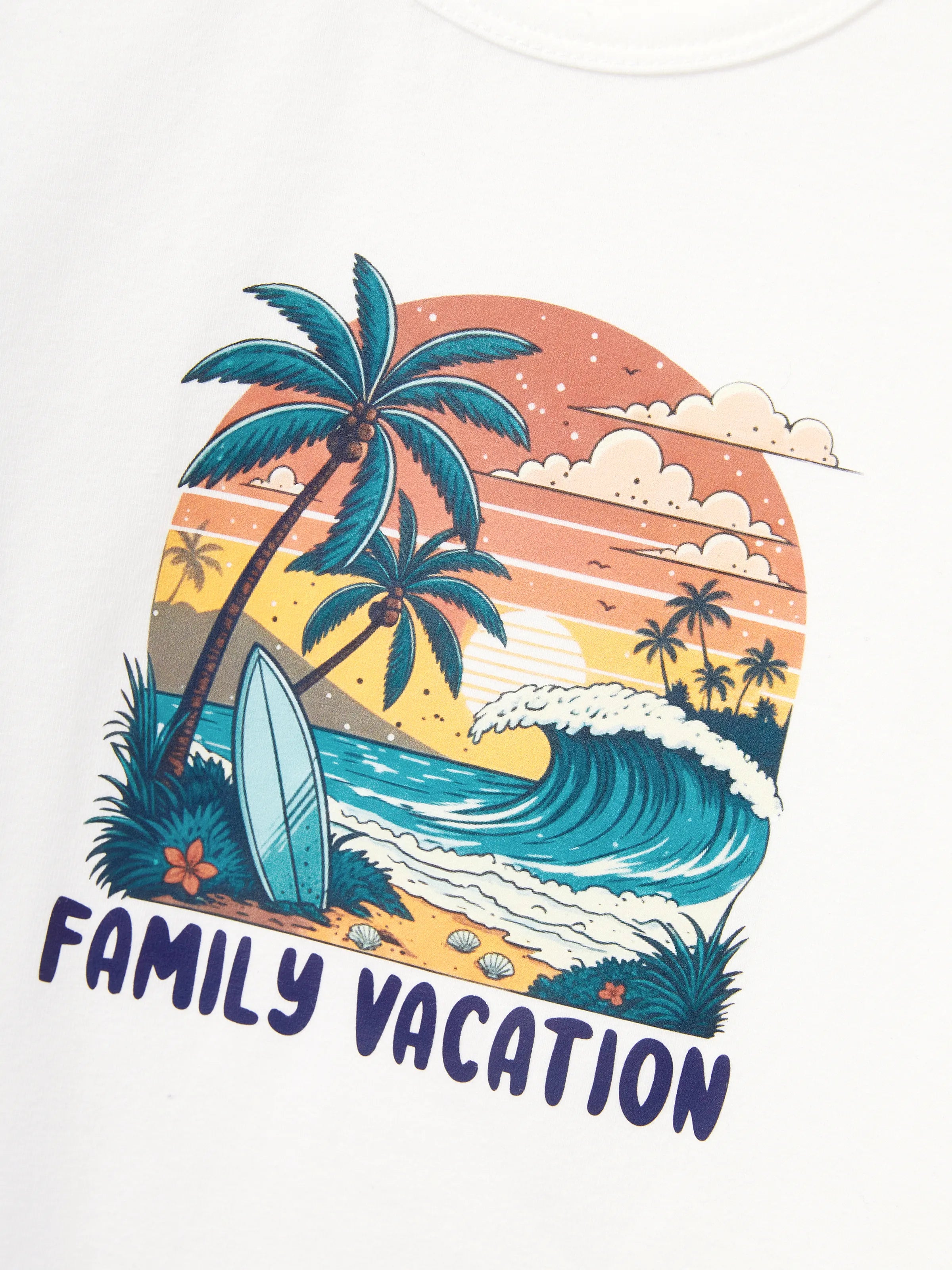 Family Matching "Family Vacation" Graphic Cotton Tees Tropical Surf Print T-Shirt Multi-color