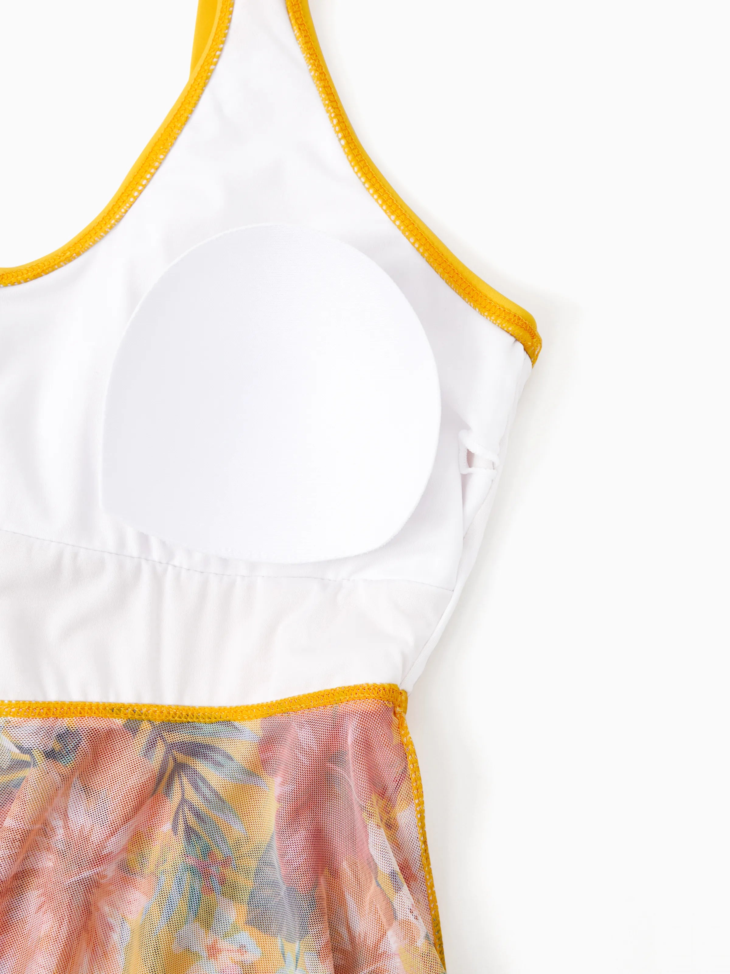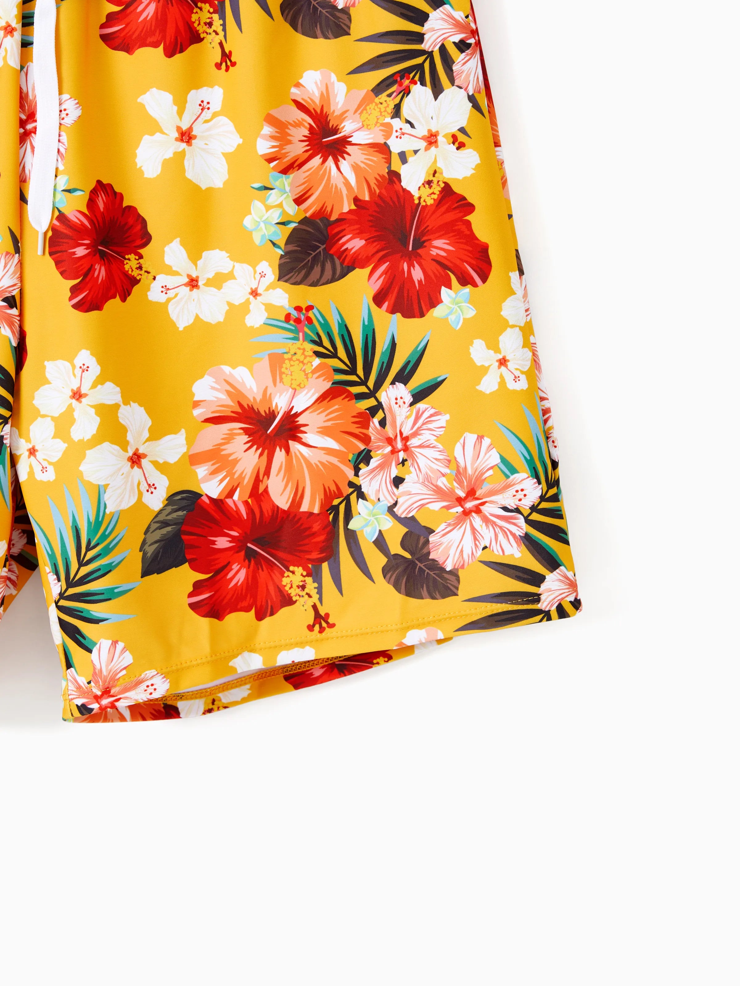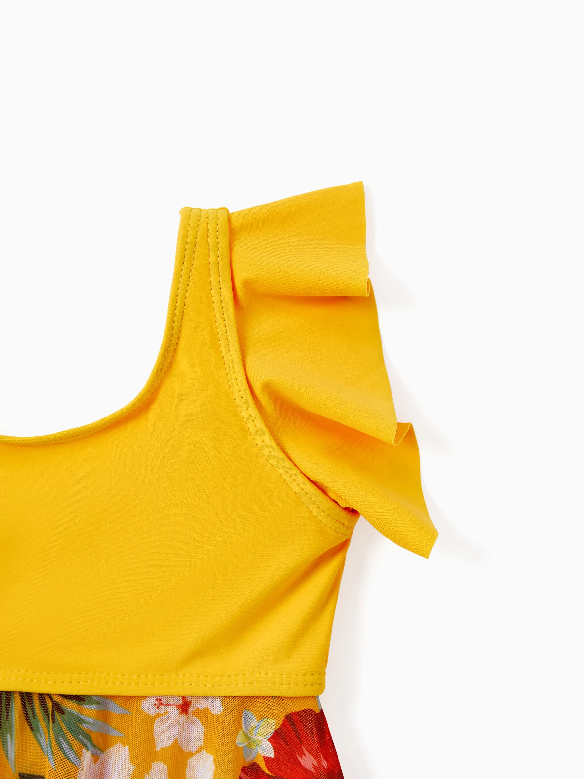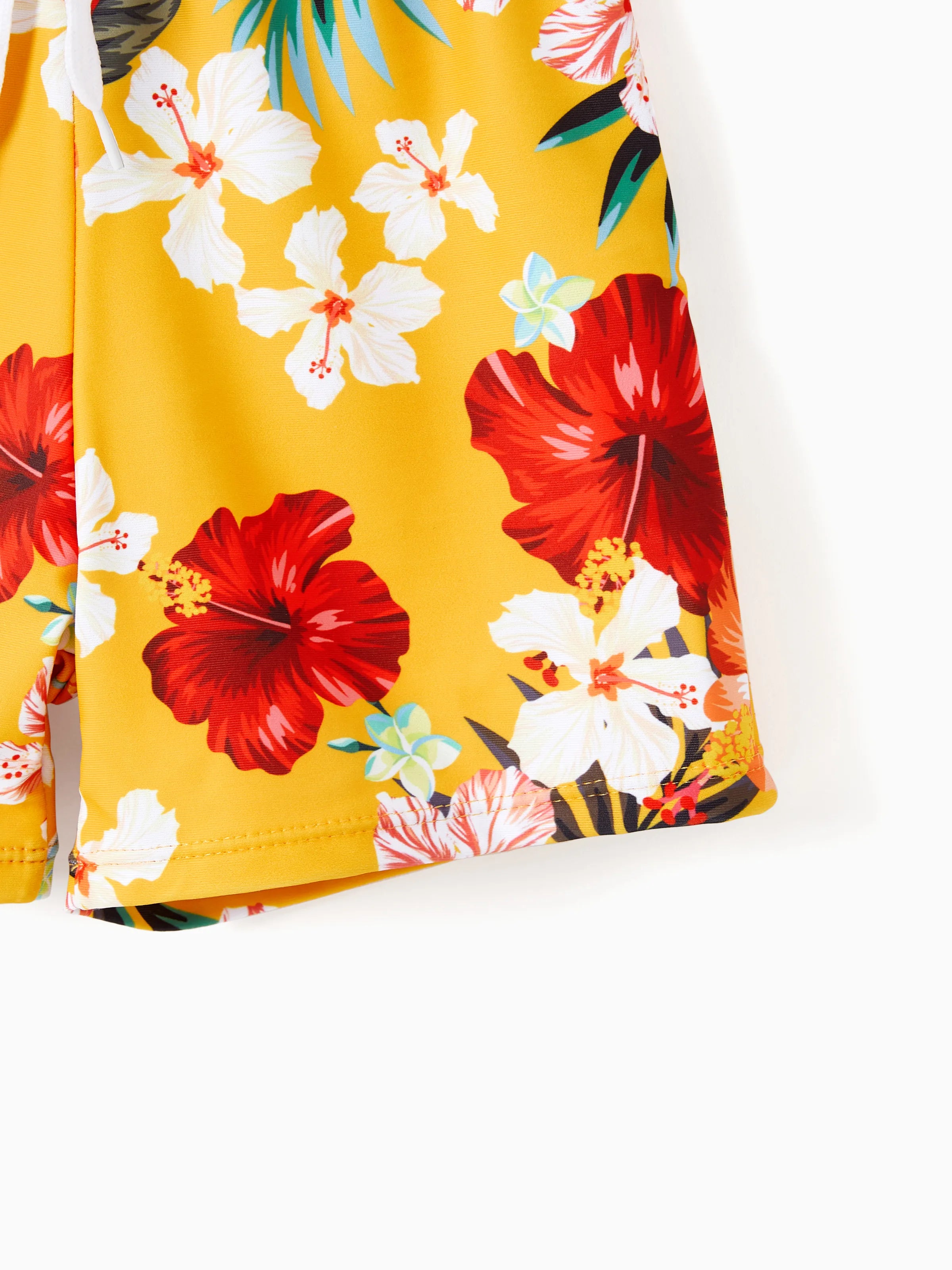 Parfait pour les vacances d'été et les activités de loisirs, cet ensemble de maillot de bain en maille jaune a une ambiance animée qui améliorera l'expérience de vacances de votre famille.