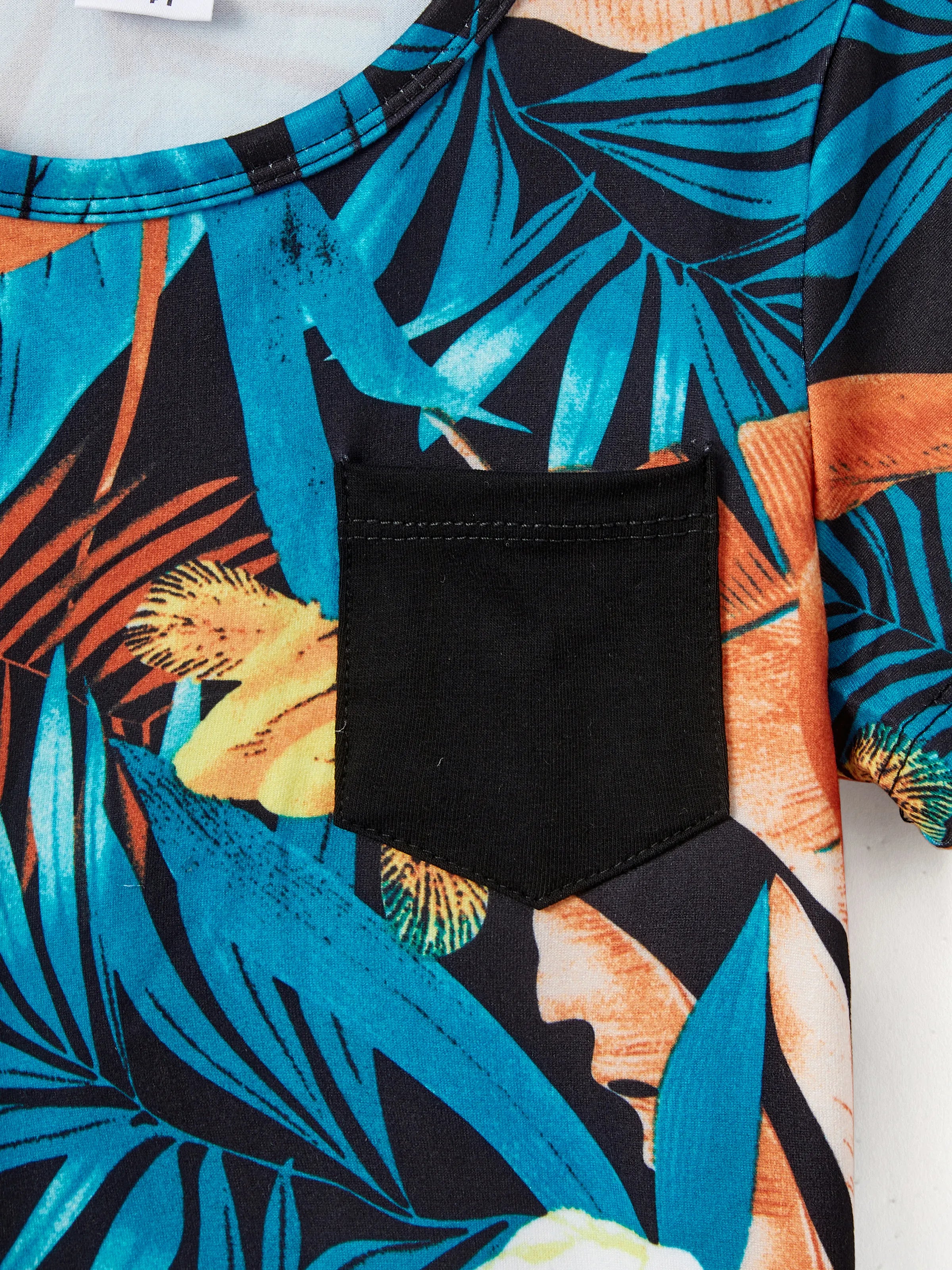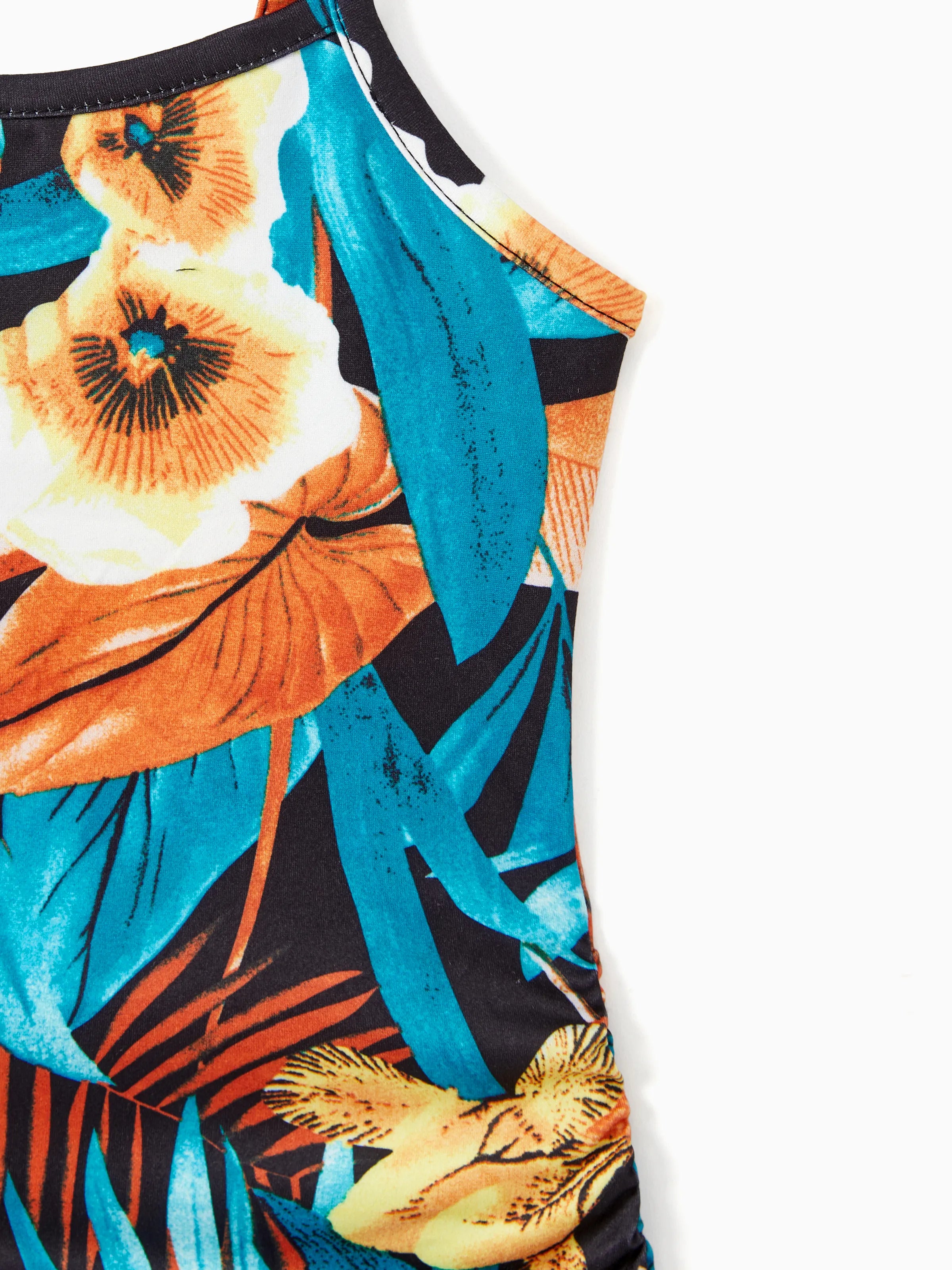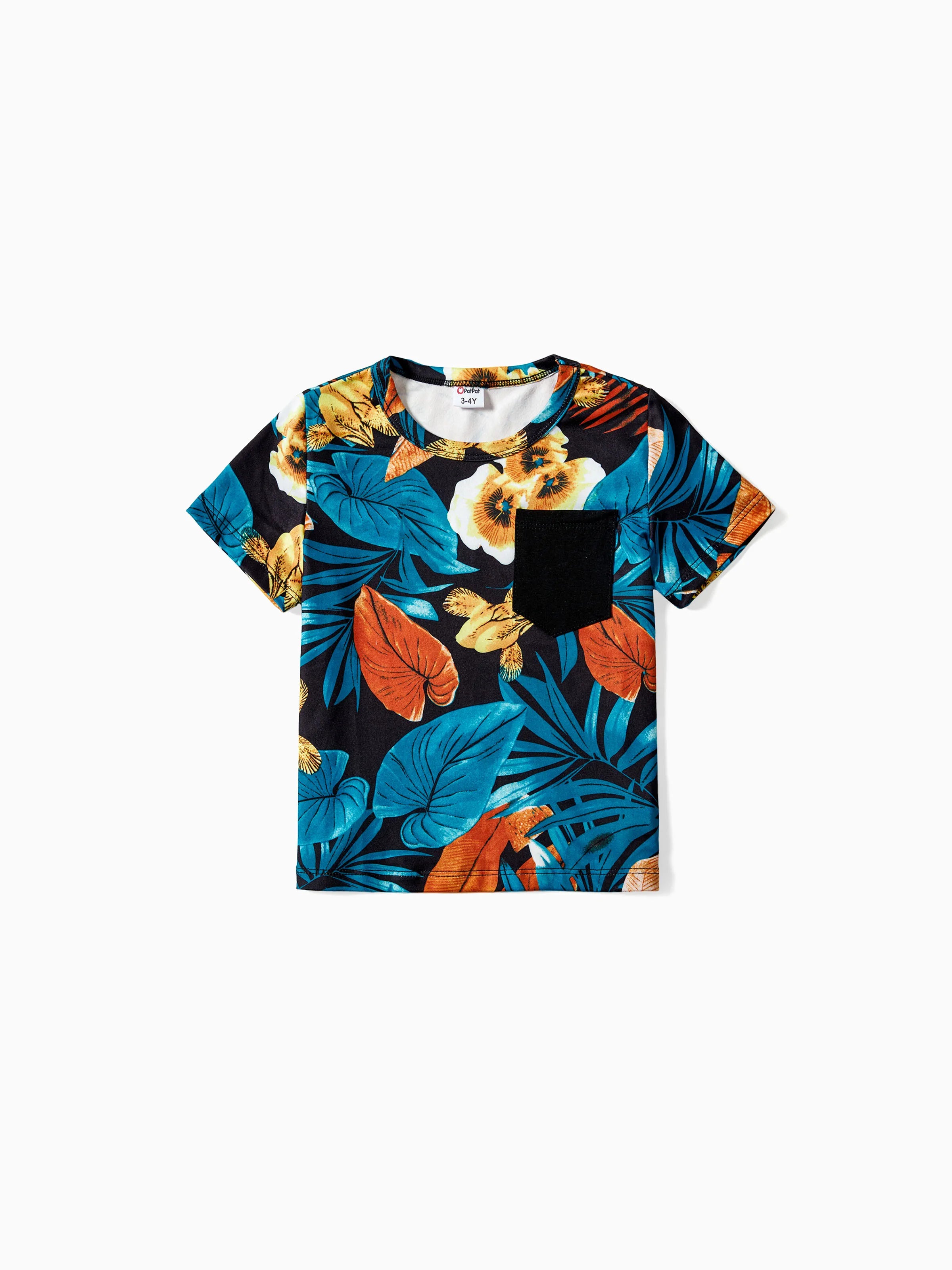 La tenue de vacances familiale à motif de plantes tropicales noires est parfaite pour les occasions décontractées et formelles.