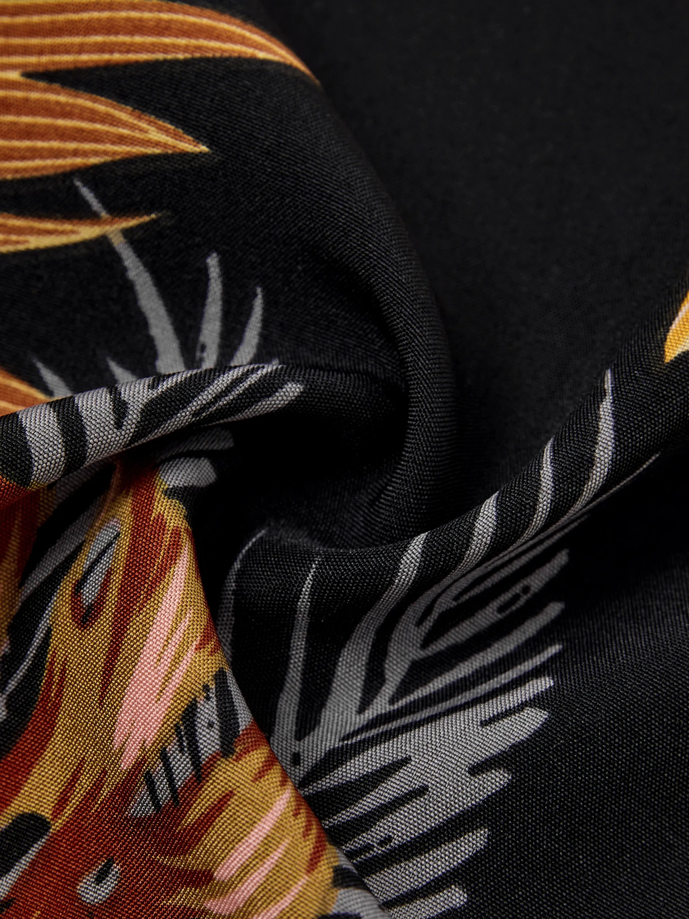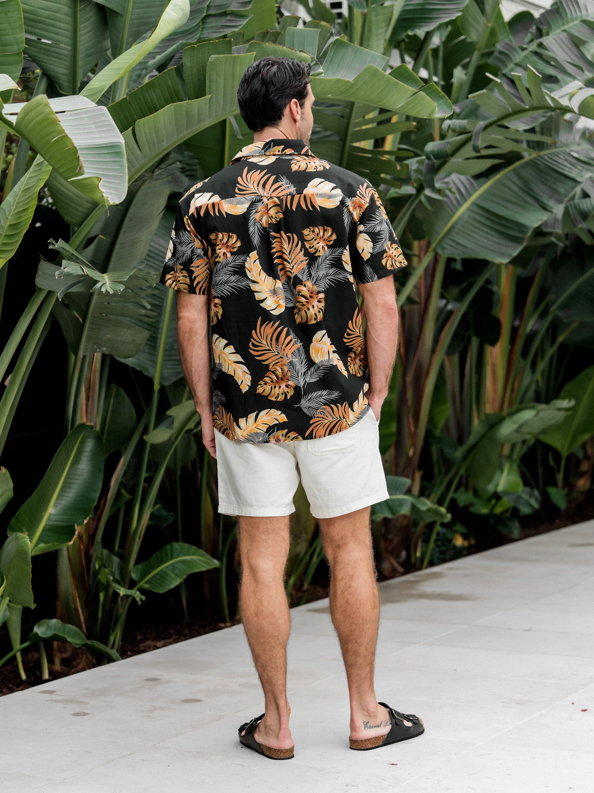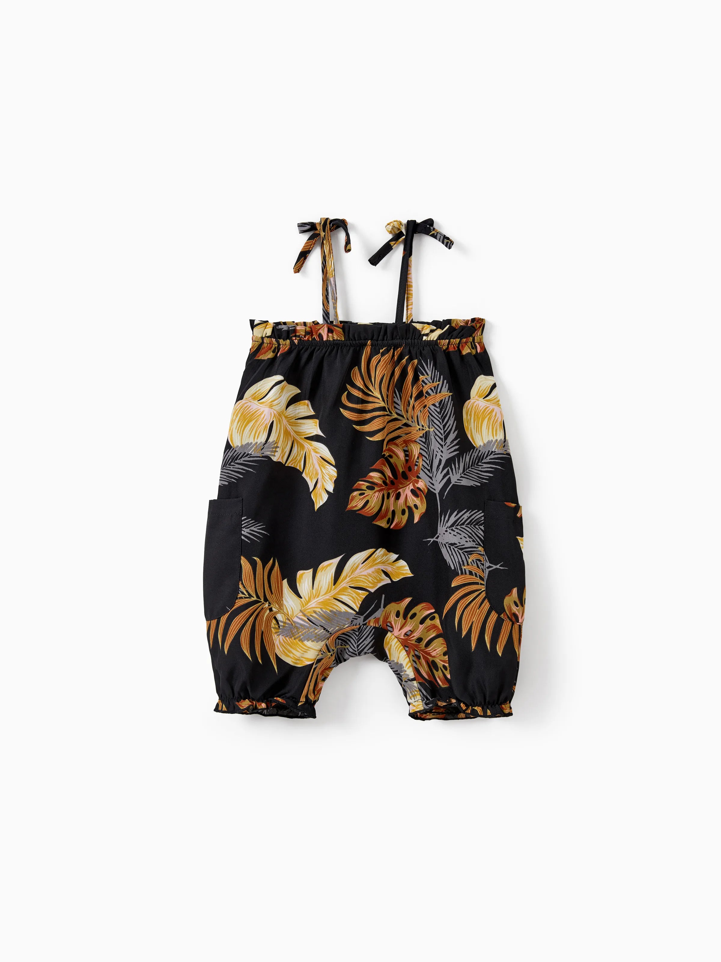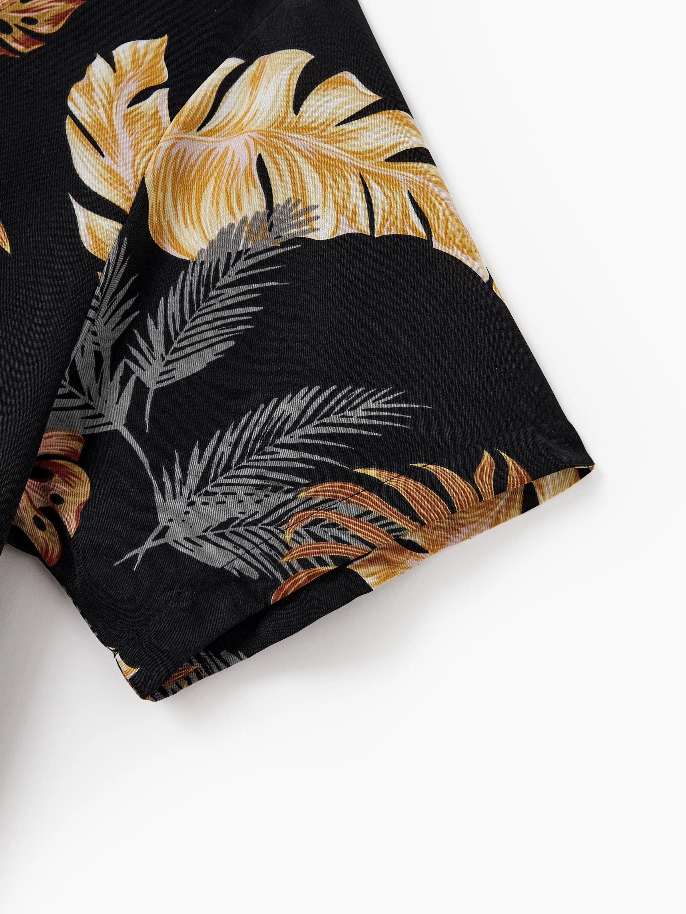 – Chemise boutonnée décontractée à manches courtes avec imprimé tropical assorti